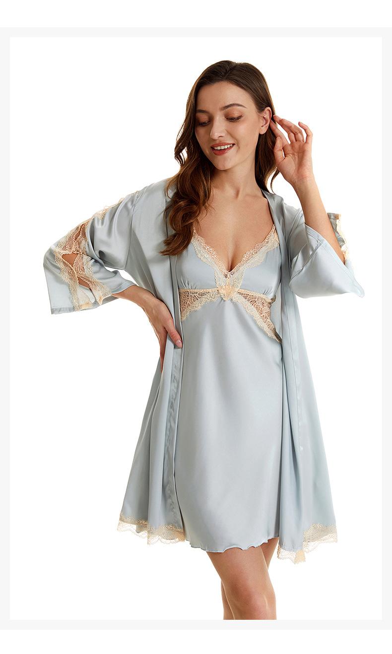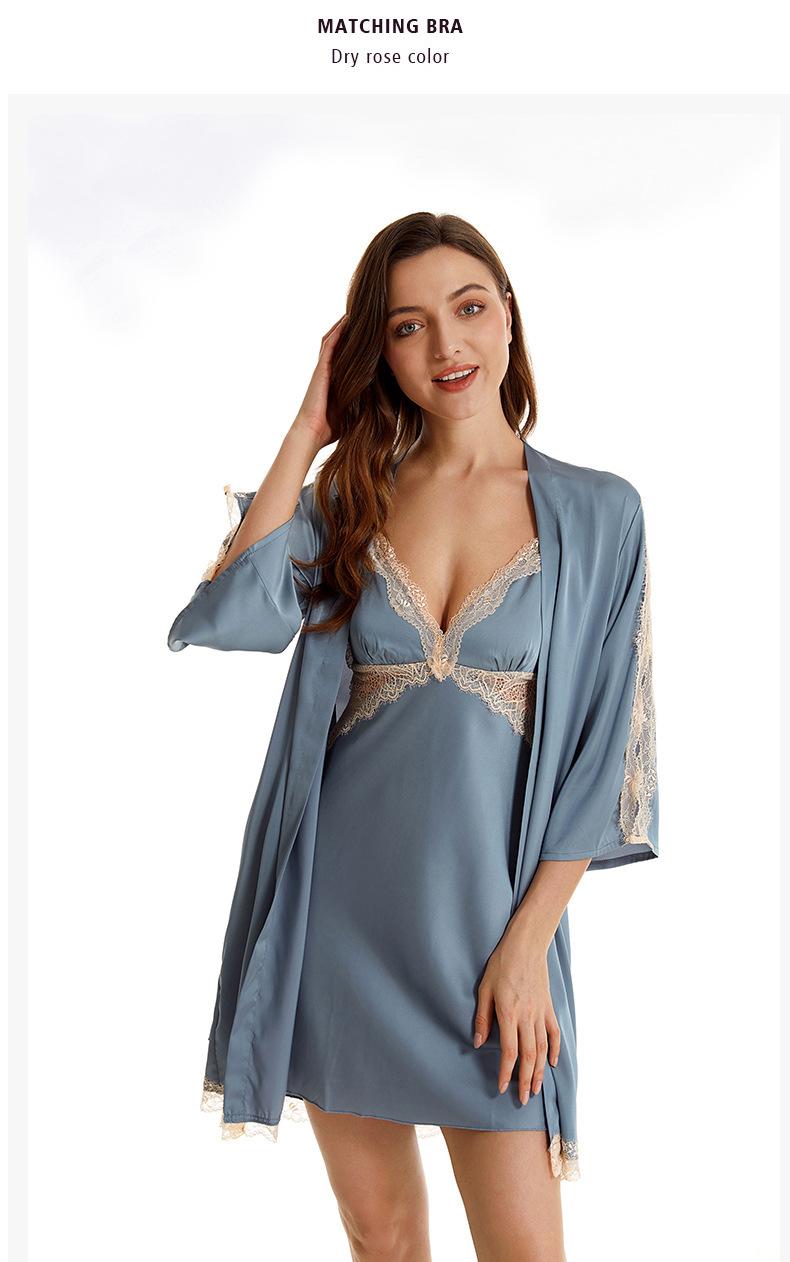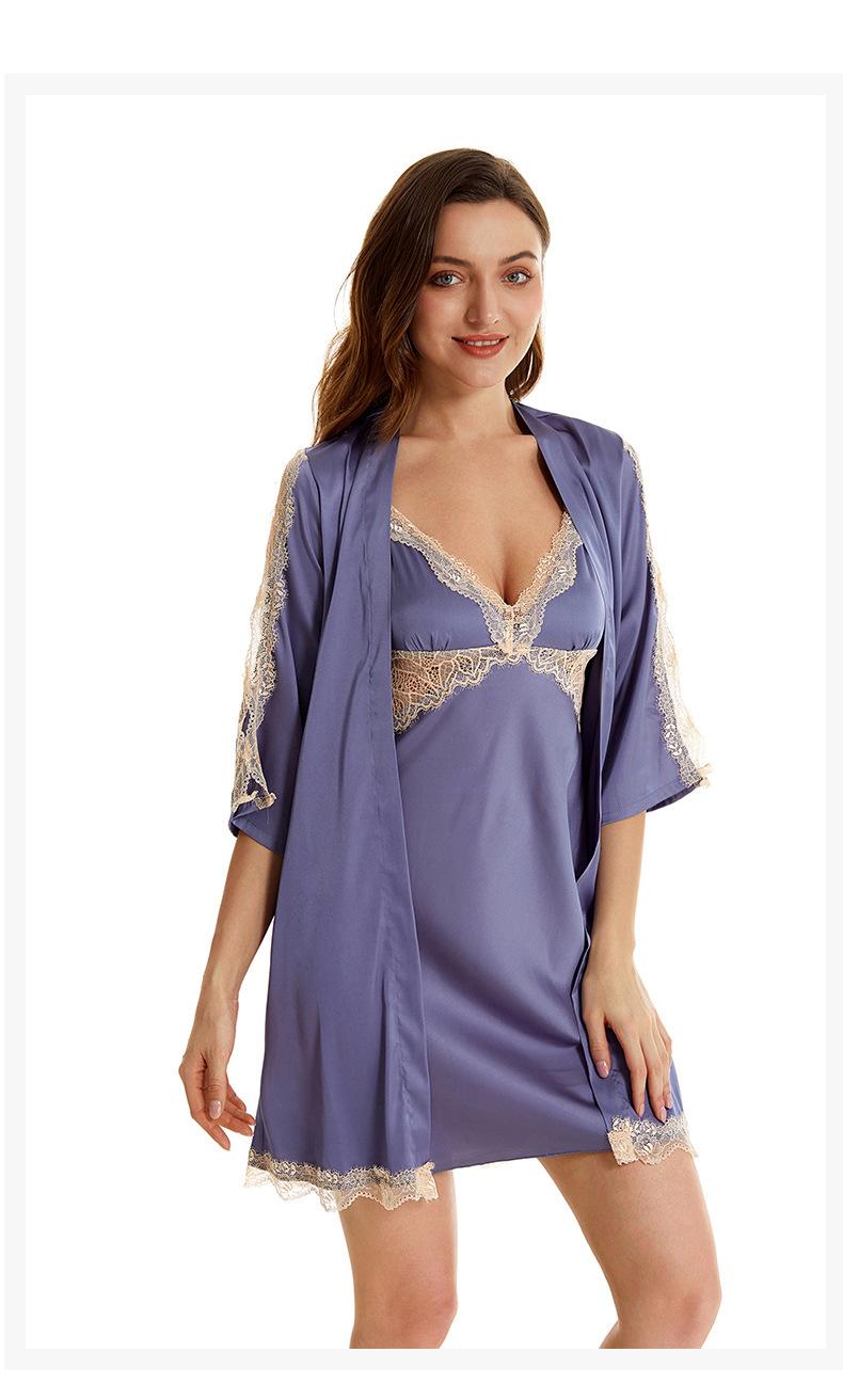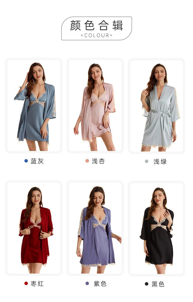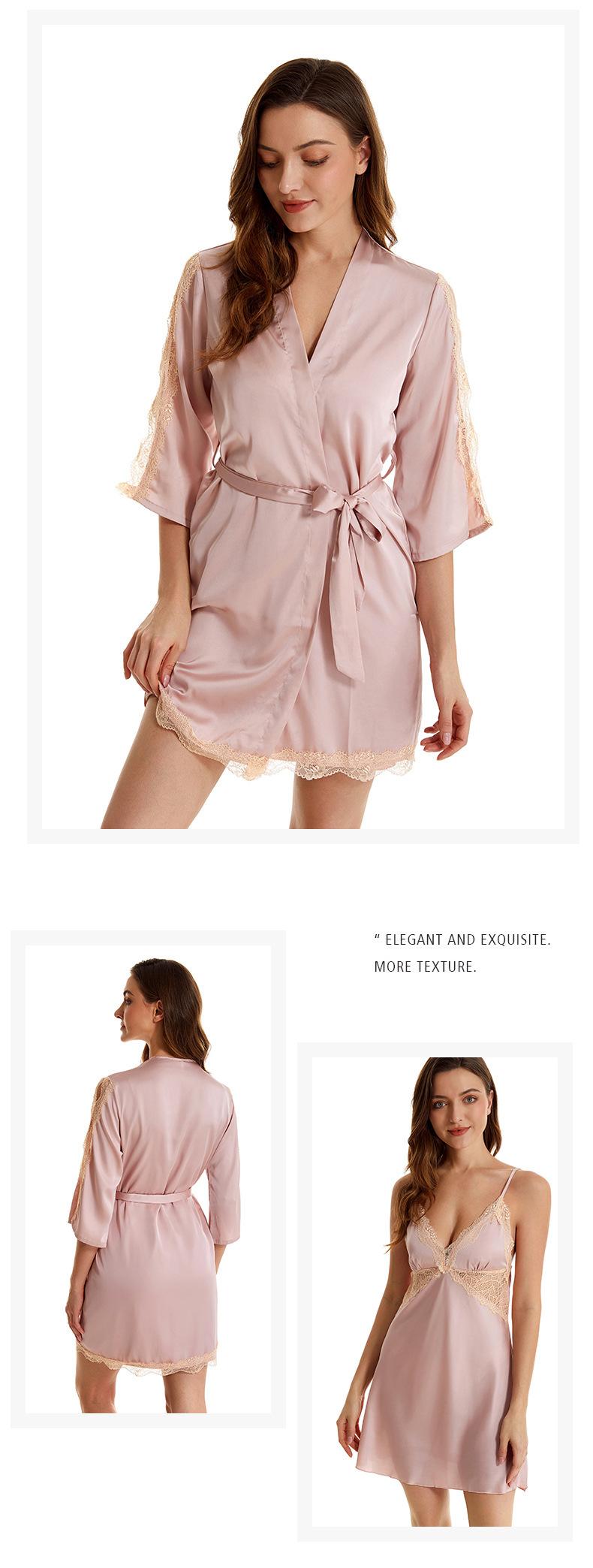 Pijama sexy de nueva tentación para mujer, camisón de seda helada, bata de baño Pure Desire, camisón de encaje de seda de siete mangas, camisón para el hogar