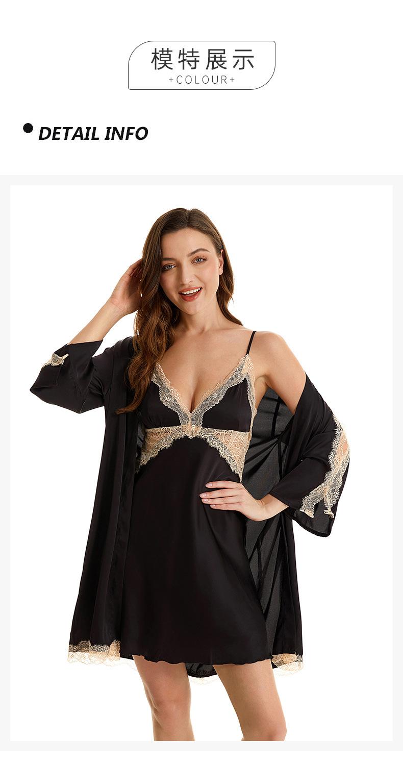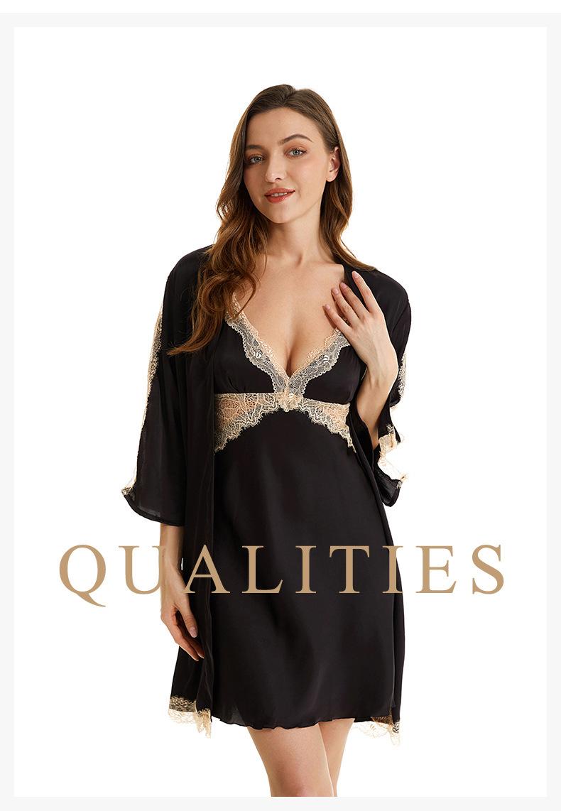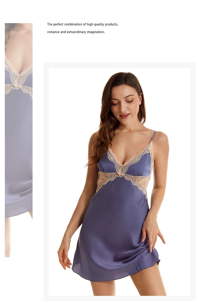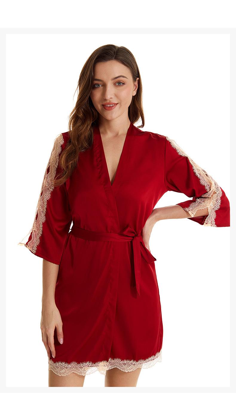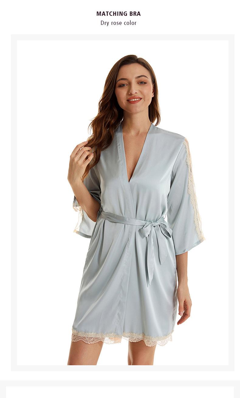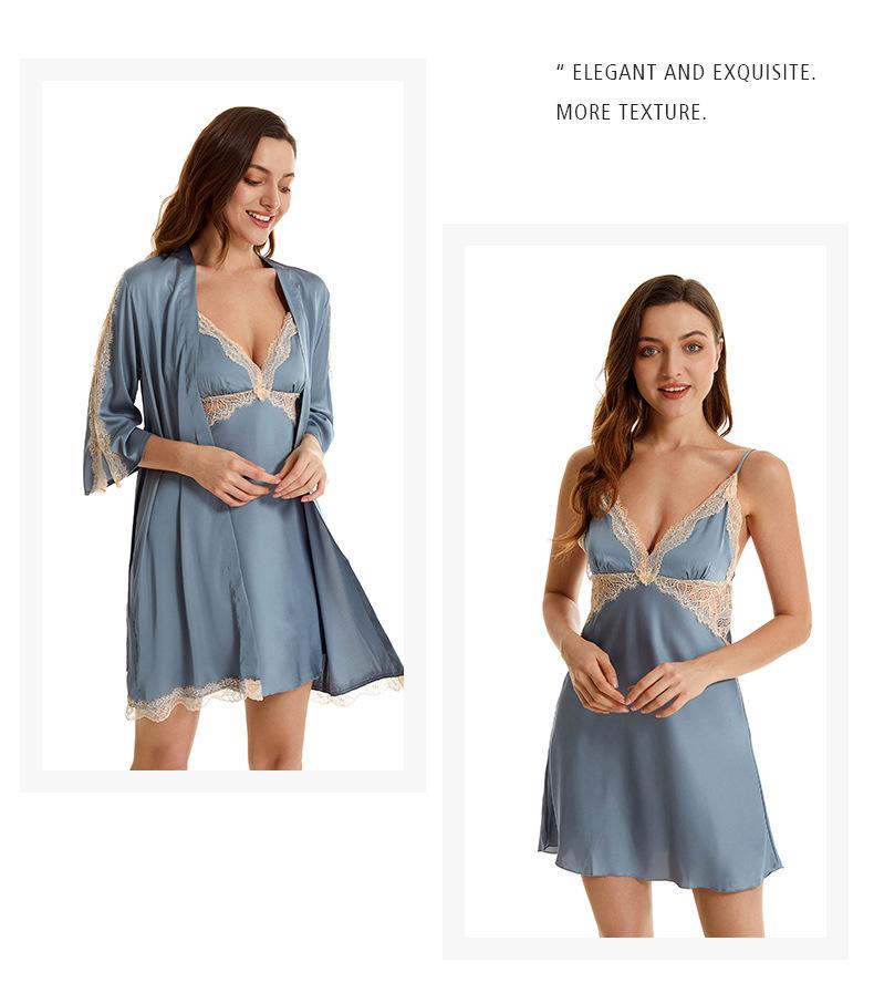 Pijama sexy de nueva tentación para mujer, camisón de seda helada, bata de baño Pure Desire, camisón de encaje de seda de siete mangas, camisón para el hogar
