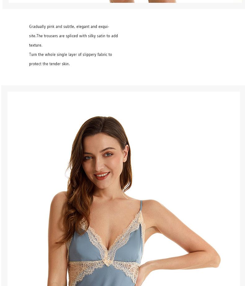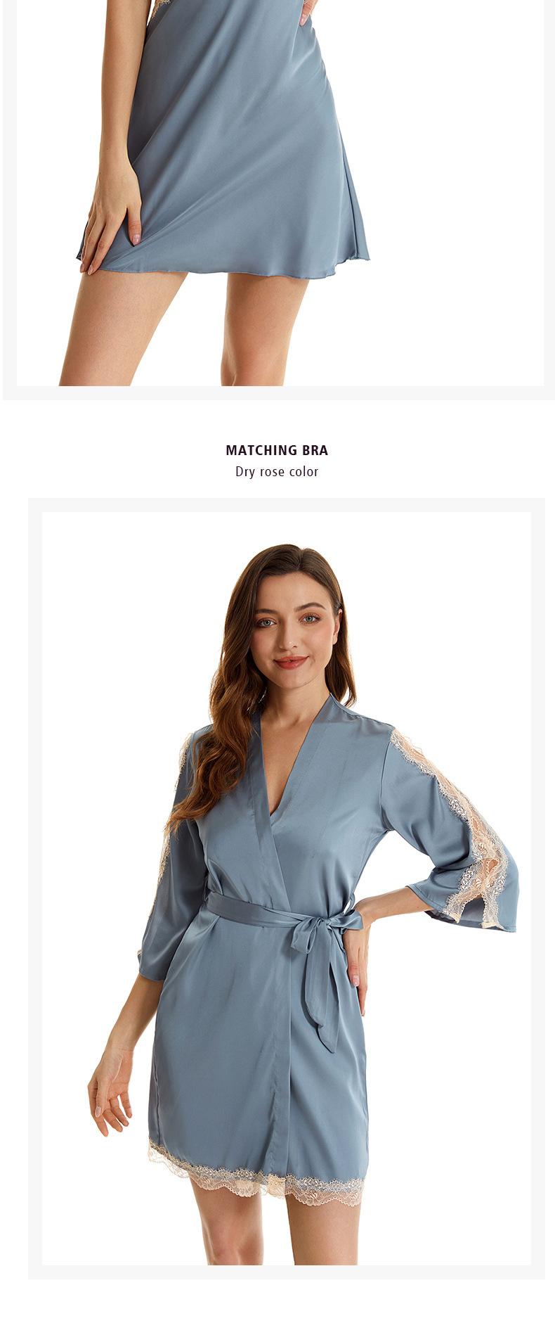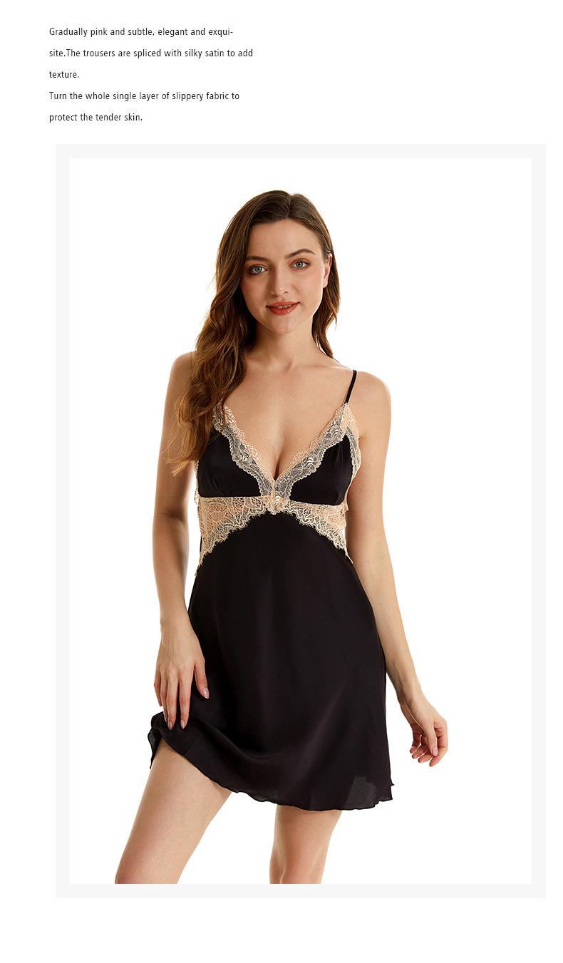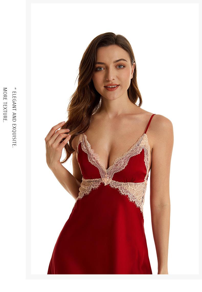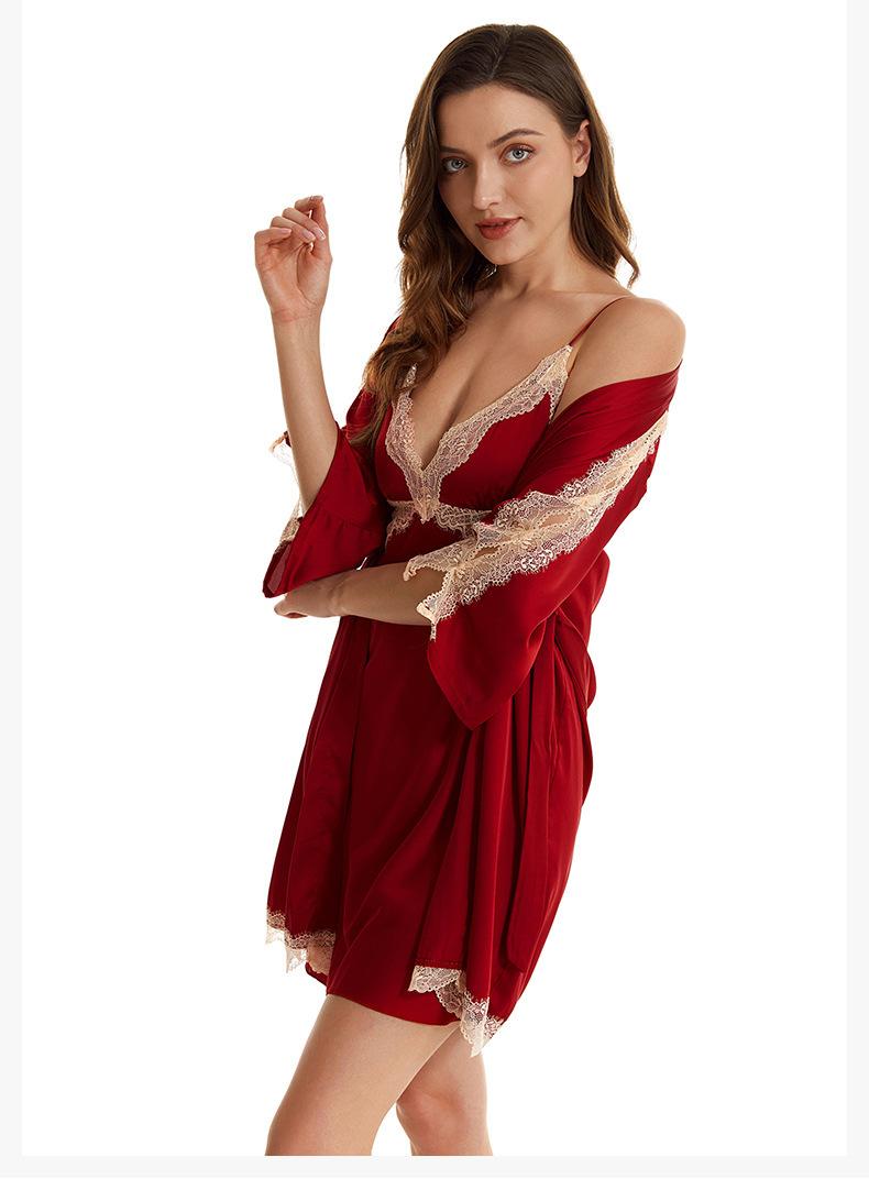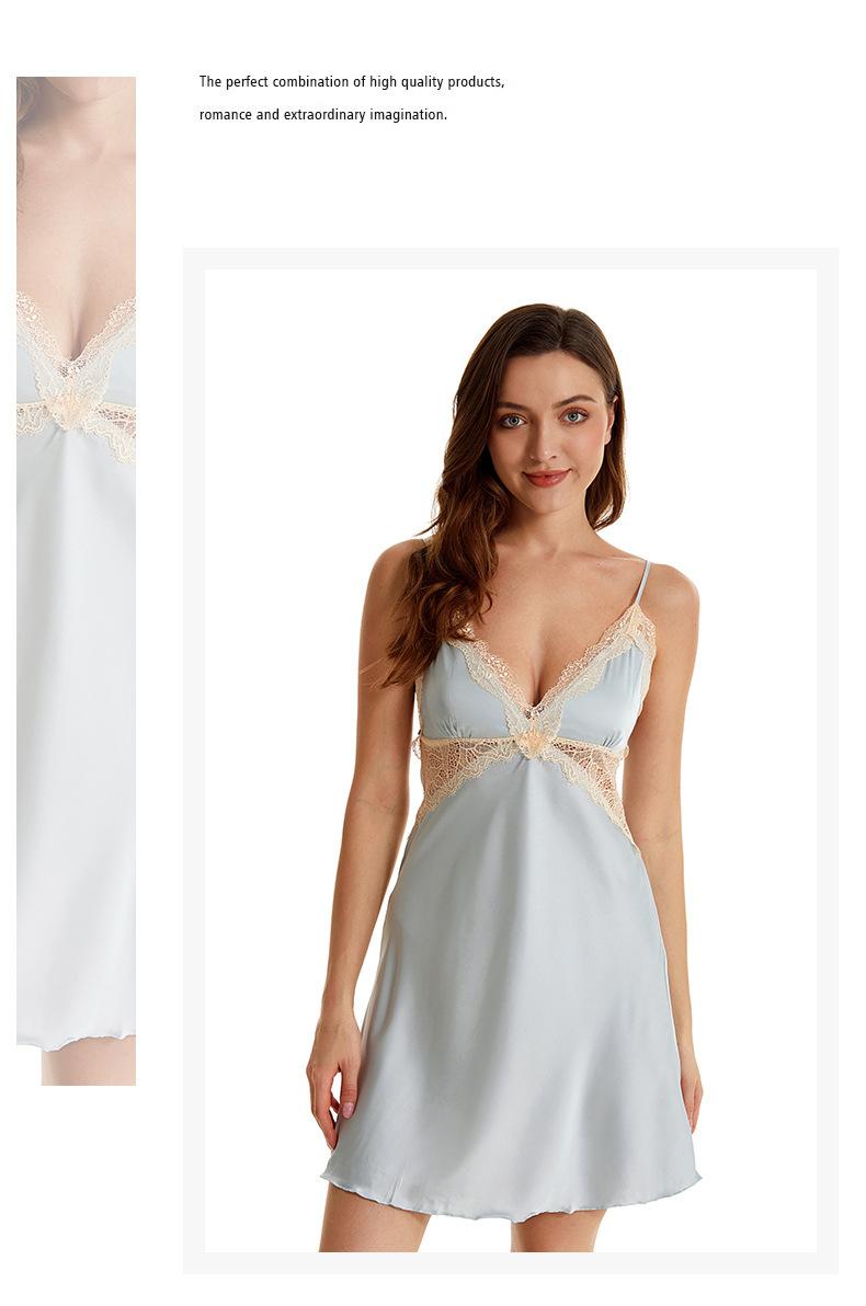Pijama sexy de nueva tentación para mujer, camisón de seda helada, bata de baño Pure Desire, camisón de encaje de seda de siete mangas, camisón para el hogar