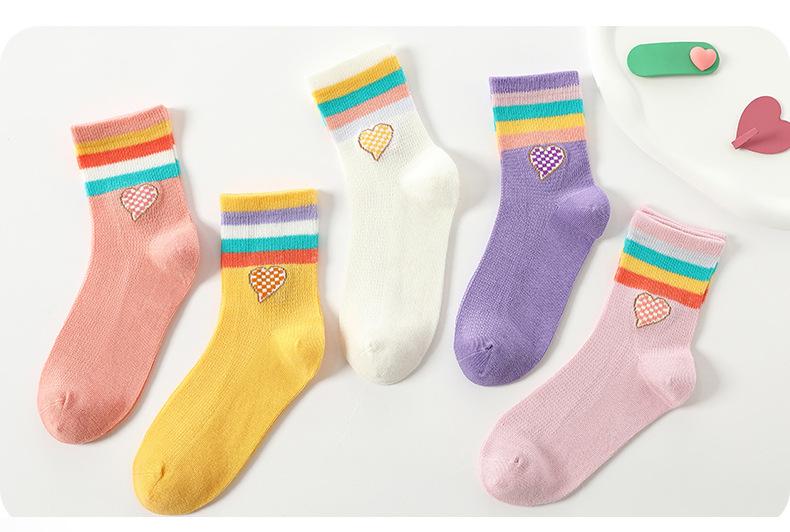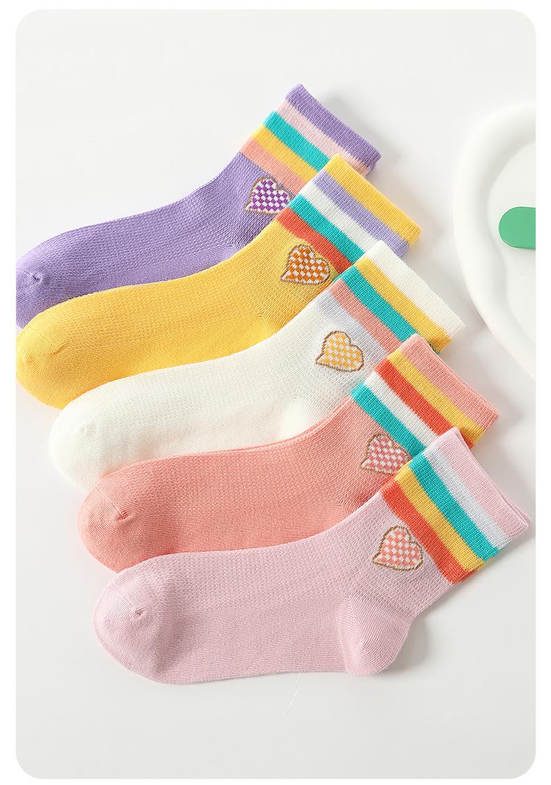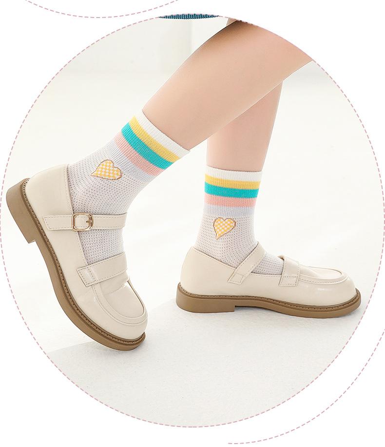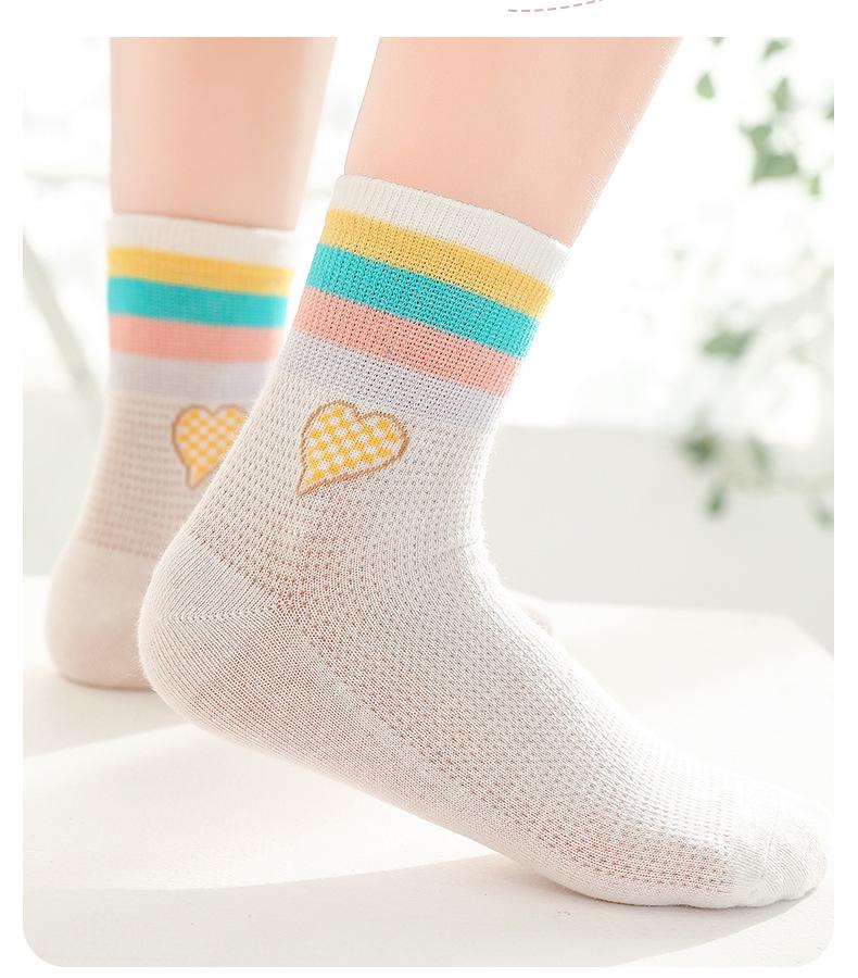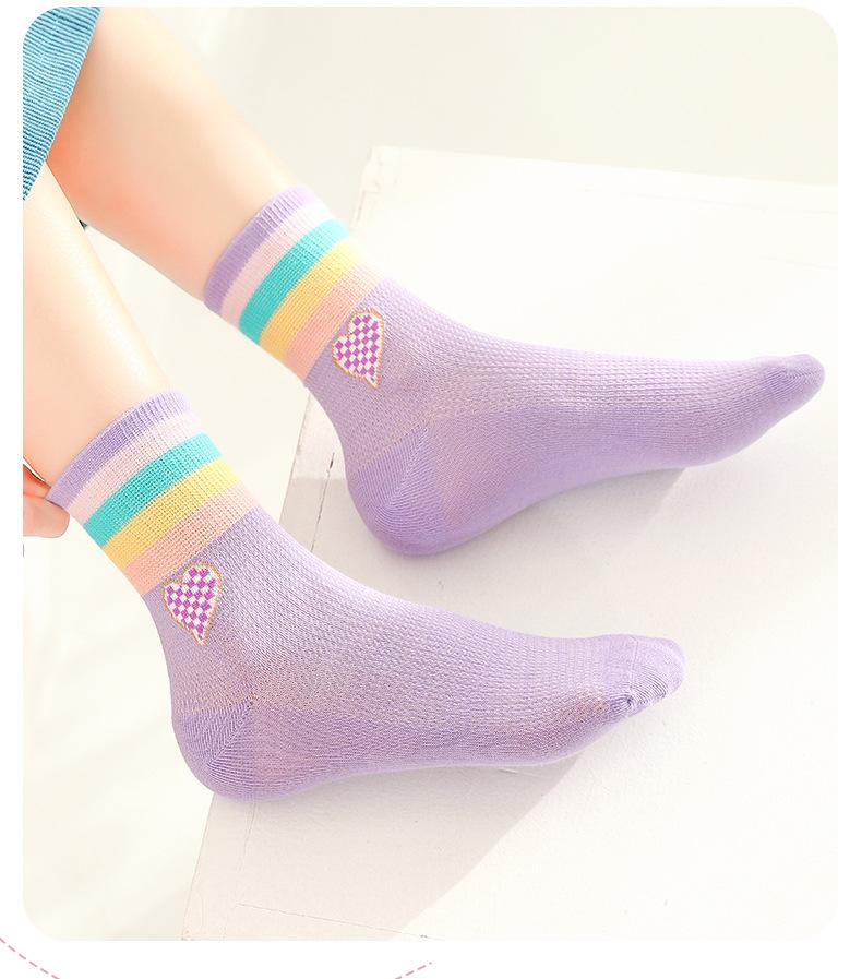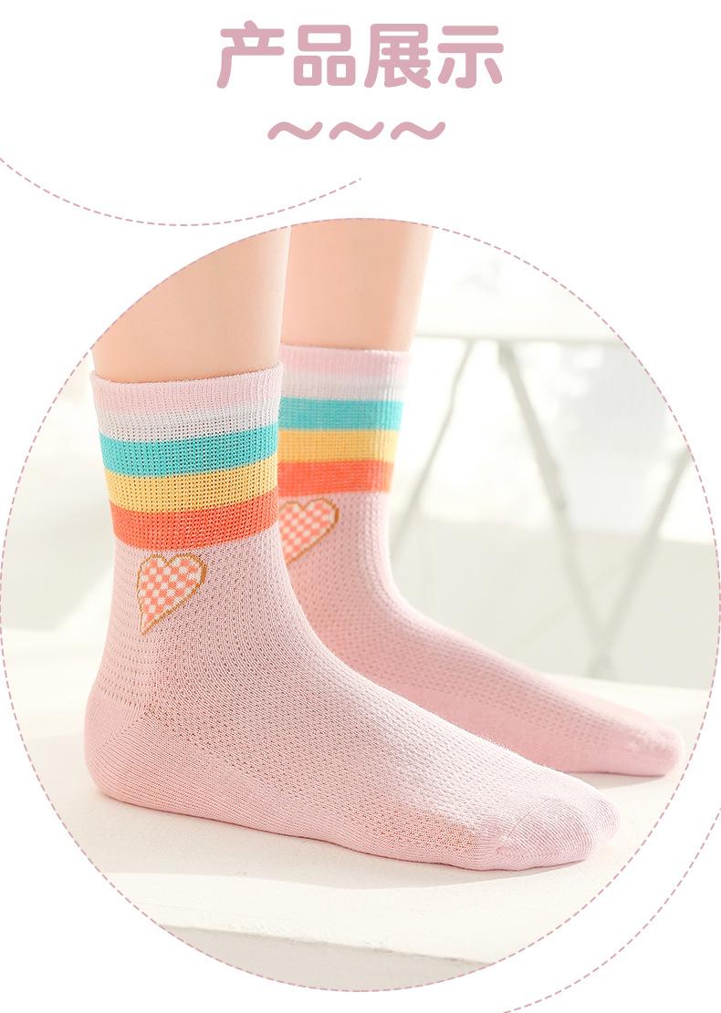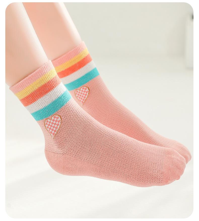 Calcetines de verano para niñas, finos, sin hueso, para niños, calcetines deportivos arcoíris para niñas pequeñas, de malla, transpirables, de algodón, grandes para niños
