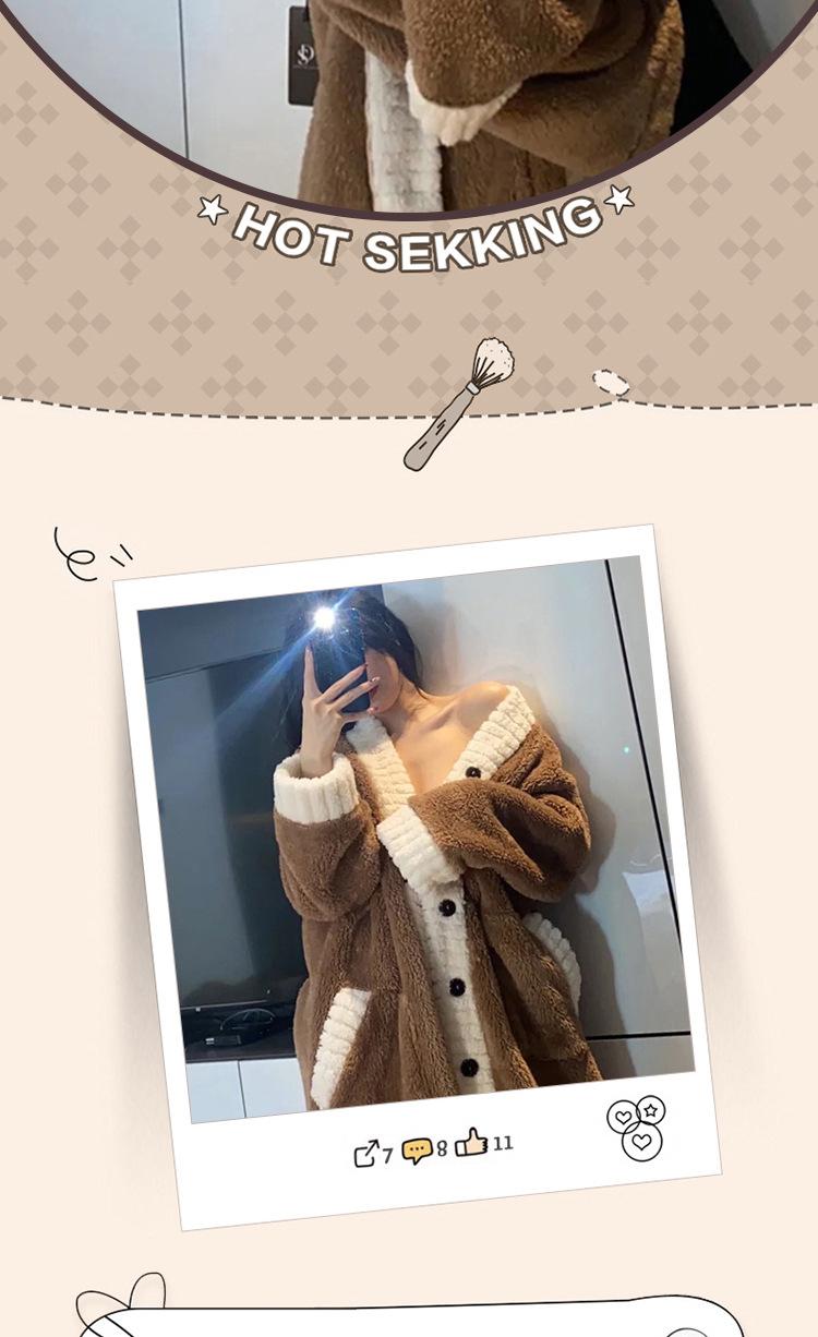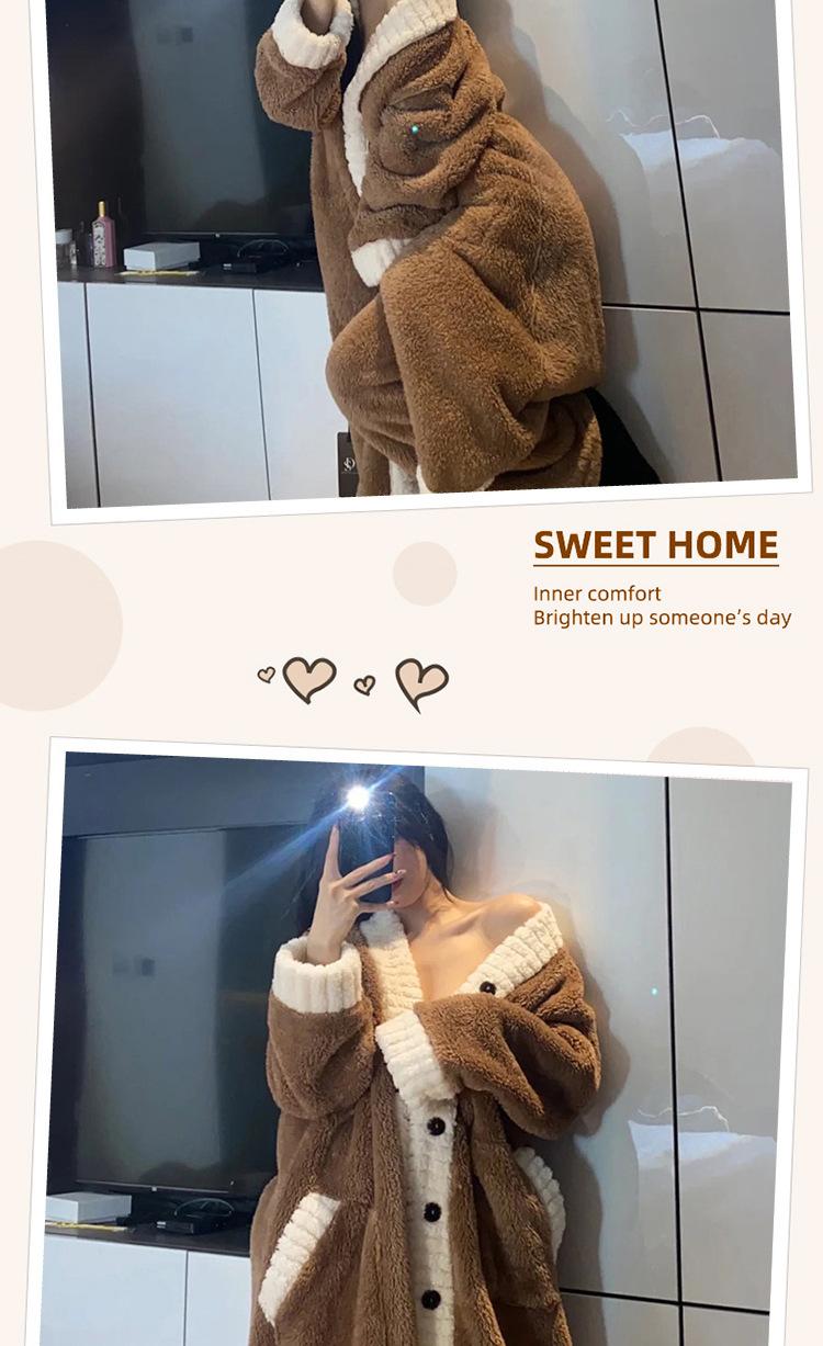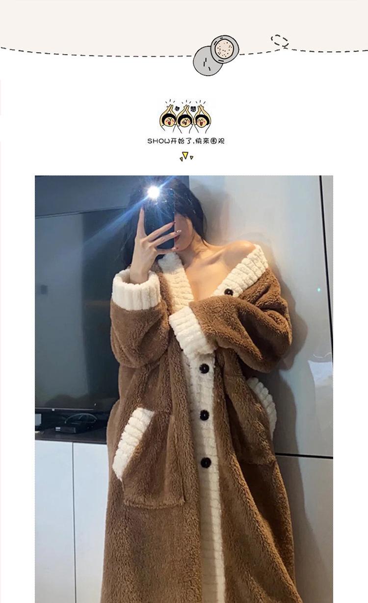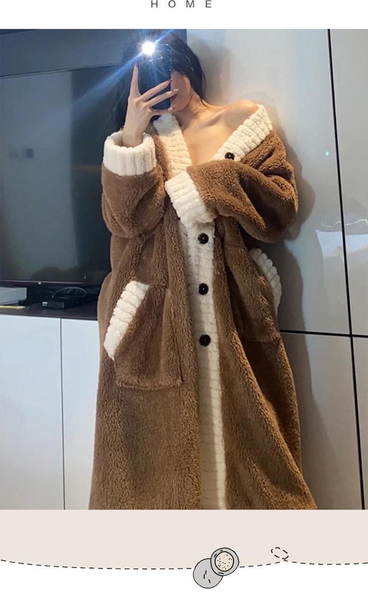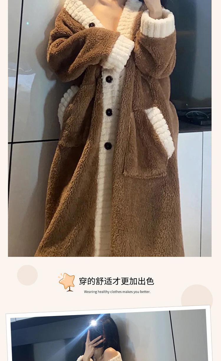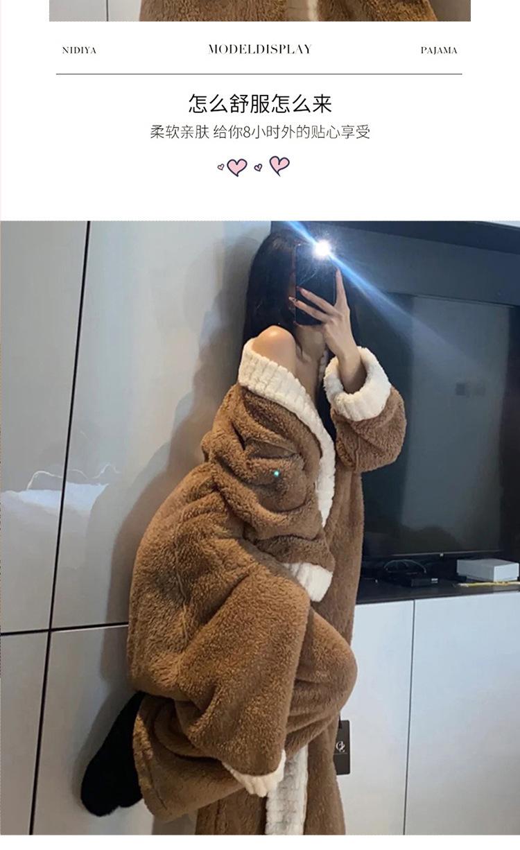 Pijama francés de alta gama de forro polar coral para mujer, otoño e invierno, grueso y cálido, camisón largo, ropa de casa, traje al por mayor