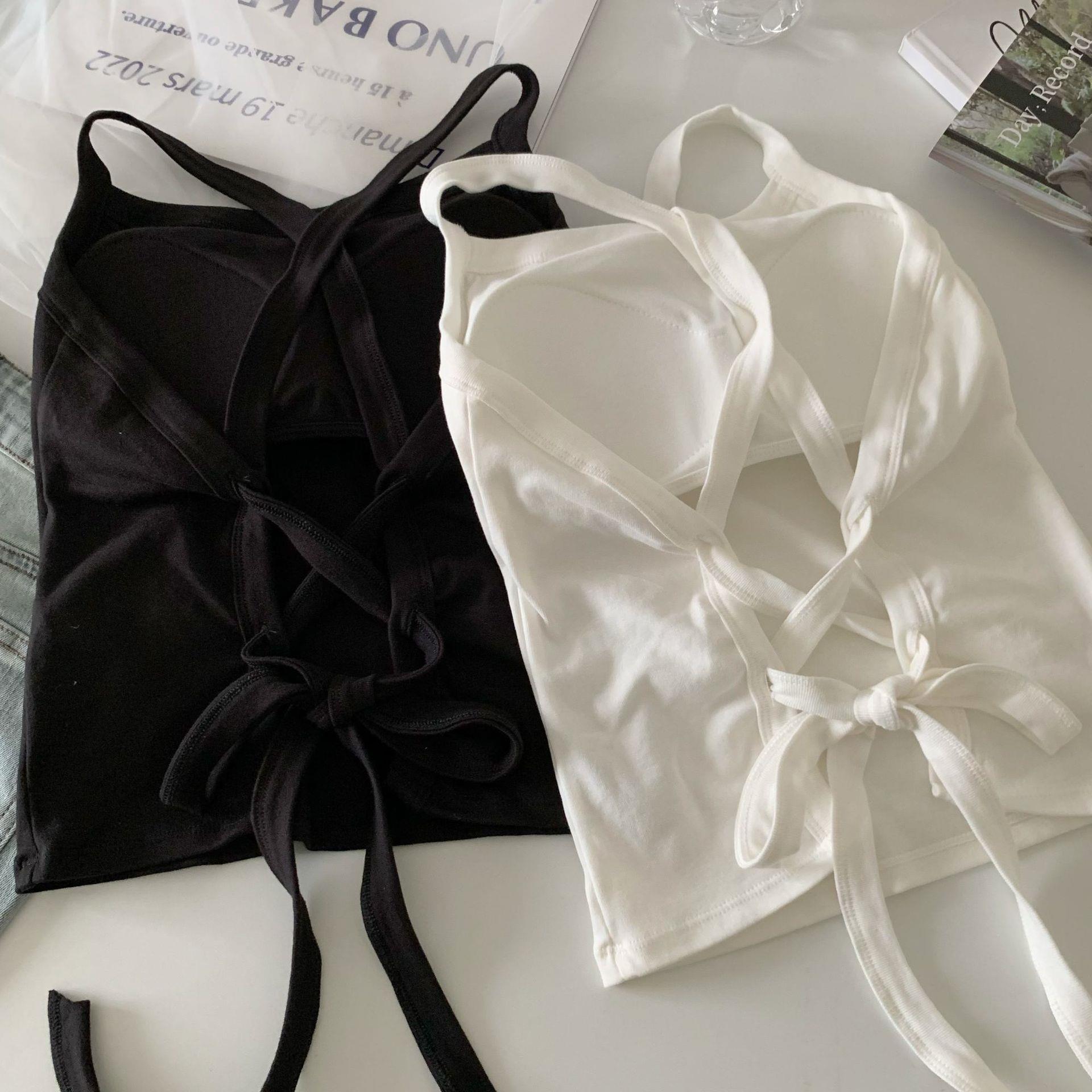 Camisola sexy retro con tirantes cruzados para chica, nueva y atractiva, sin espalda, con tirantes y almohadillas para el pecho, prenda exterior sexy para mujer