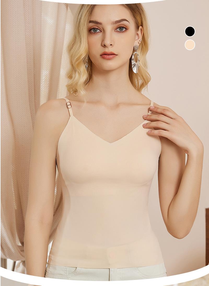 Chaleco largo con escote en V, push-up, sin aros de acero, transpirable, ligero, agradable para la piel, con posavasos extraíble, ropa interior para mujer