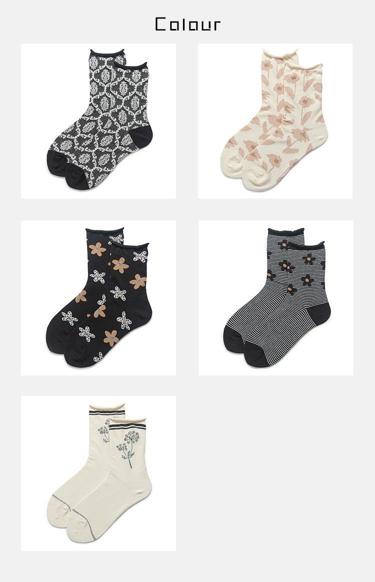 Calcetines para Mujer Otoño Vintage Flor Moda Calcetines Personalizados ins Calcetines para Mujer Estilo Academia Coreano Calcetines de Estudiante Calle Calcetines de Flores Pequeñas