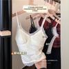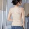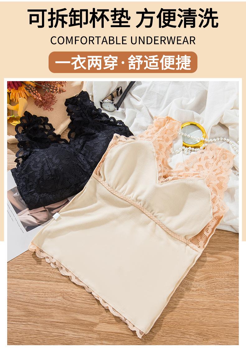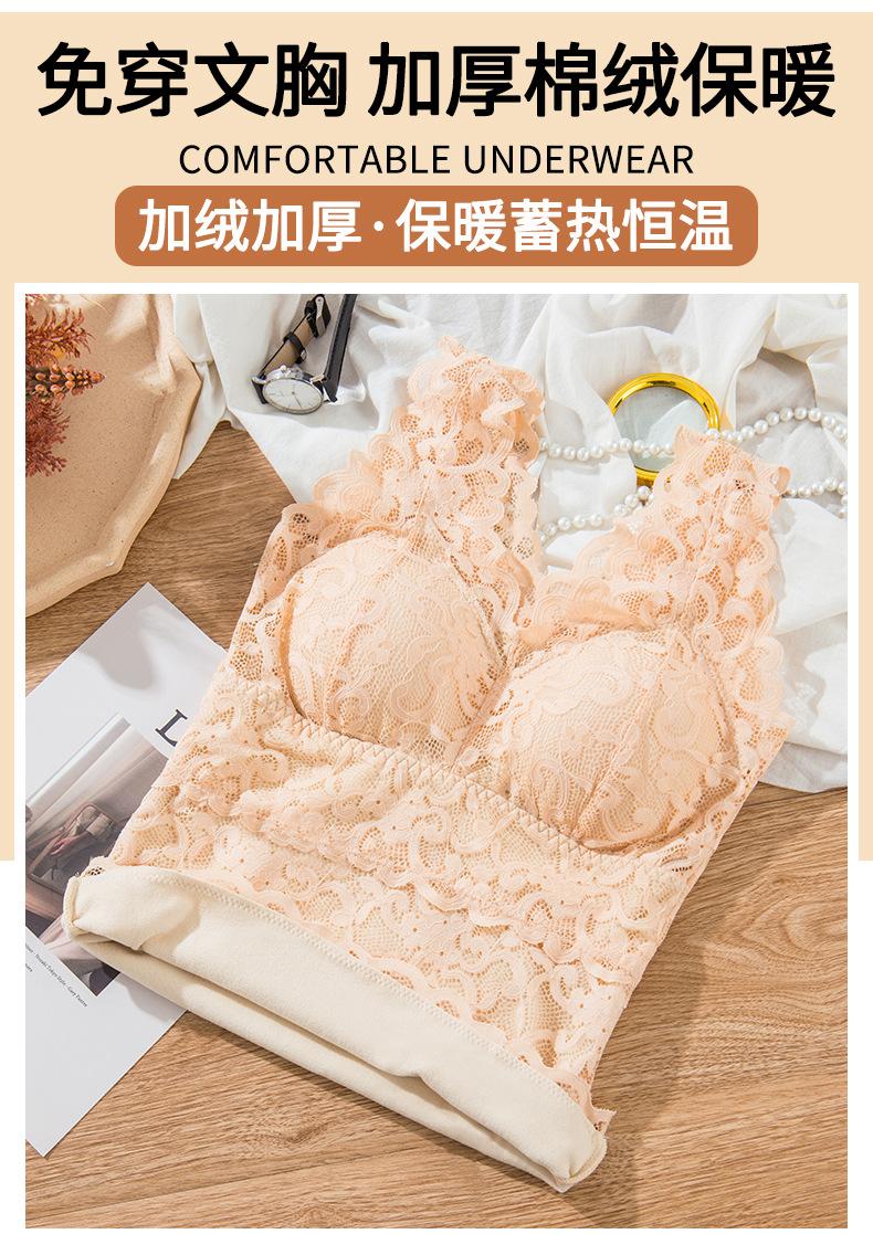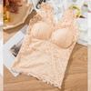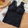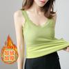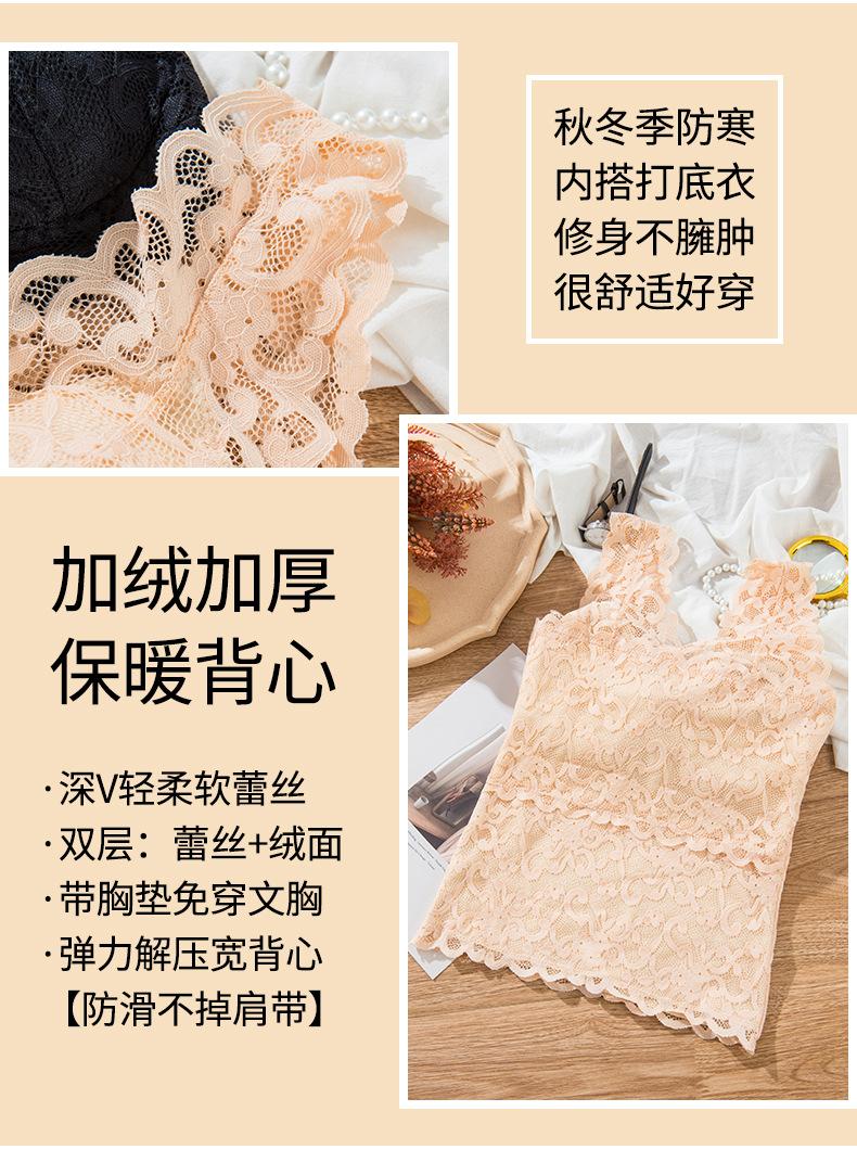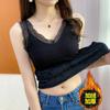 Chaleco de invierno con cuello en V y encaje de terciopelo para mujer, camiseta interior sin mangas con forro polar y almohadilla extraíble para el pecho.