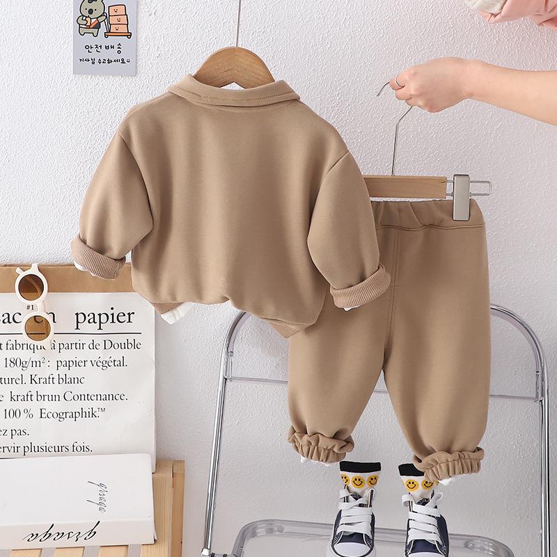 Traje para niños Primavera y otoño 2024 Nuevo conjunto de dos piezas de manga larga de estilo occidental de moda para 3 niños Ropa casual para niños de 6 años