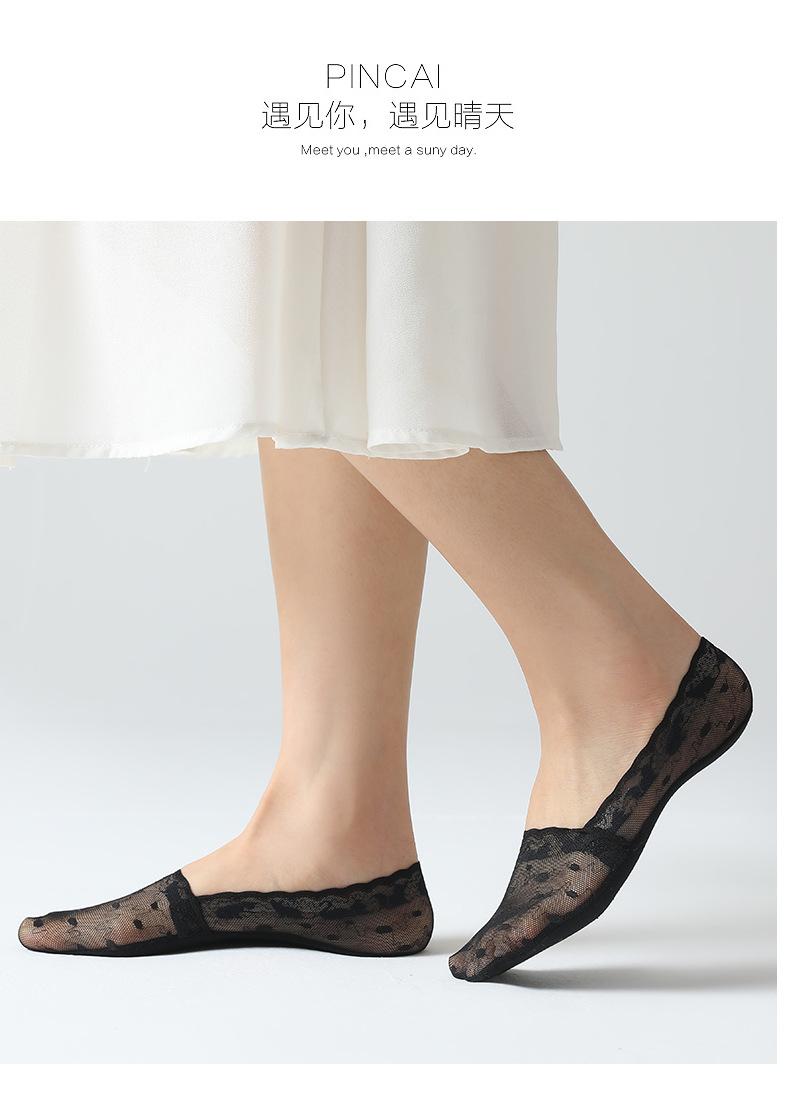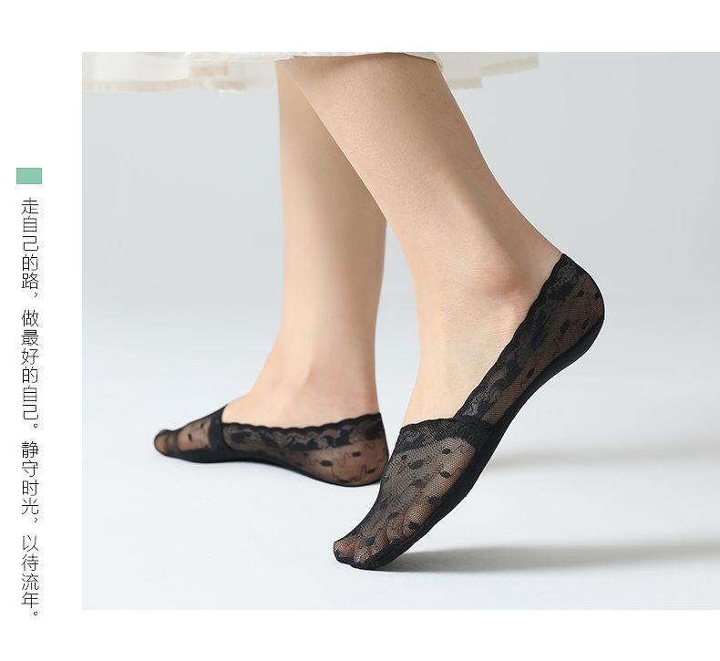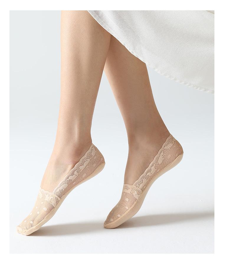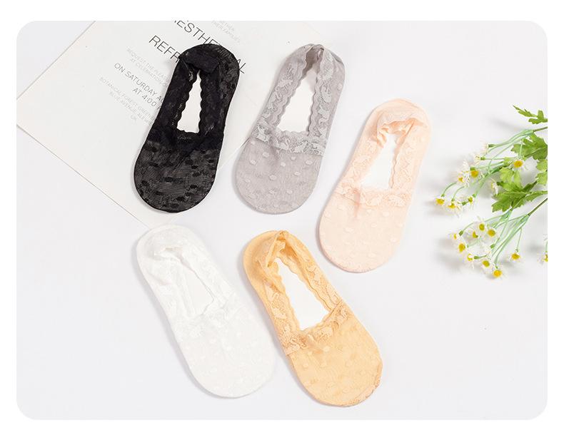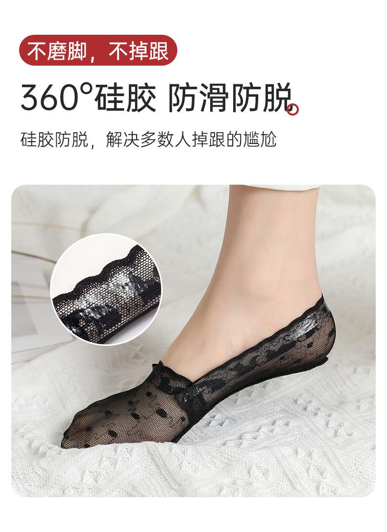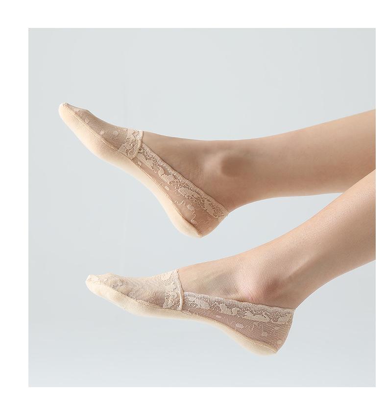 Calcetines de verano de malla fina transpirables, calcetines náuticos de encaje, de silicona, antideslizantes, con talón anticaída, invisibles, informales, para mujer