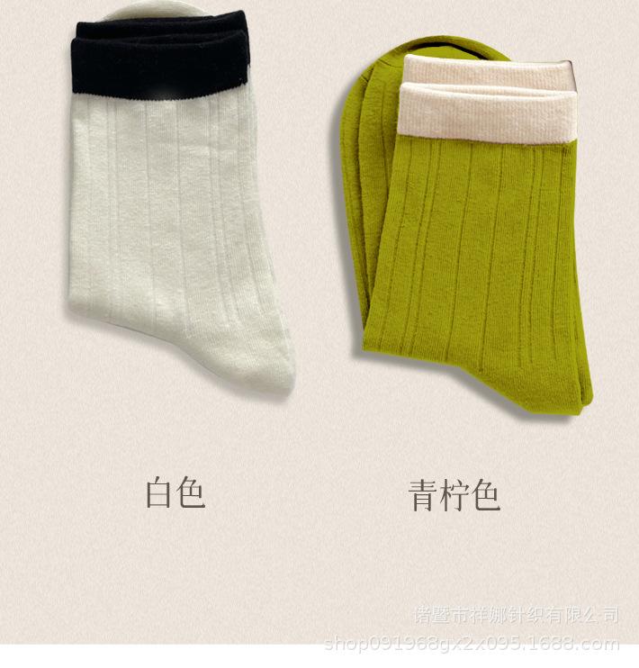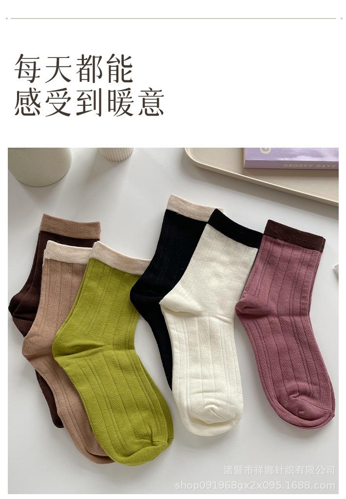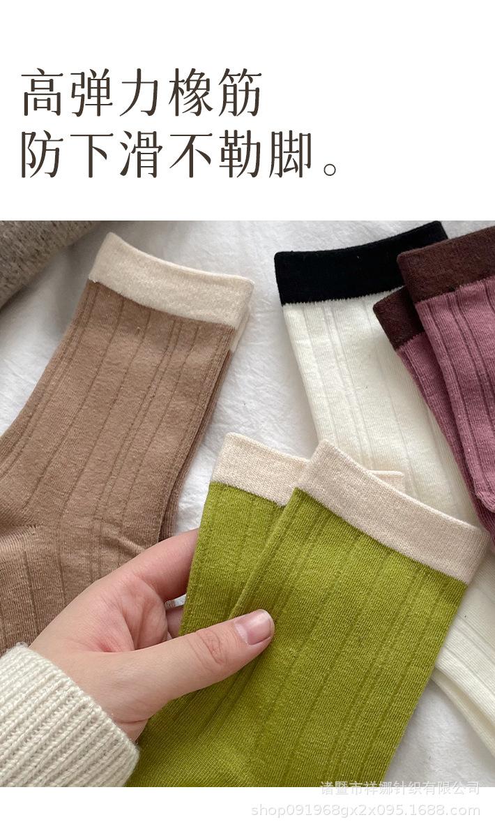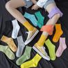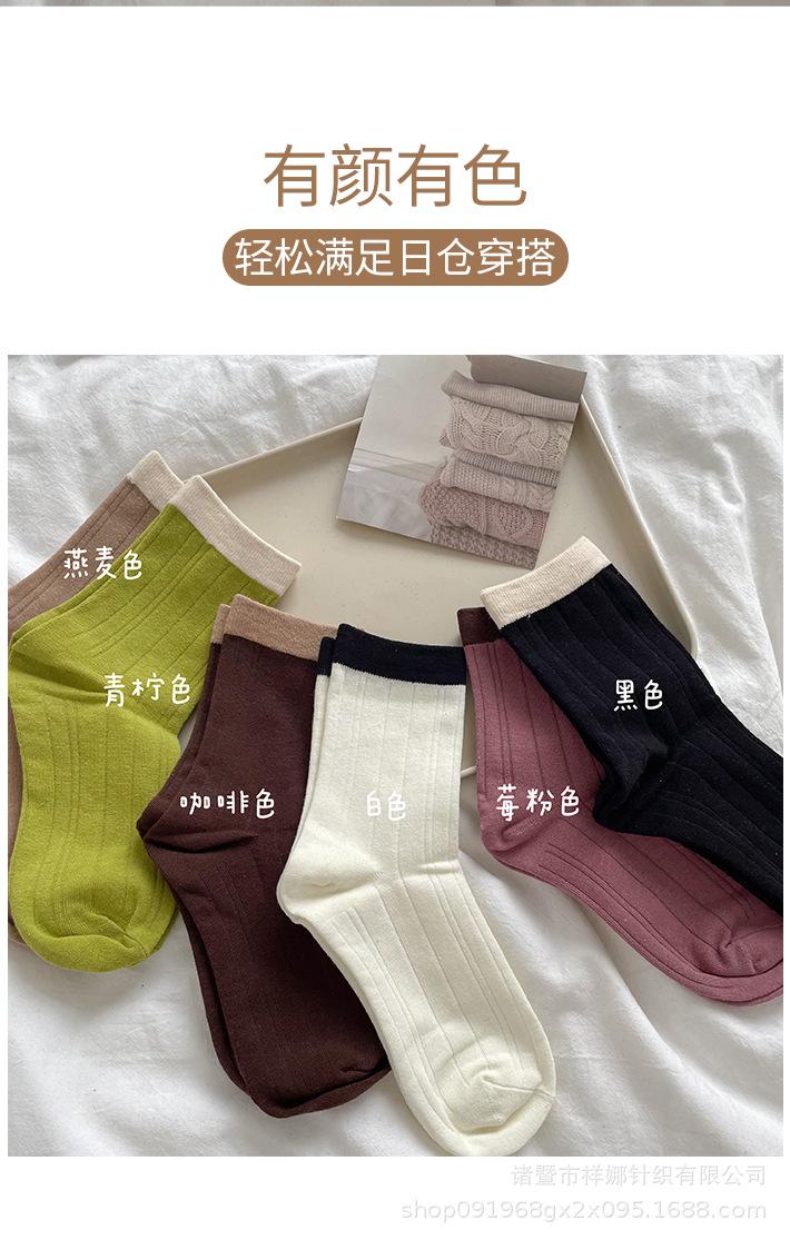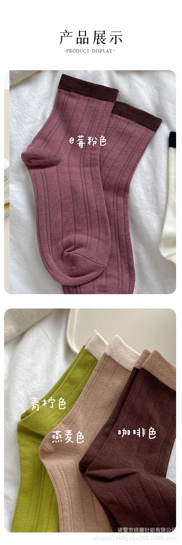 Calcetines de Color Sólido Estilo Ins Calcetines de Media Caña para Mujer Primavera, Otoño y Verano Color Contrastante Estilo Japonés Lindo Transpirable Algodón Rizo Calcetines