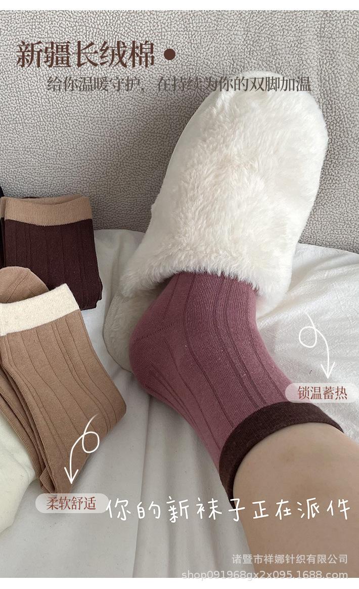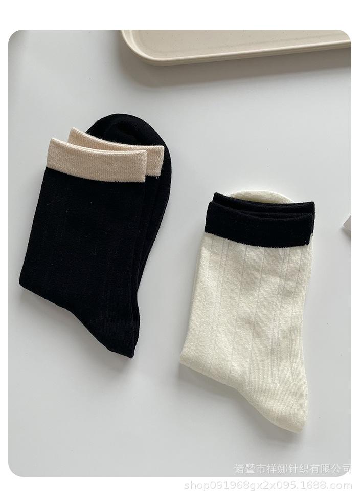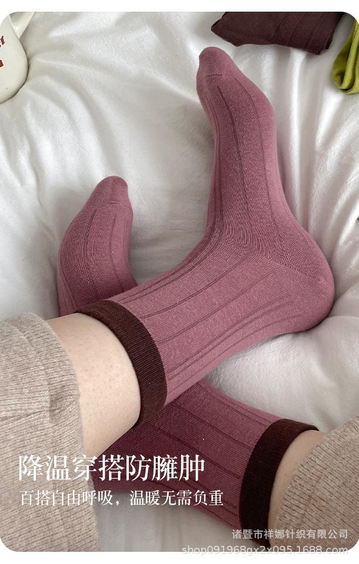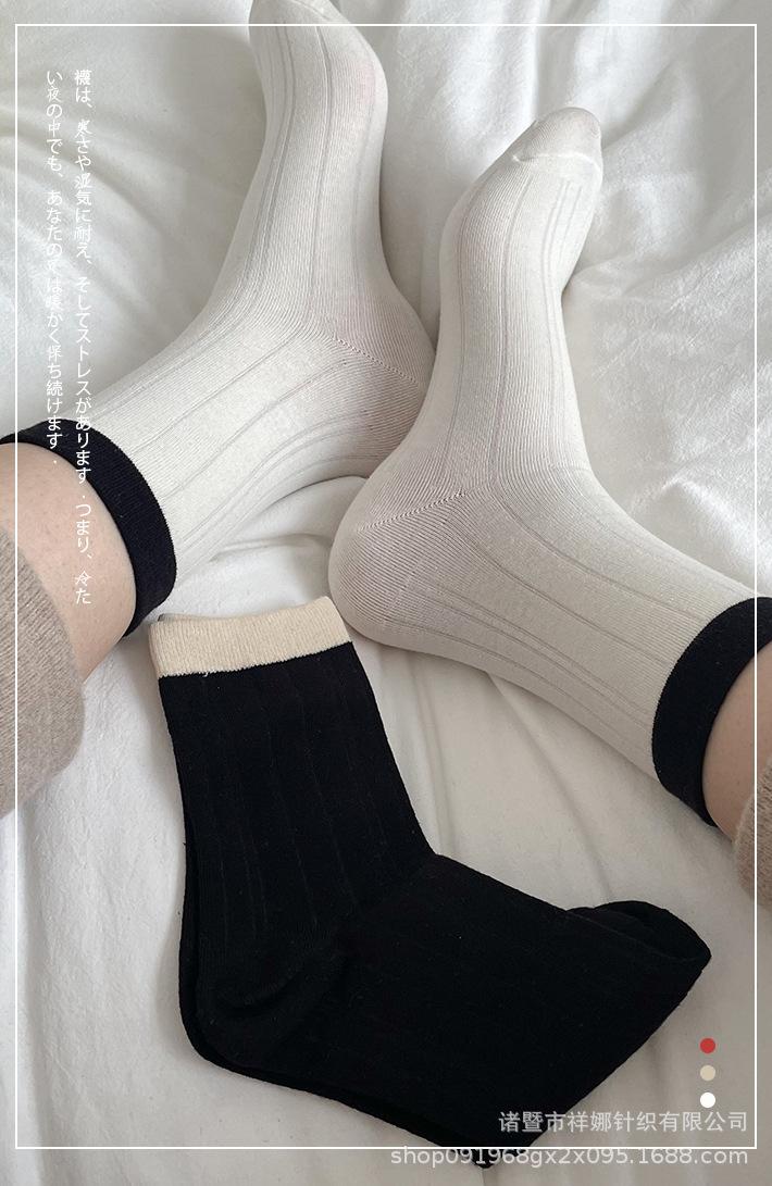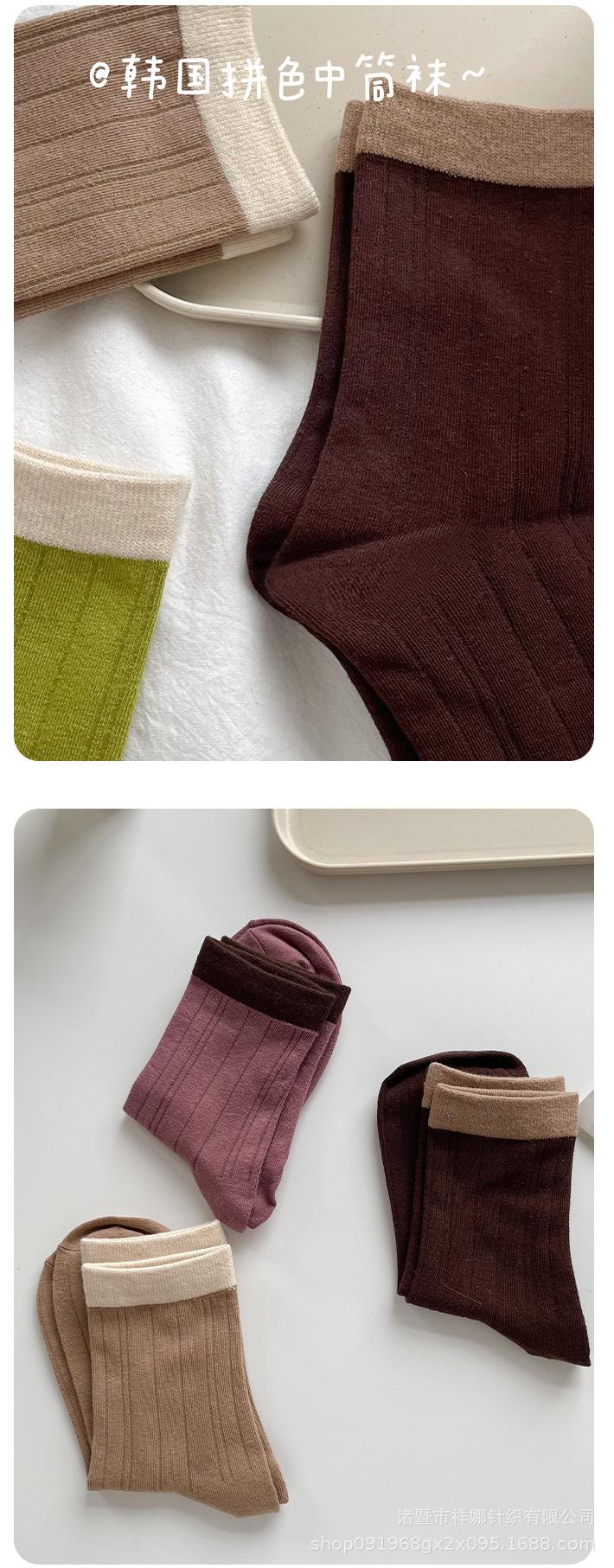 Calcetines de Color Sólido Estilo Ins Calcetines de Media Caña para Mujer Primavera, Otoño y Verano Color Contrastante Estilo Japonés Lindo Transpirable Algodón Rizo Calcetines