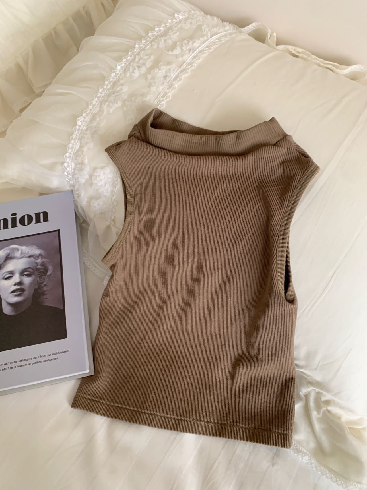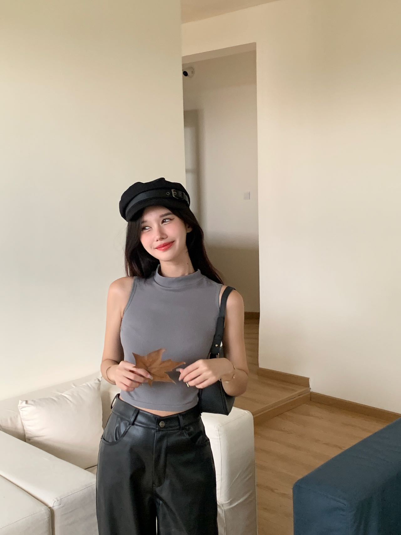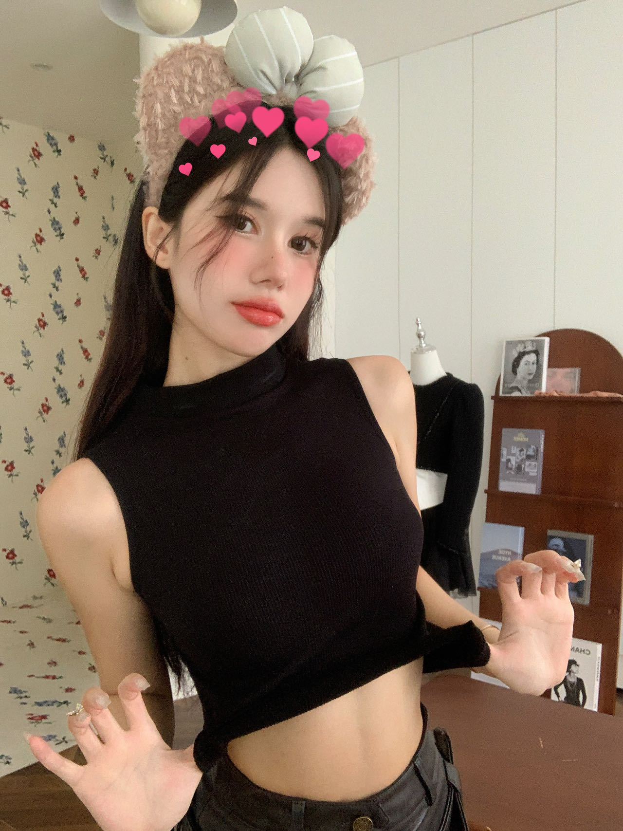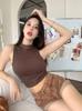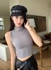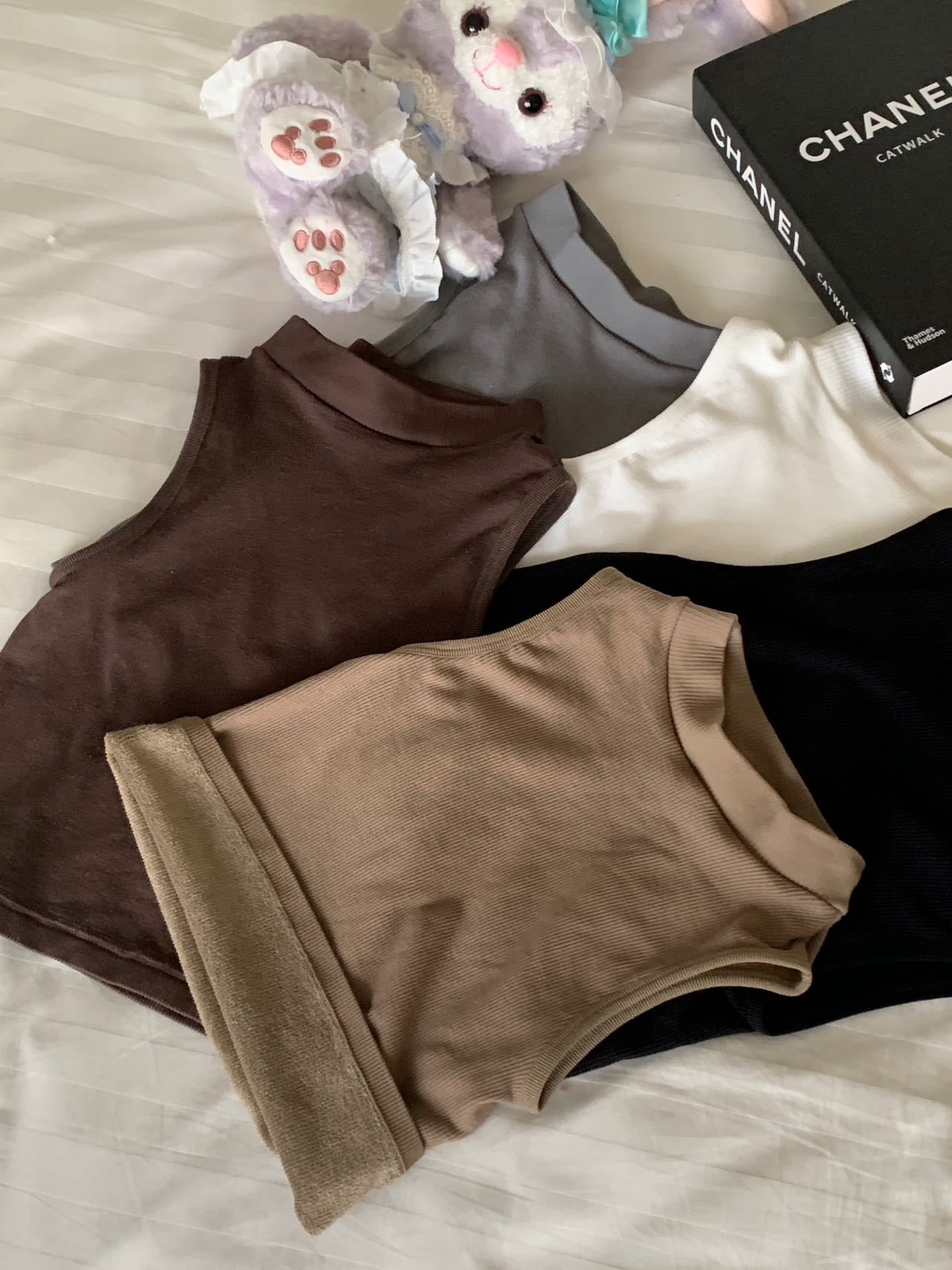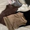 Chaleco sin mangas sencillo y cálido de estilo coreano para mujer, ropa interior de otoño, ropa exterior, camisa corta ajustada de color sólido con tirantes.