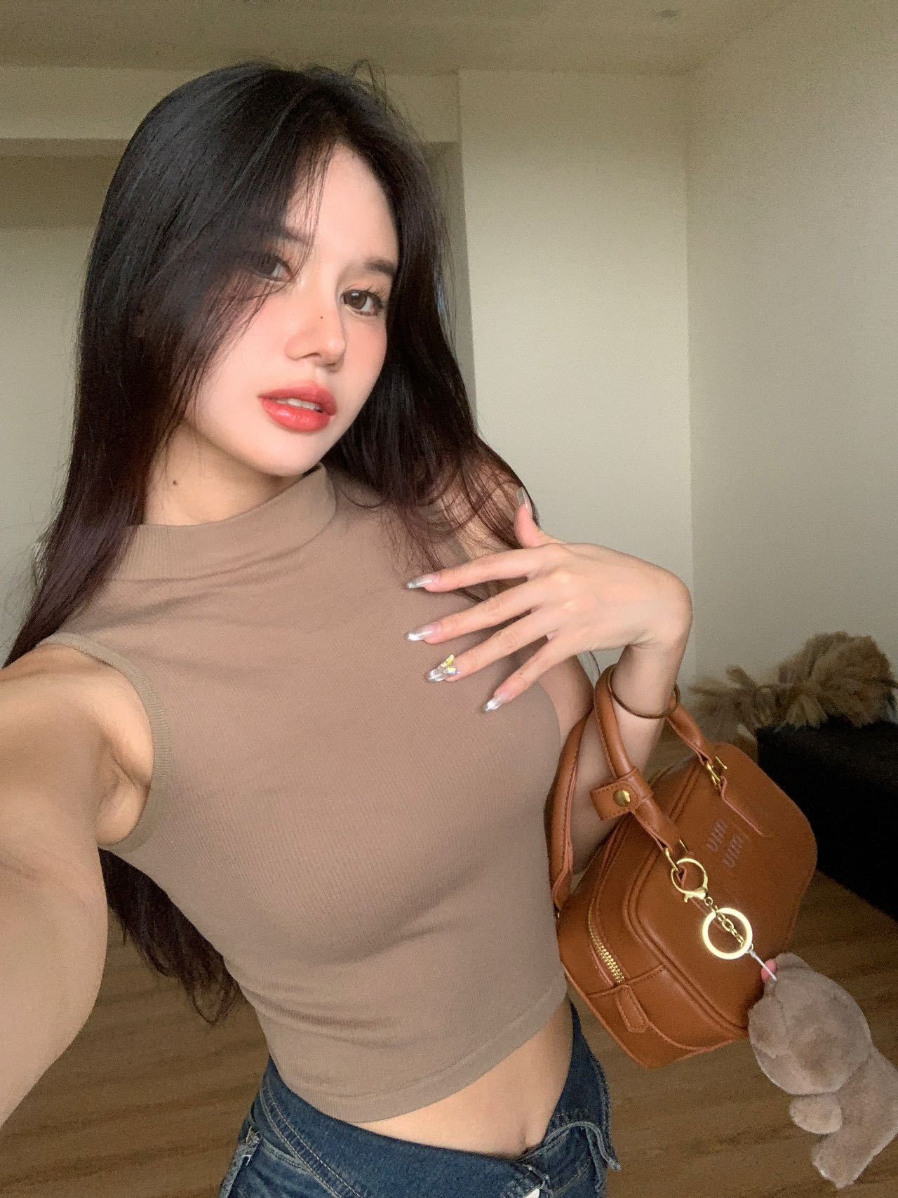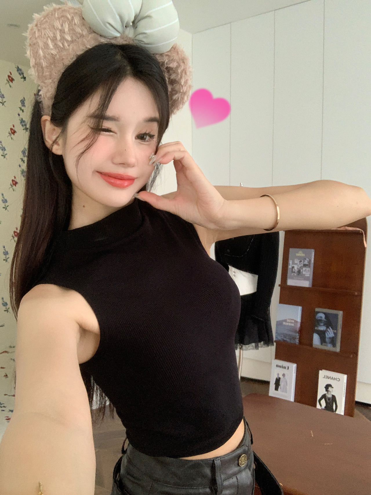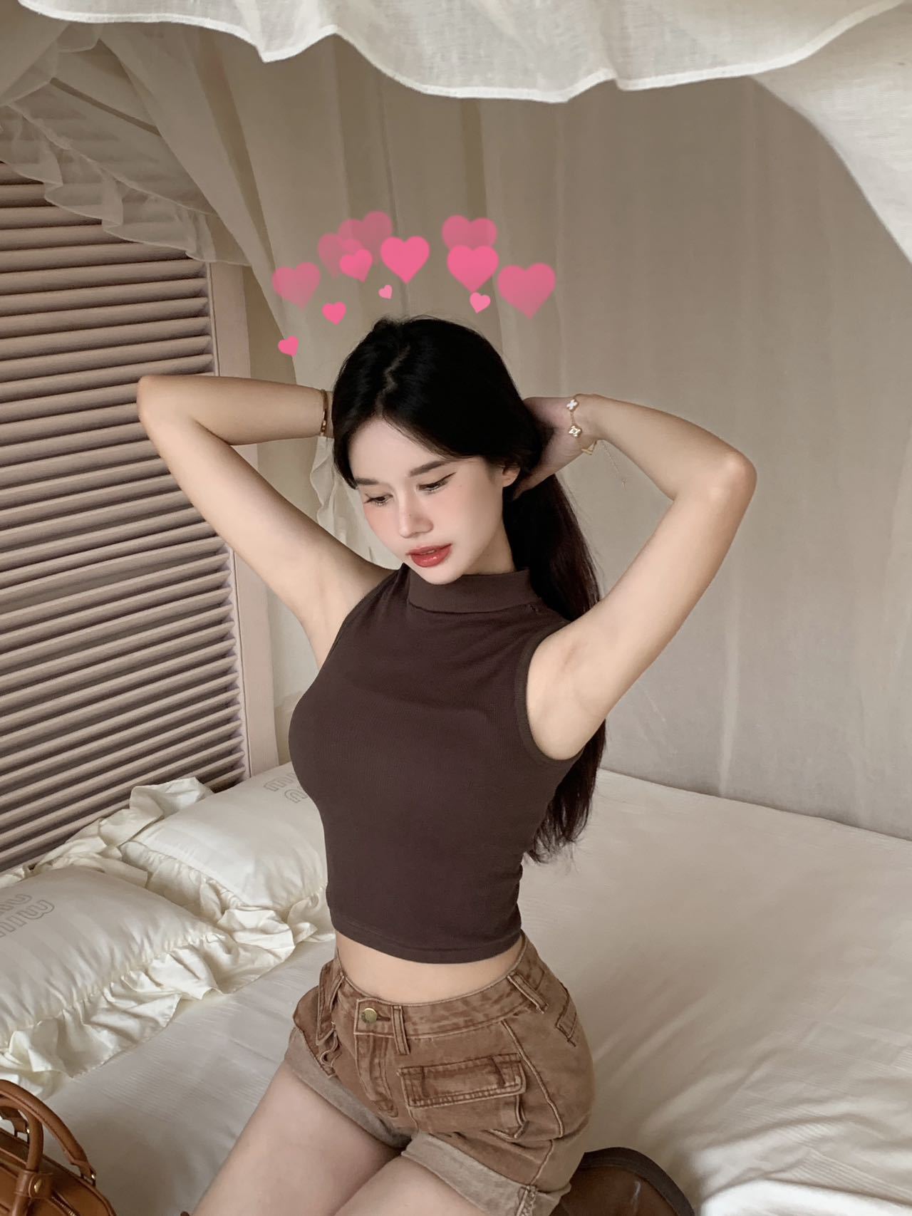 Chaleco sin mangas sencillo y cálido de estilo coreano para mujer, ropa interior de otoño, ropa exterior, camisa corta ajustada de color sólido con tirantes.