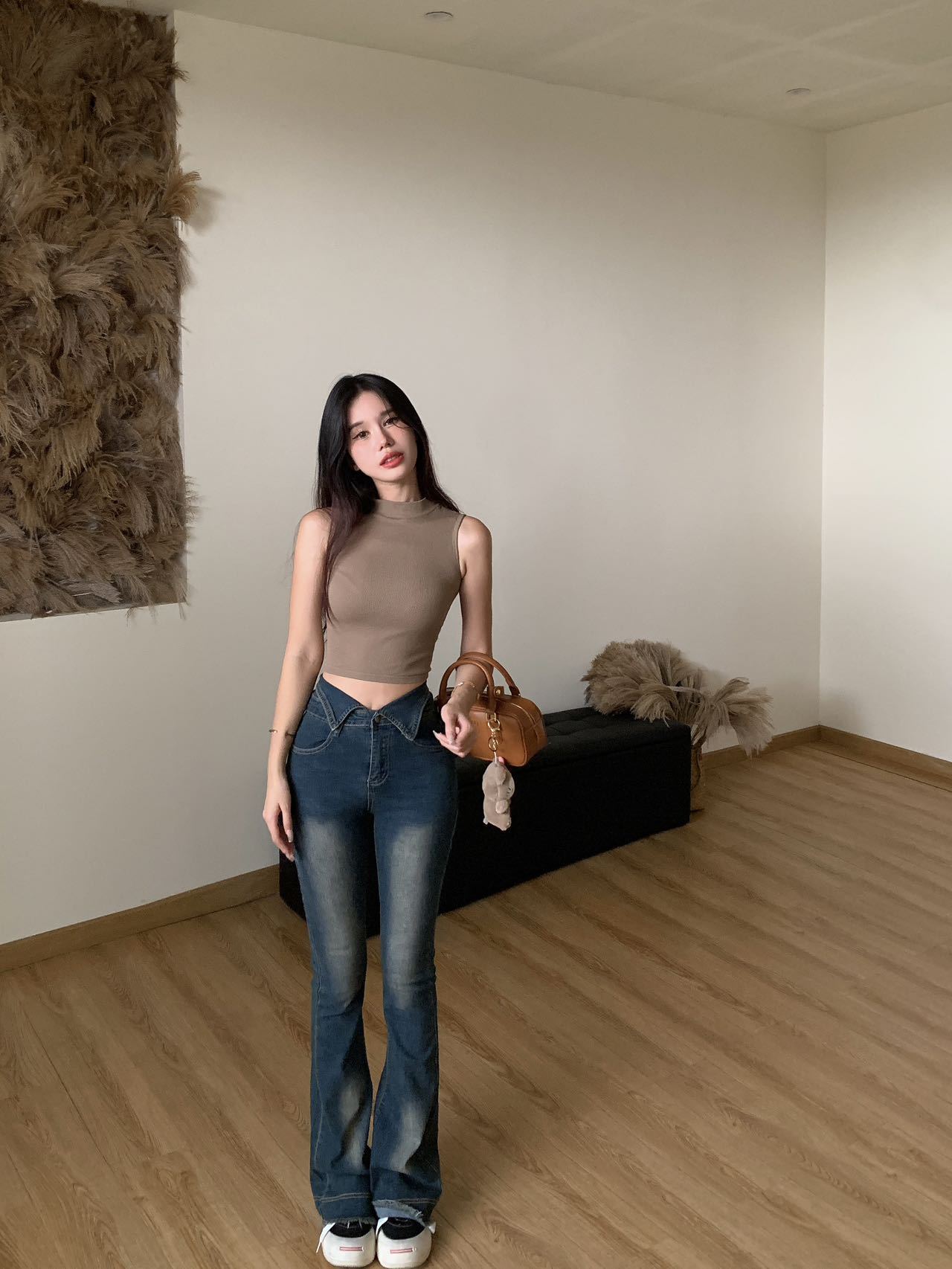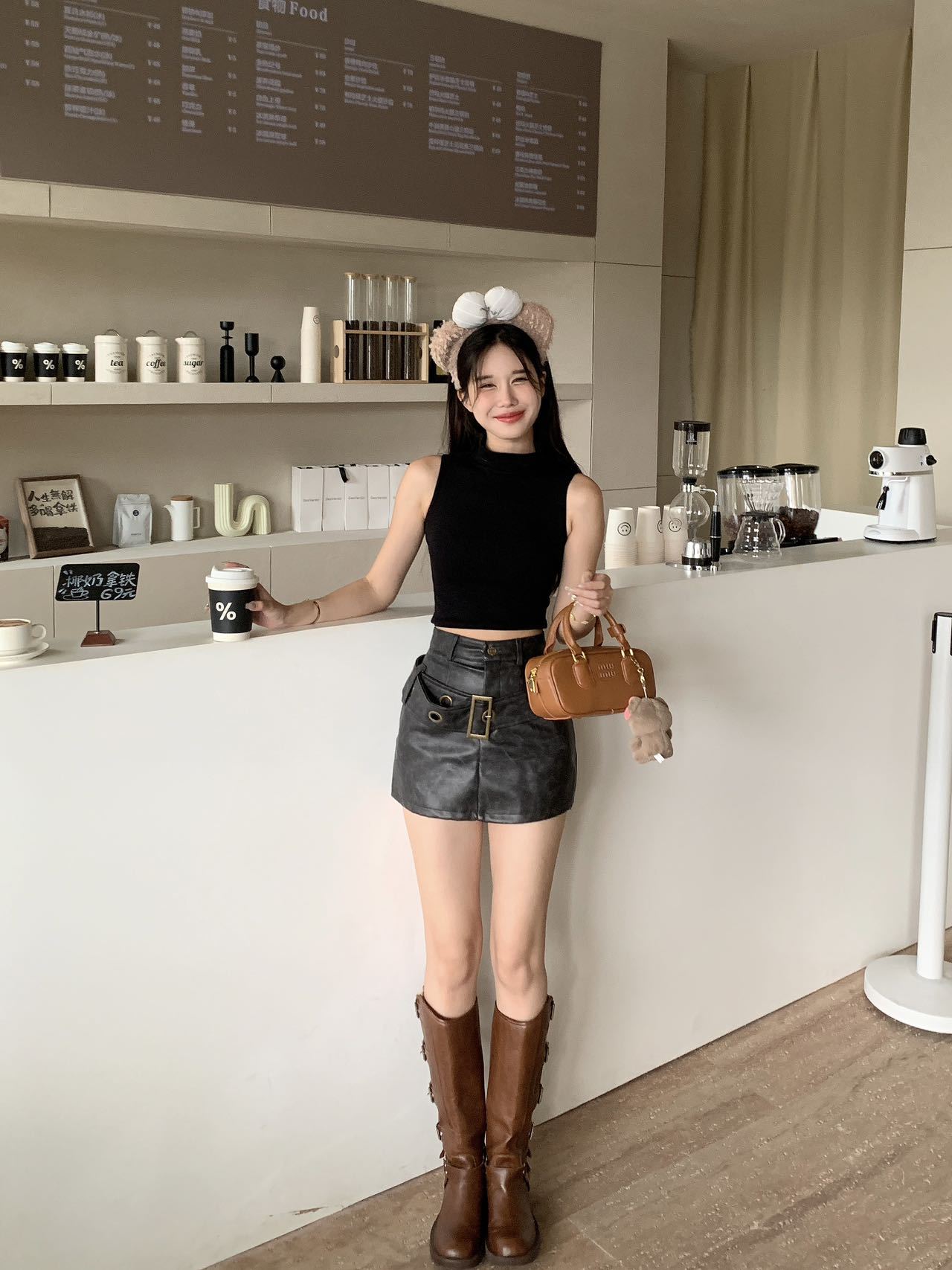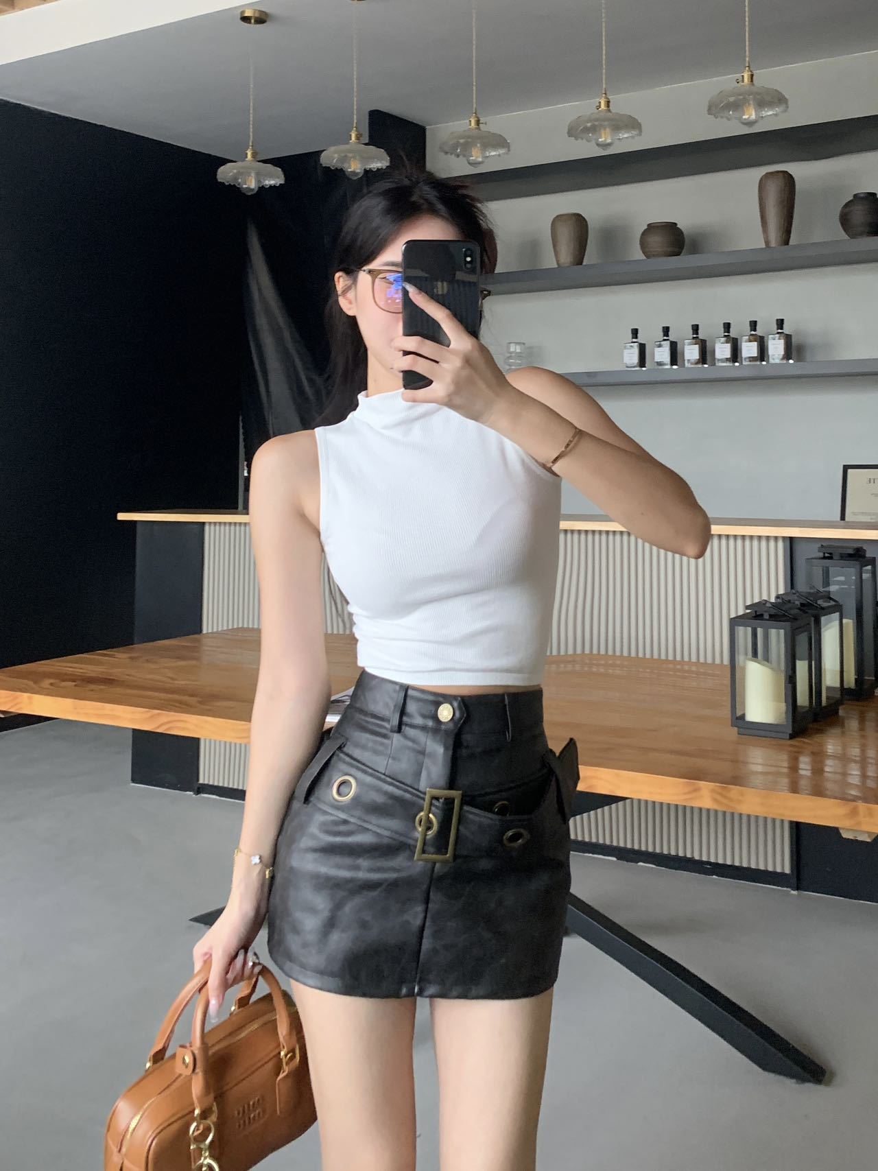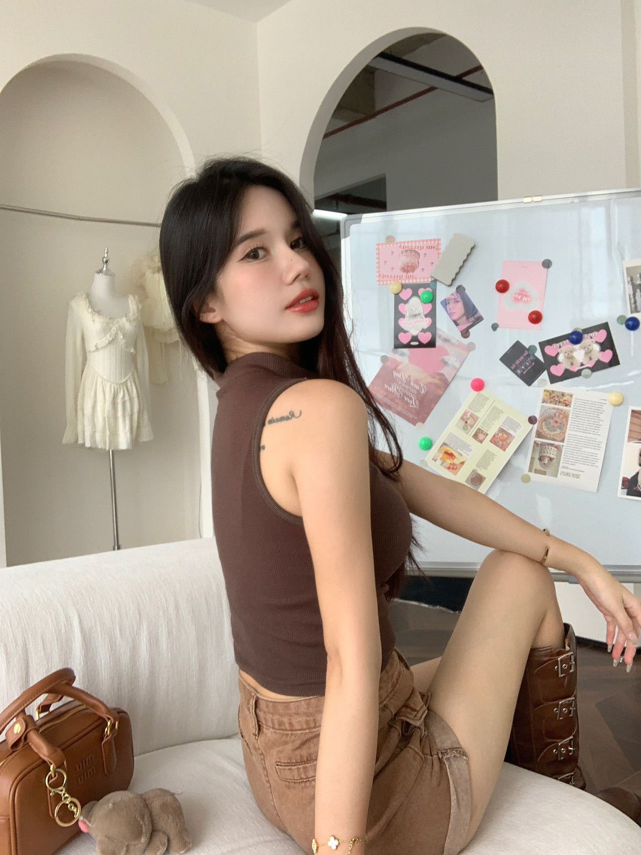 Chaleco sin mangas sencillo y cálido de estilo coreano para mujer, ropa interior de otoño, ropa exterior, camisa corta ajustada de color sólido con tirantes.