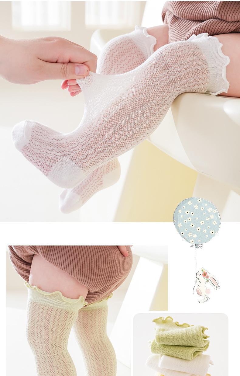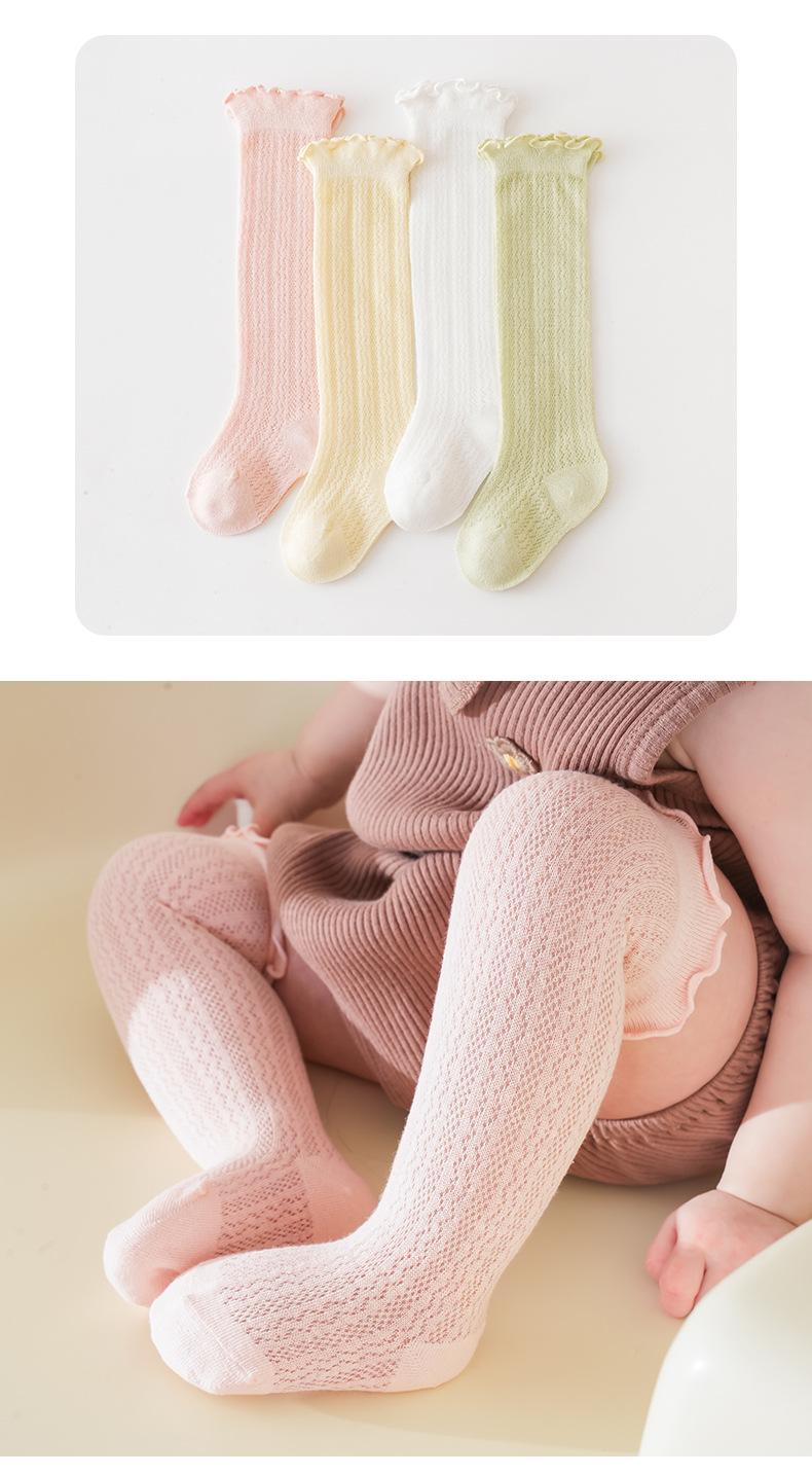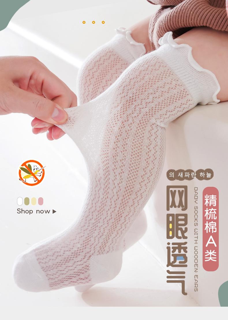 Calcetines nuevos para bebé al por mayor 2024 verano delgados calcetines para recién nacido color sólido malla calcetines largos para niños anti-mosquitos
