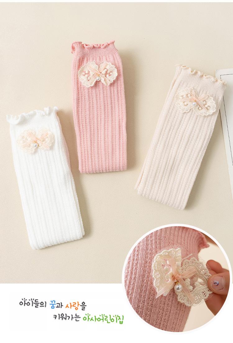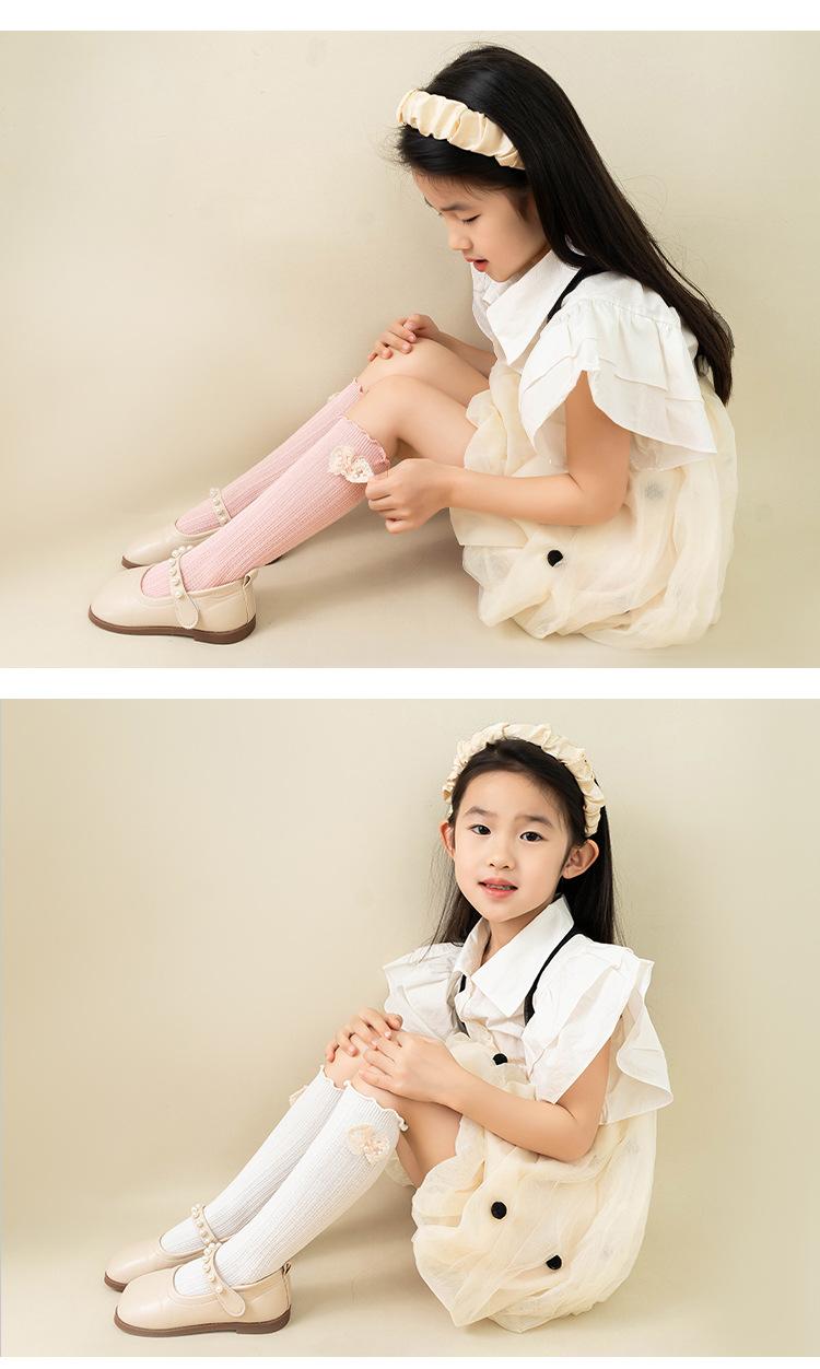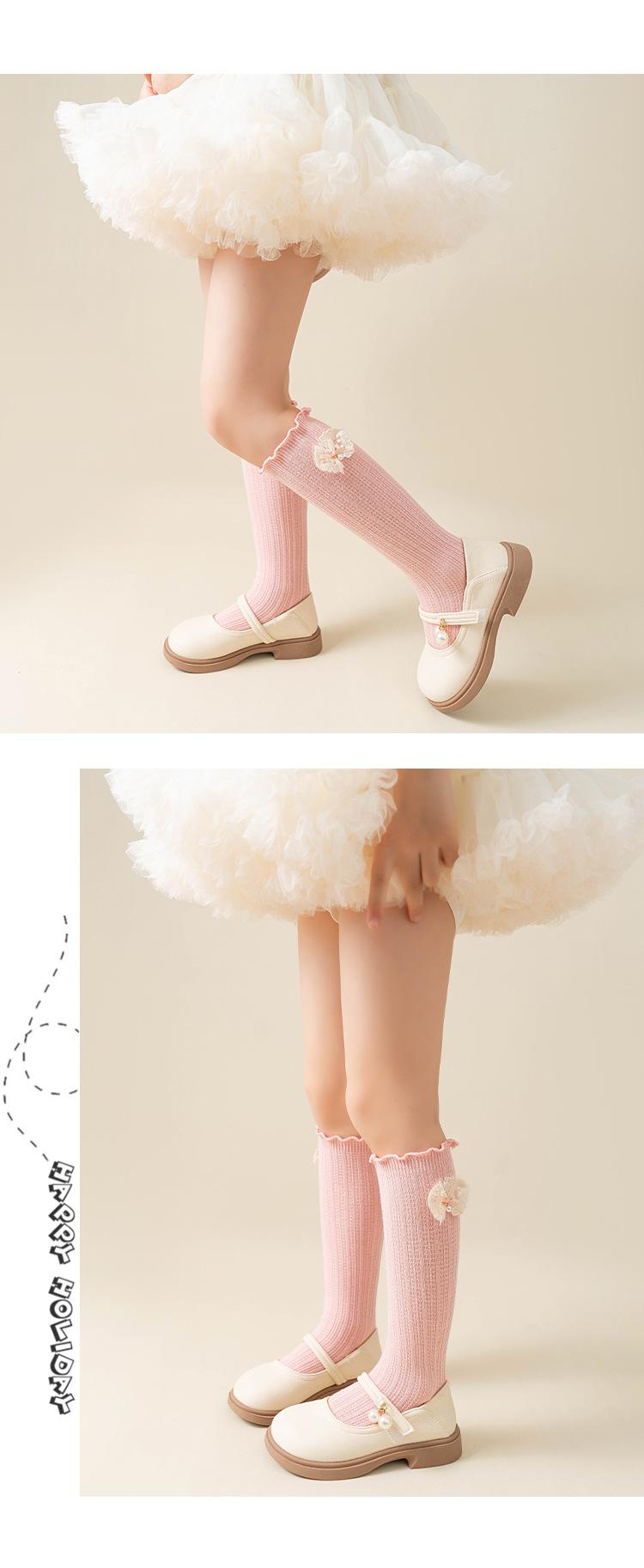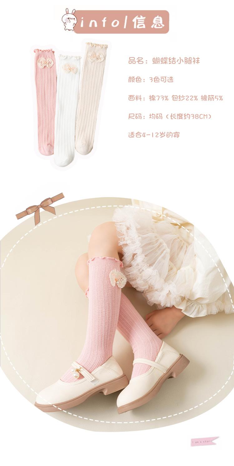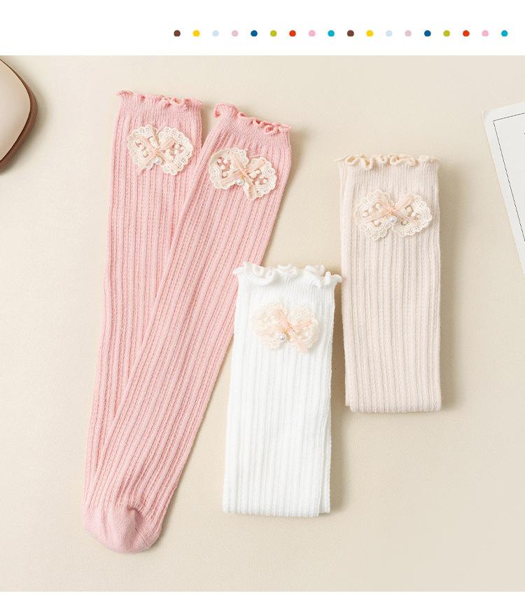 Calcetines para niños, primavera y verano, de longitud media, de color liso, con lazo, para estudiantes, primavera y otoño