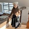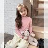 Emo Beibei Otoño e Invierno Niñas Dulce Coreano Color Interior Suave Cachemira Encaje Pellizcado Camisa Base Top