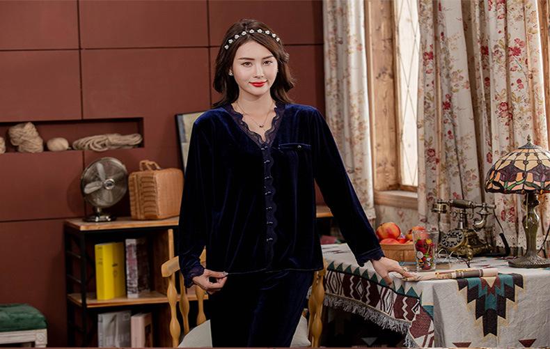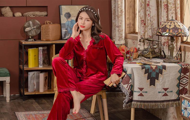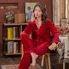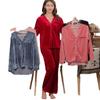 Pijama de seda sintética de manga larga para primavera y otoño, nuevo pantalón de manga larga, cárdigan de solapa, tela satinada, ropa de casa, traje de dos piezas