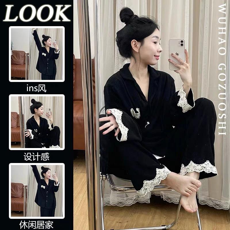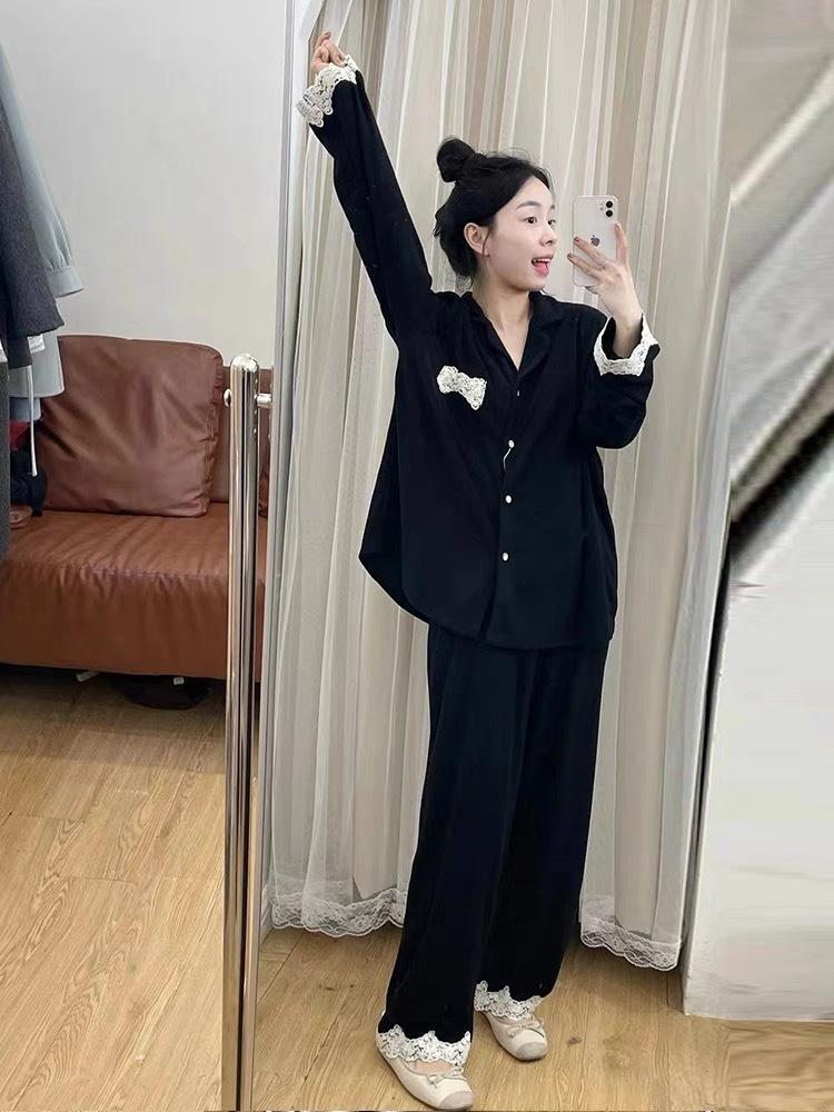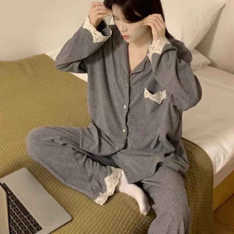 Pijamas de mujer de primavera y otoño de manga larga, lindos y sencillos para usar en casa, de alta calidad, 2024. El nuevo estilo se puede usar al aire libre, traje de talla grande.