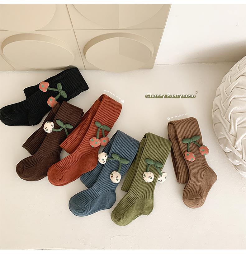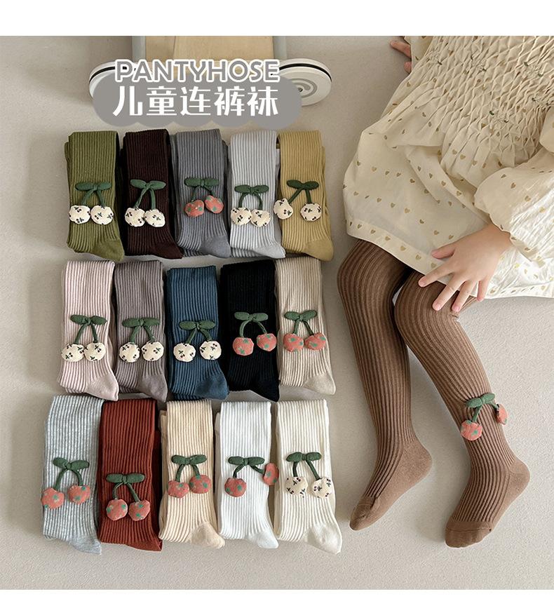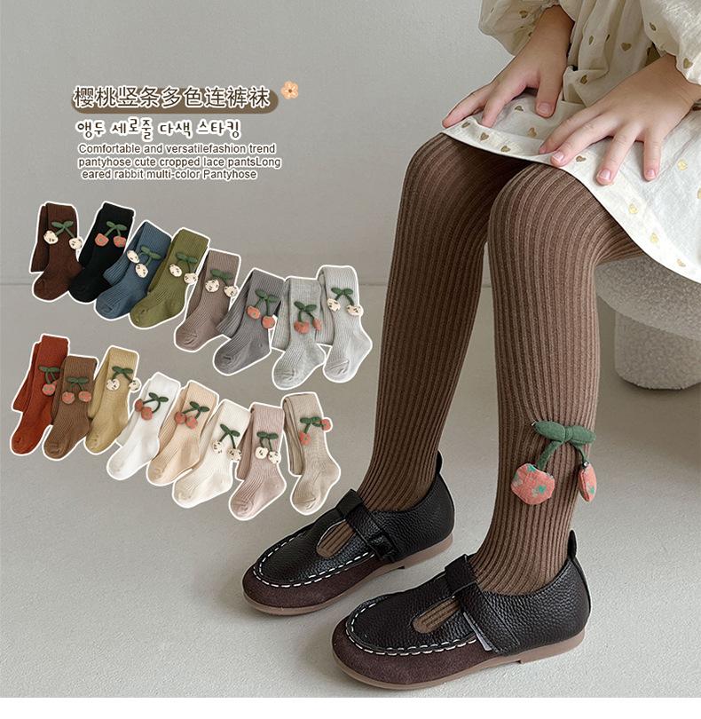 2023 Nuevos Leggings Calcetines para Niños Primavera y Otoño Cereza Medias Verticales Niñas Color Caramelo Calcetines de Princesa para Bebé