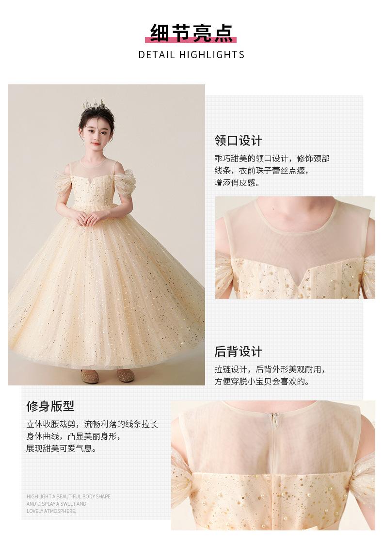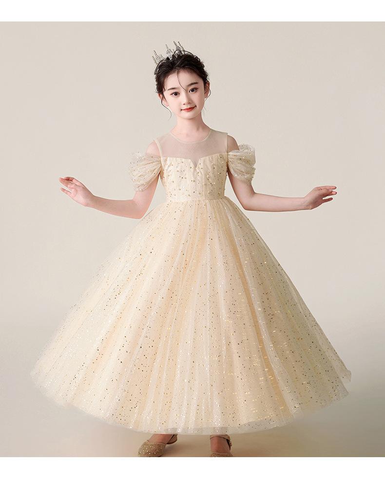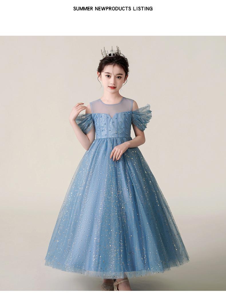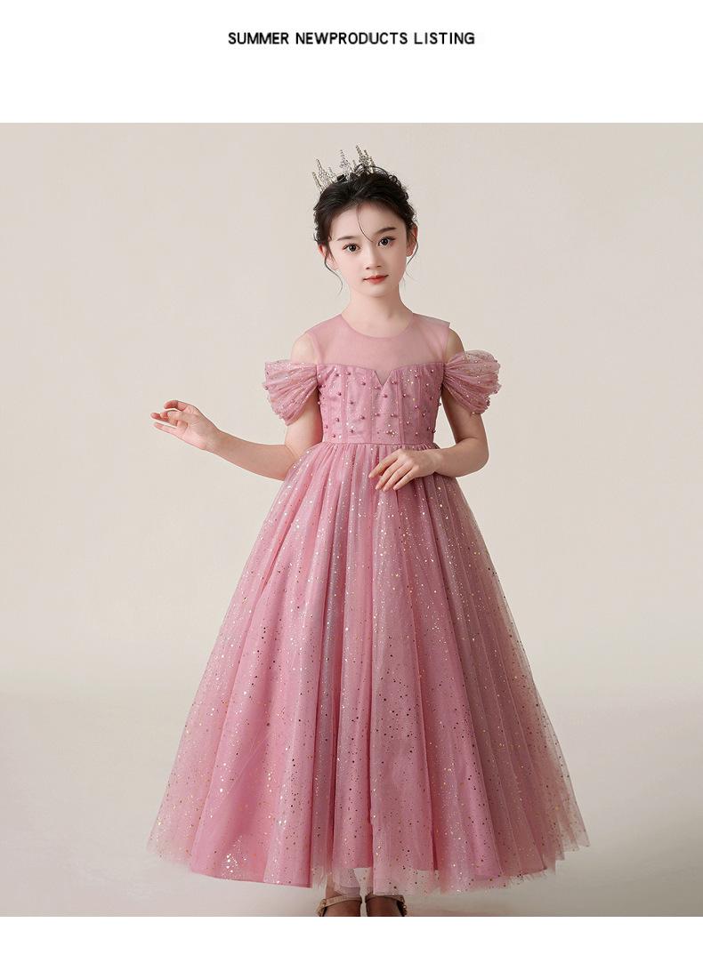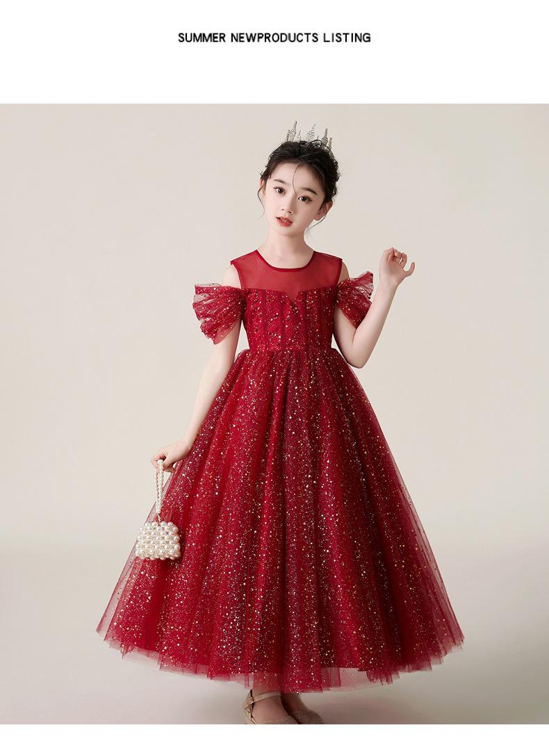 Vestido de Novia para Niñas Transfronterizo Vestido Vestido Grande para Niños Vestido Largo Disfraz de Actuación para Niños