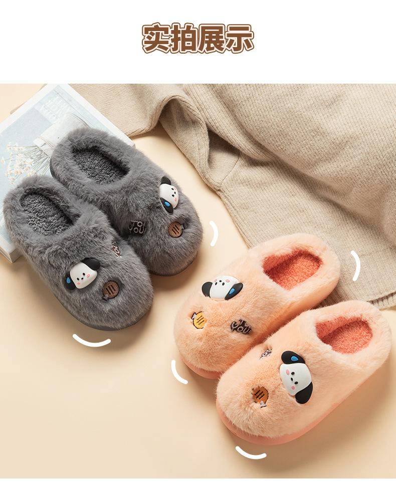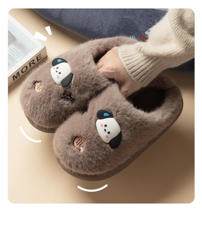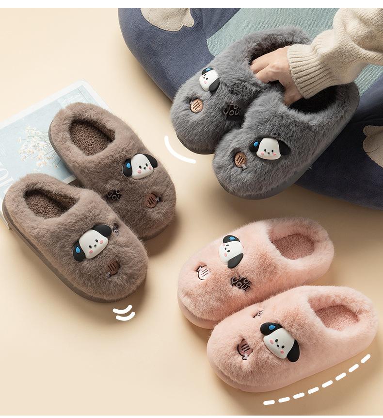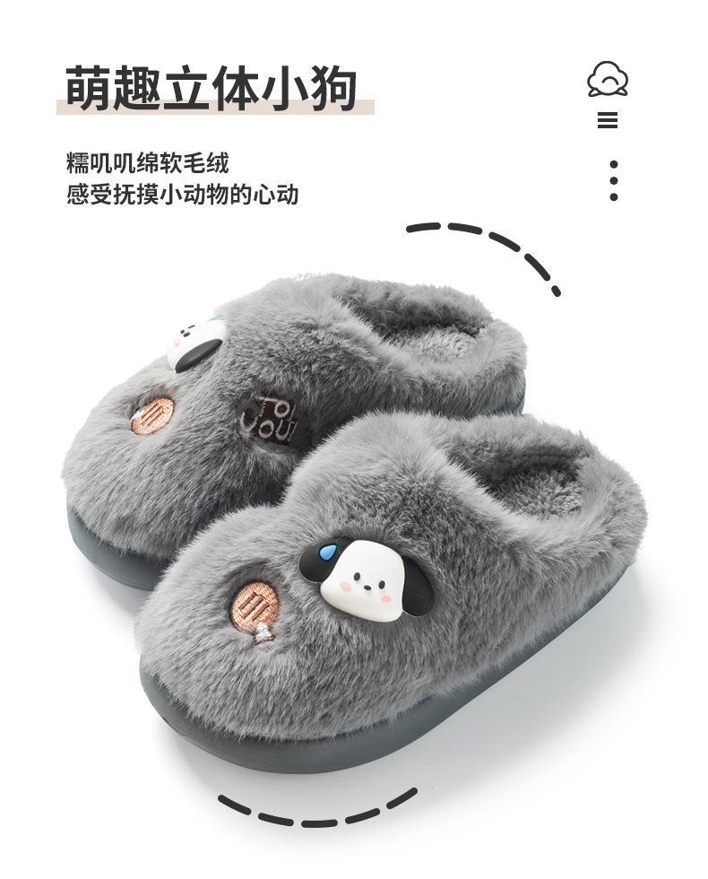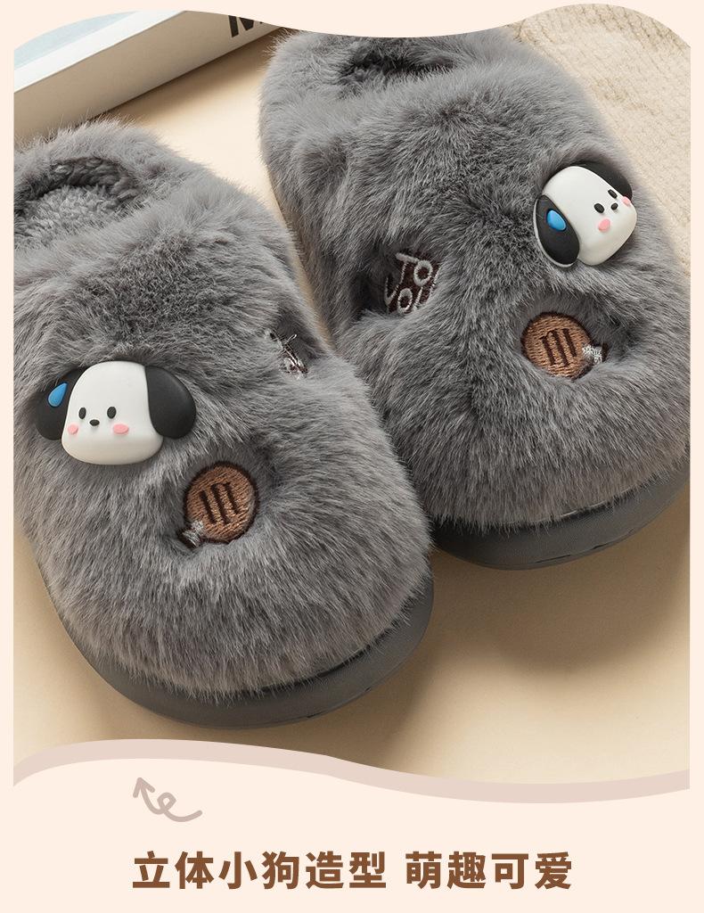 Pantuflas de algodón de cachorro gris de invierno para parejas, lindas zapatillas de confinamiento de invierno, pantuflas de piel para niños de interior con suela gruesa