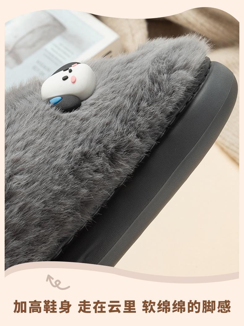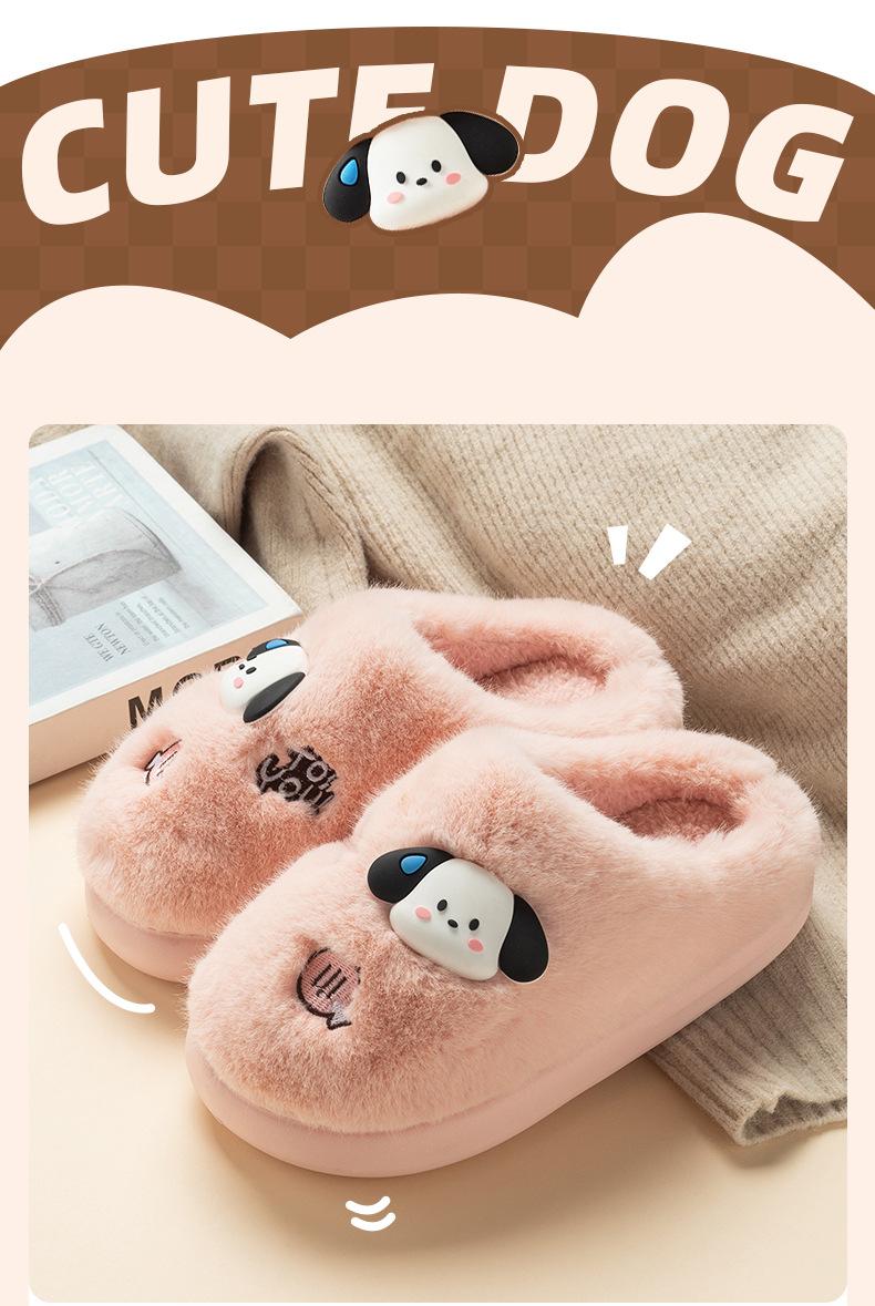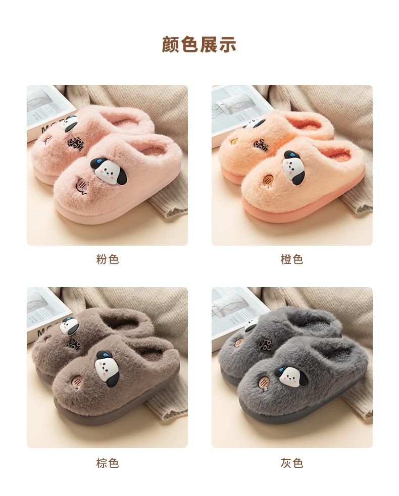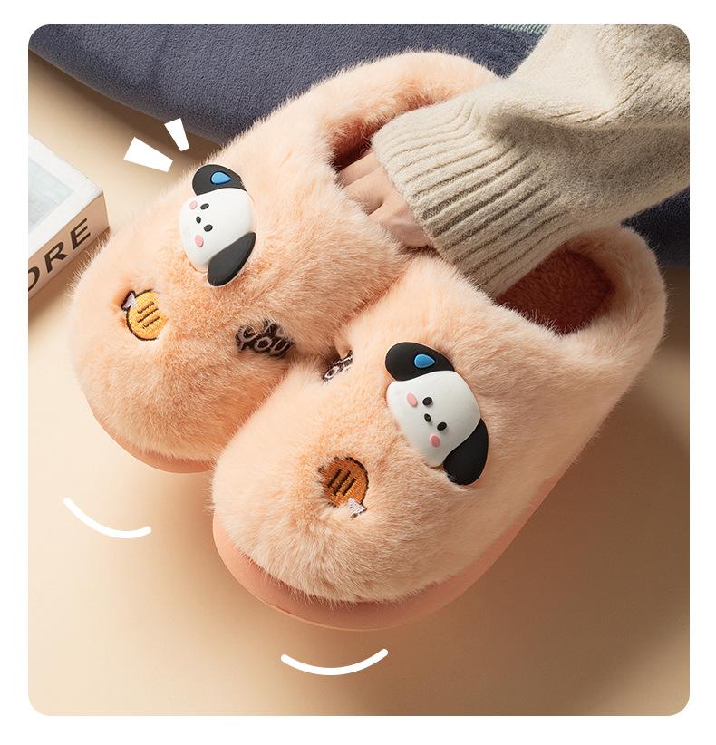 Pantuflas de algodón de cachorro gris de invierno para parejas, lindas zapatillas de confinamiento de invierno, pantuflas de piel para niños de interior con suela gruesa