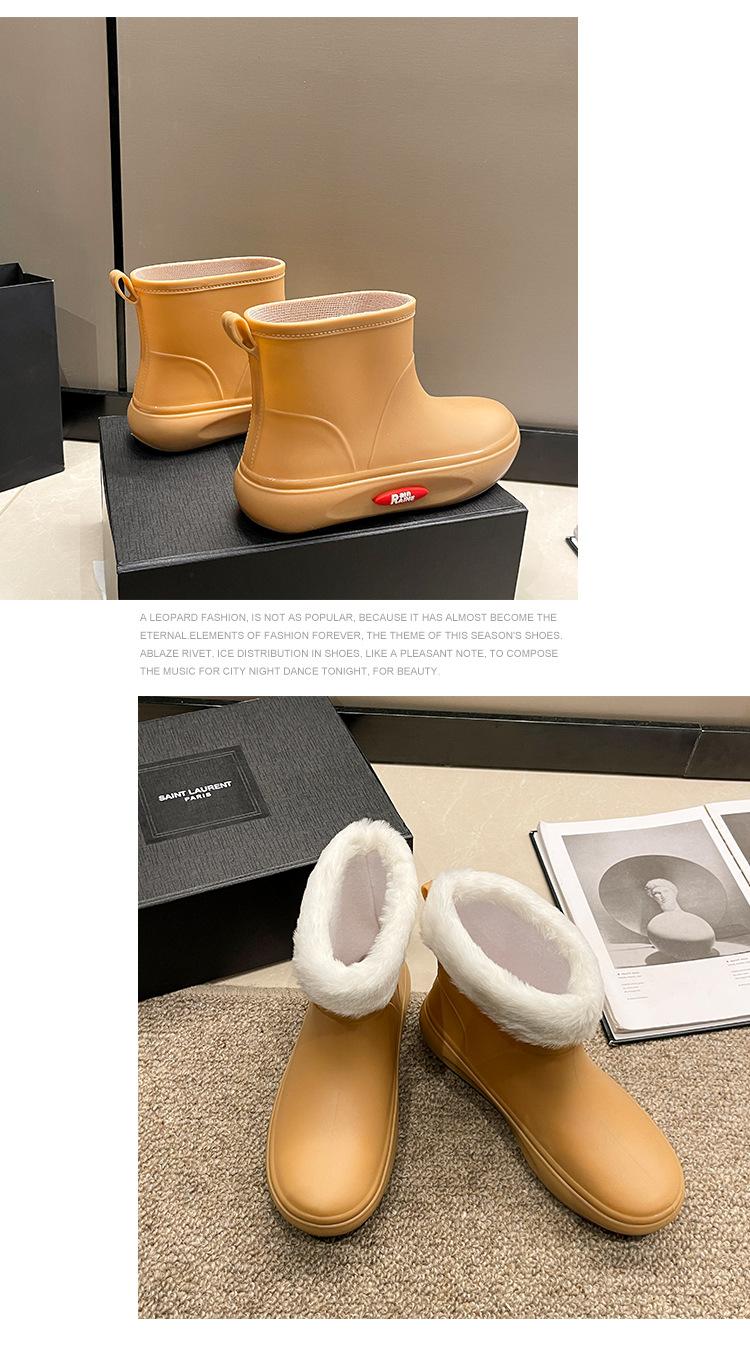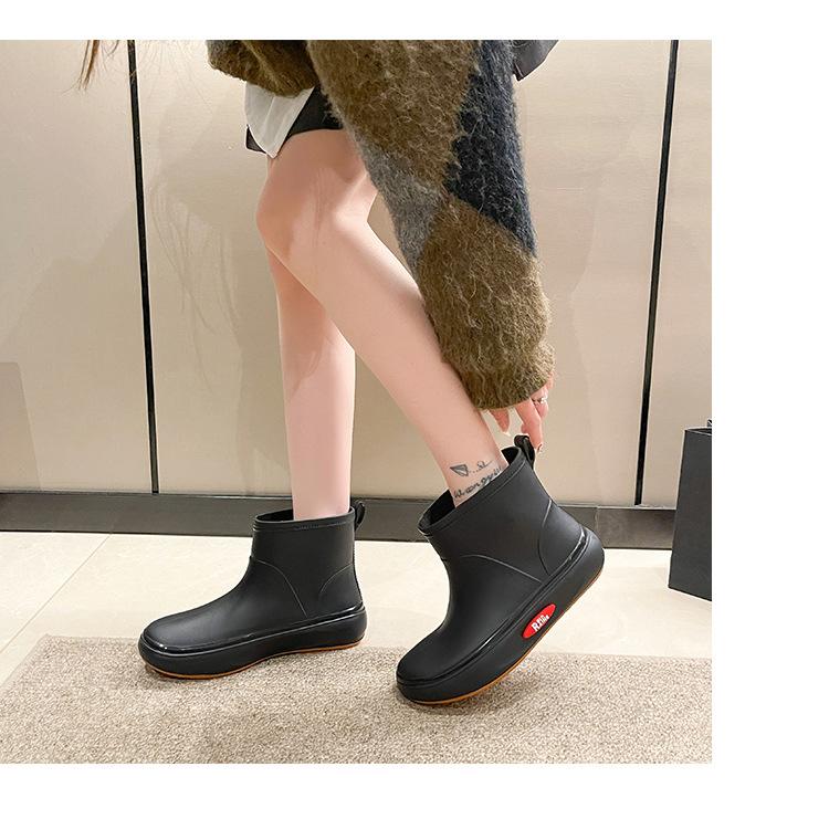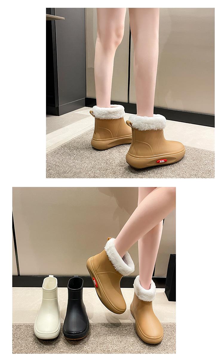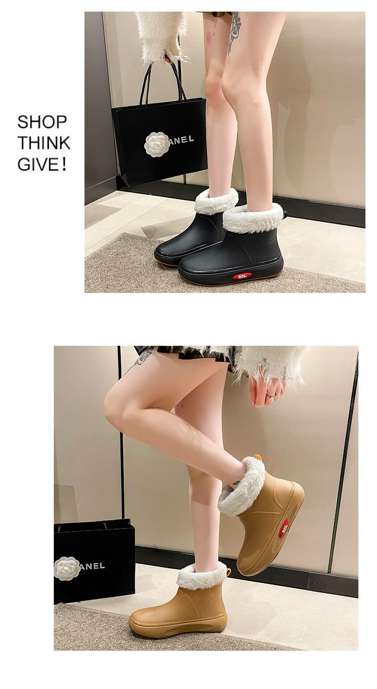Botas de lluvia de moda transfronteriza para mujer, impermeables, antideslizantes, de algodón, cálidas, con suela gruesa y resistentes al desgaste, zapatos de cocina de goma.