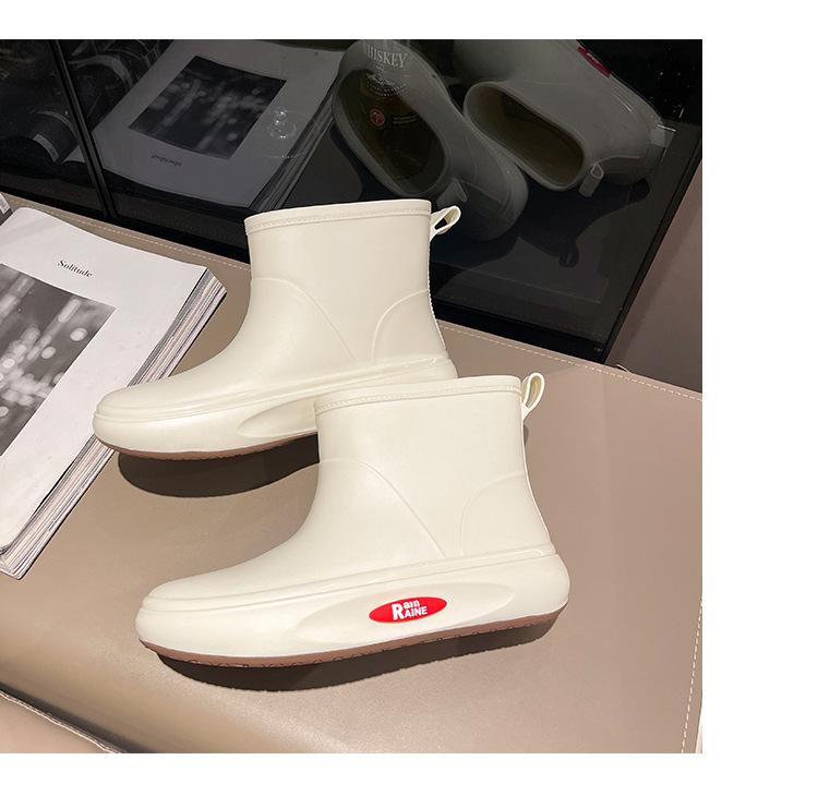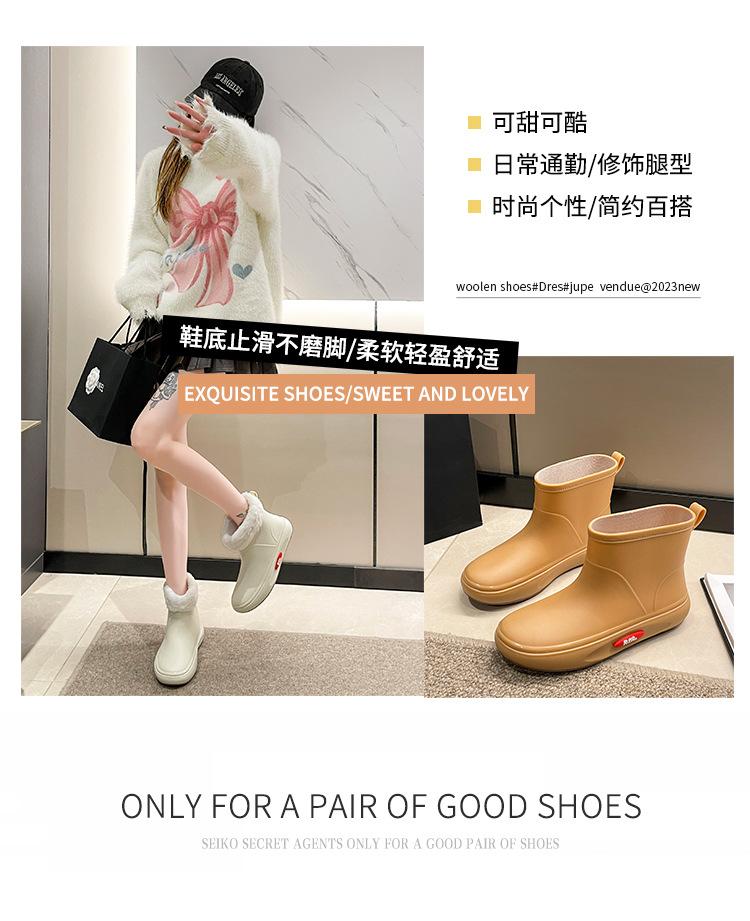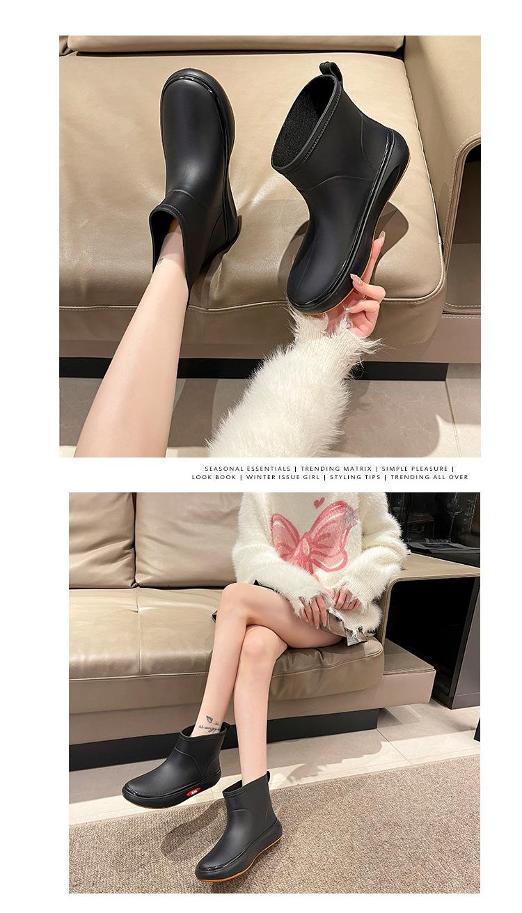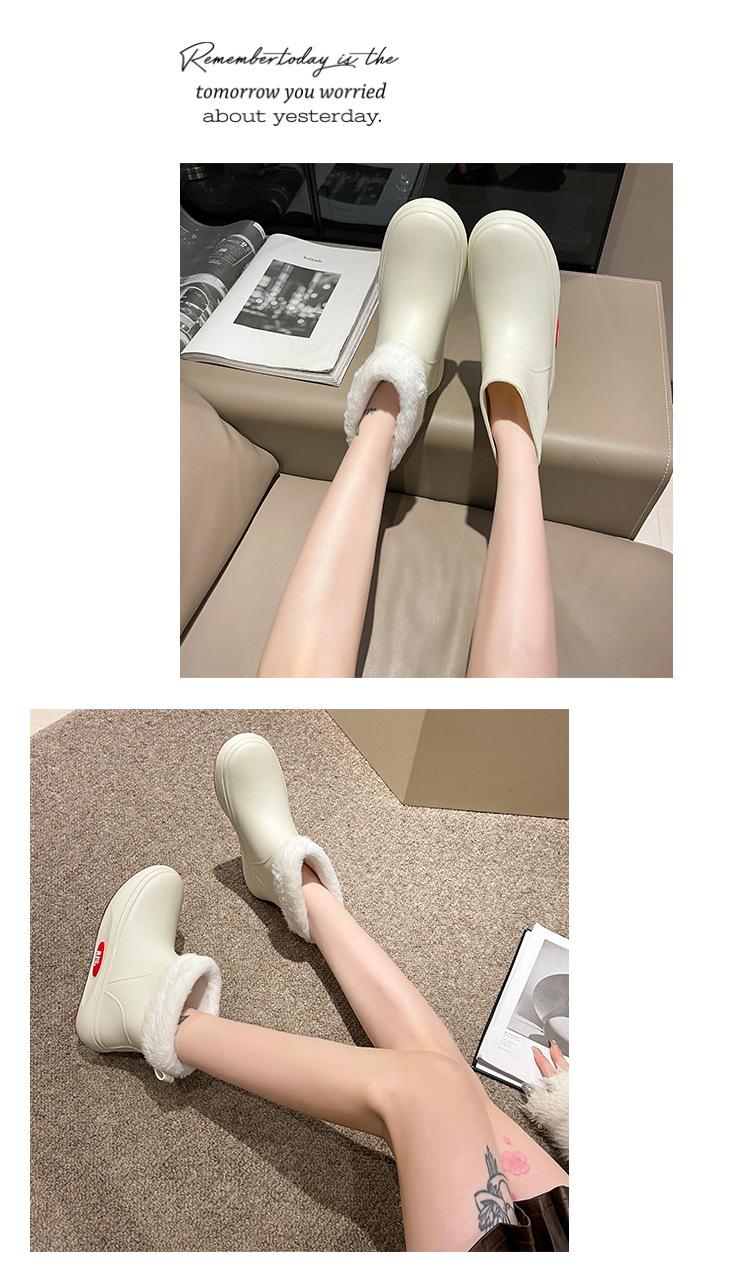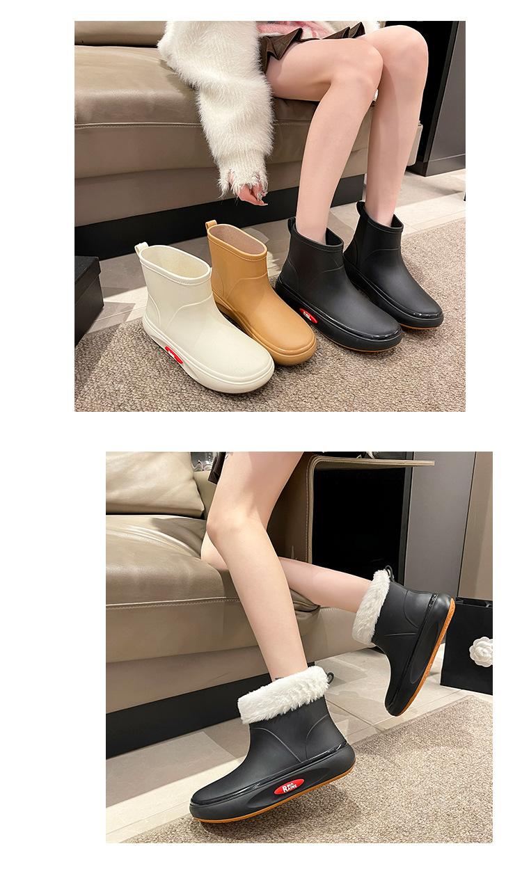 Botas de lluvia de moda transfronteriza para mujer, impermeables, antideslizantes, de algodón, cálidas, con suela gruesa y resistentes al desgaste, zapatos de cocina de goma.
