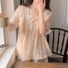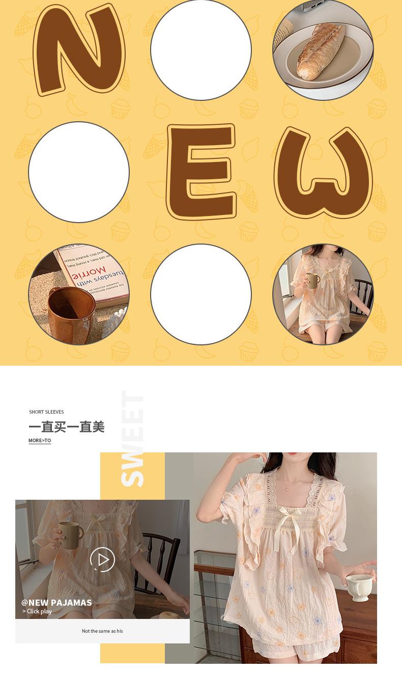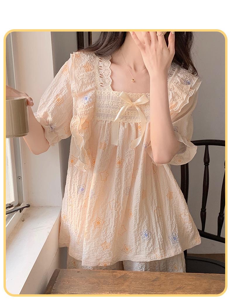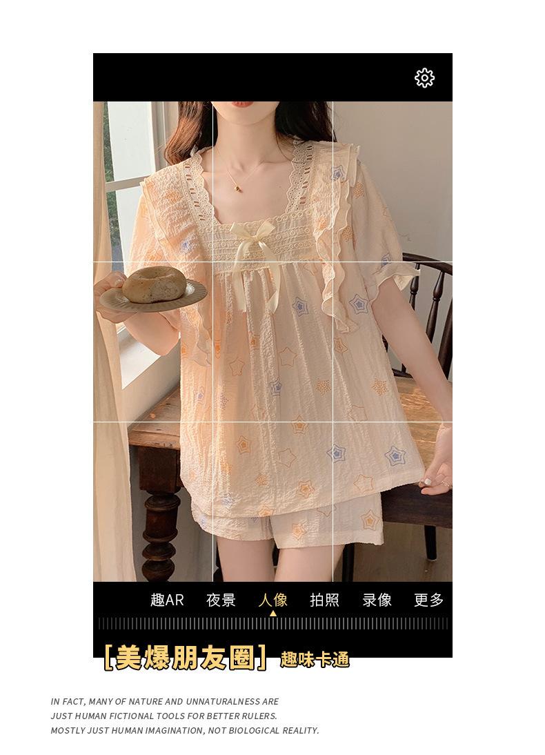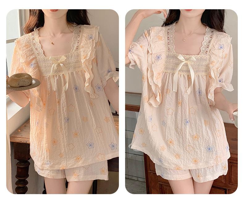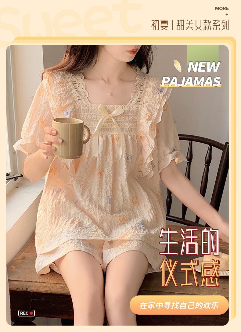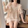 Pijama cárdigan de mujer 2024 nuevo verano lindo dos piezas pantalones cortos simple temporada de verano ropa de casa traje de mujer