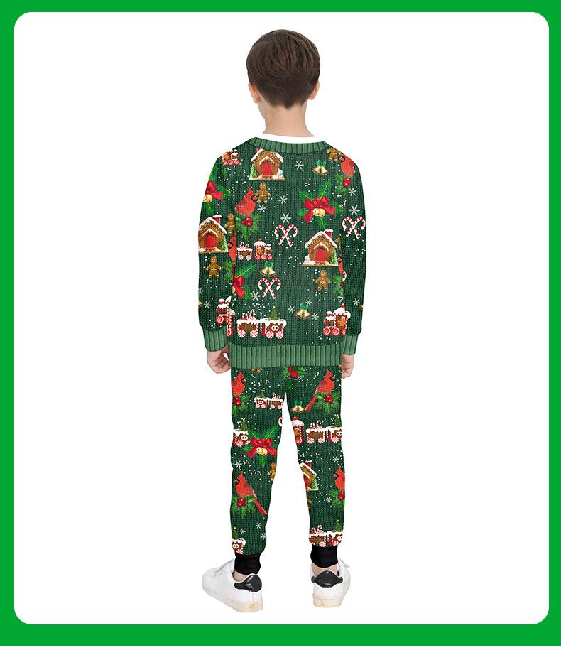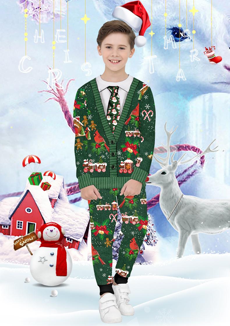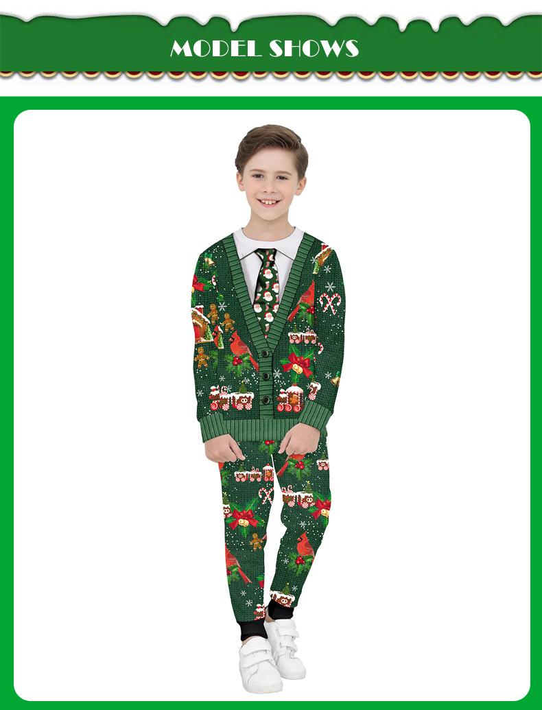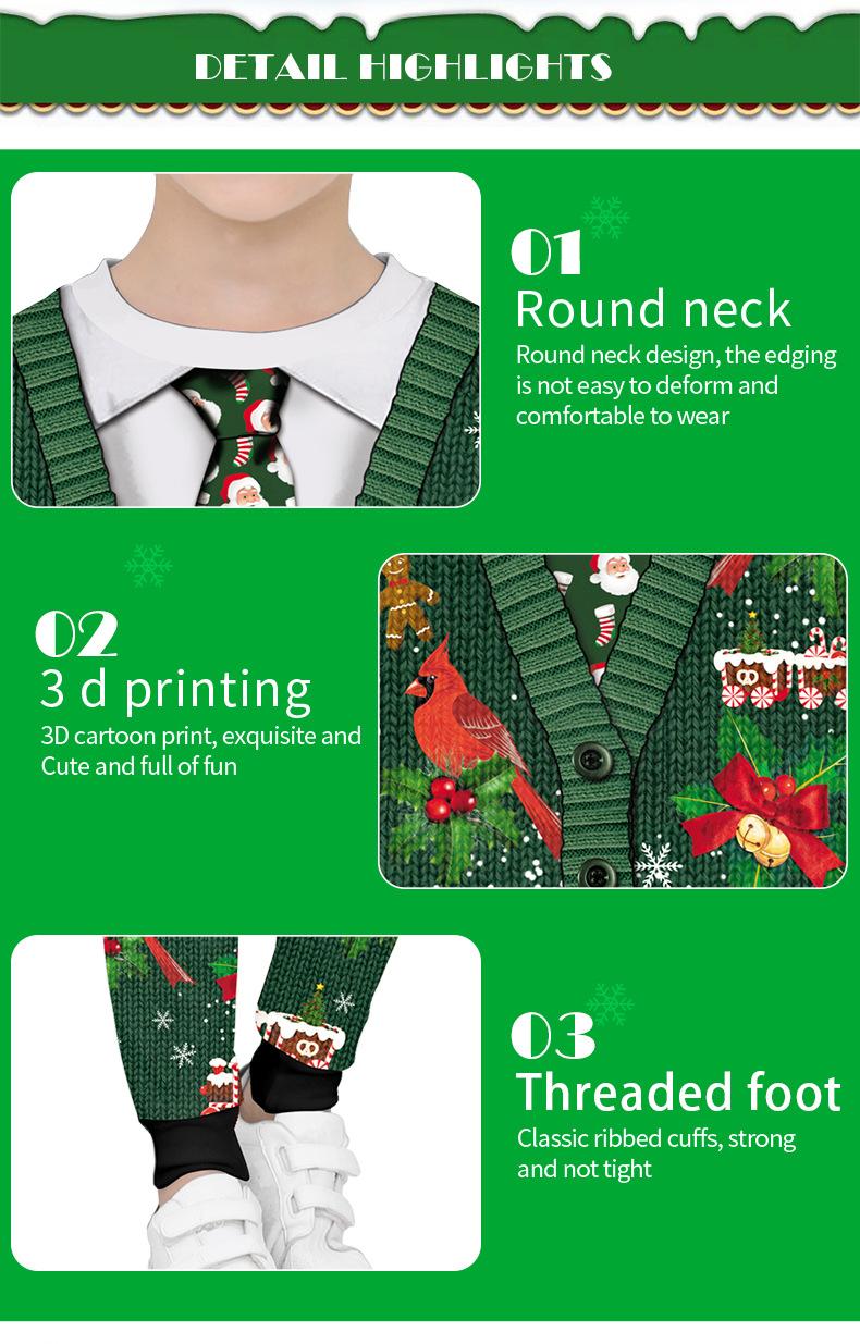 Serie Navideña 2024 Nuevo Producto Traje 3D Impresión Digital Cómoda Sudadera de Cuello Redondo y Pantalones Deportivos Conjunto de Dos Piezas para Niños