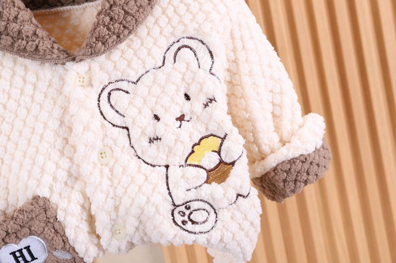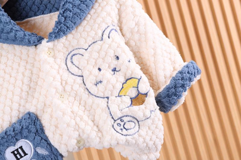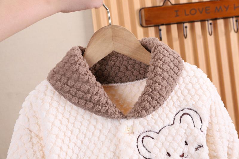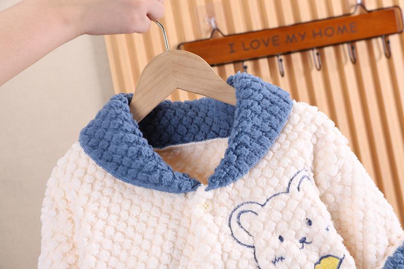 Ropa divertida para niños, pijamas gruesos y cálidos para niños, ropa de invierno para el hogar con dibujos animados para niños, traje de polar coral