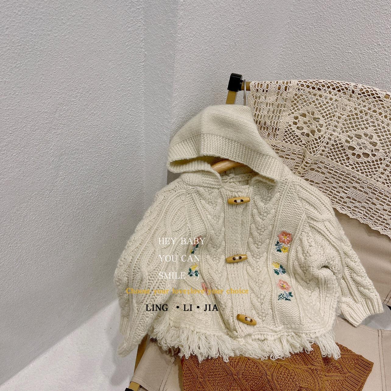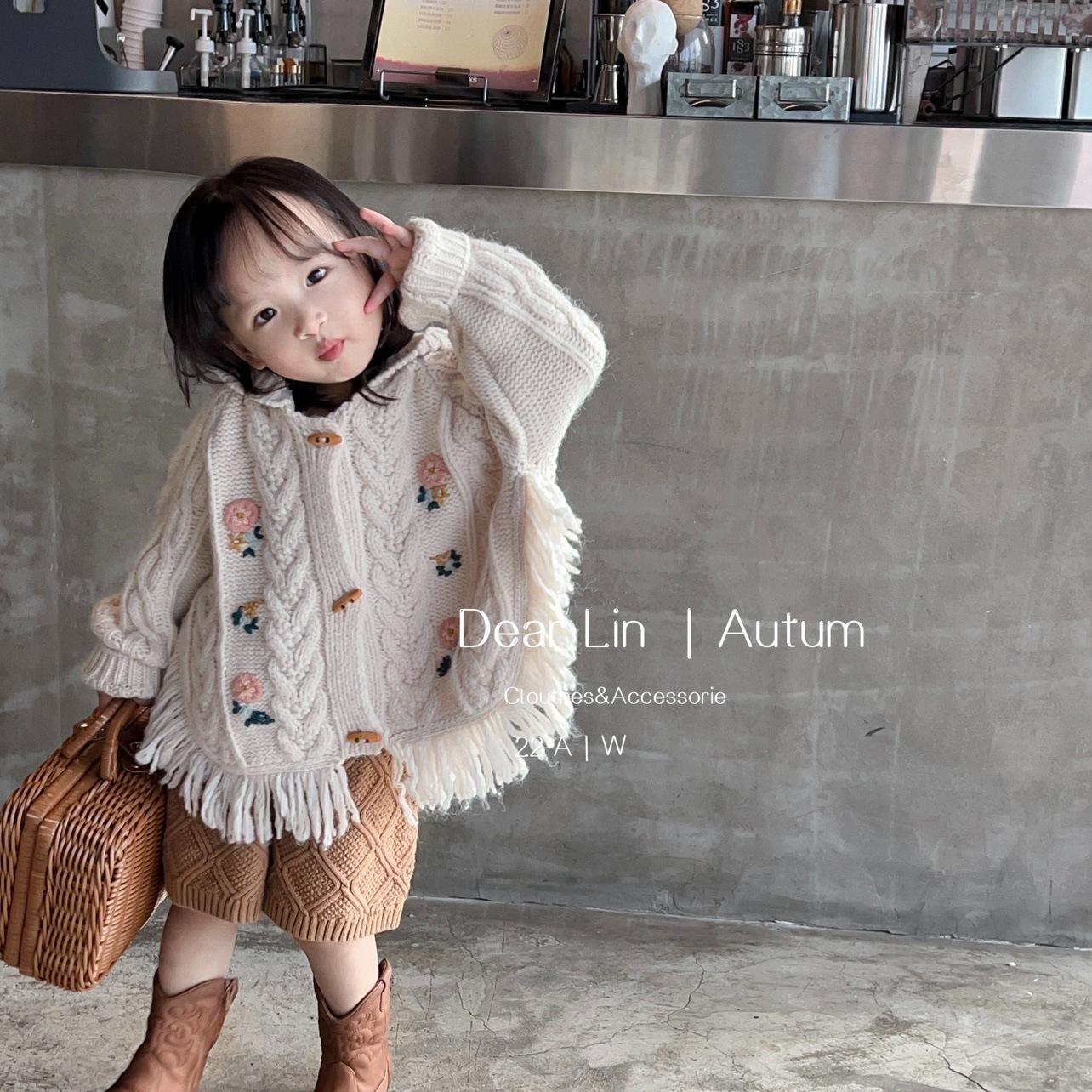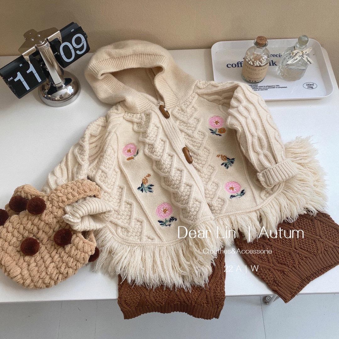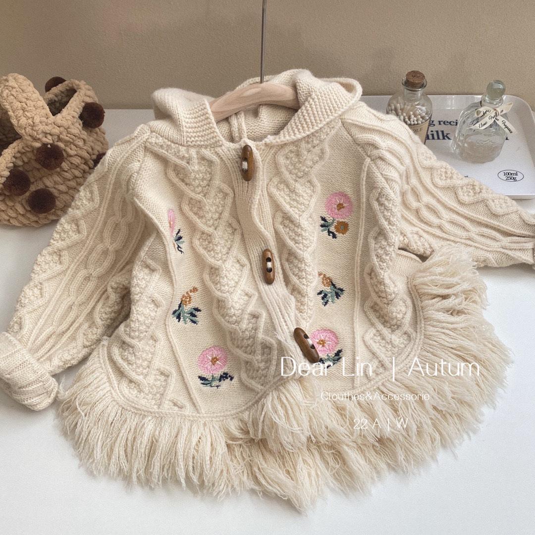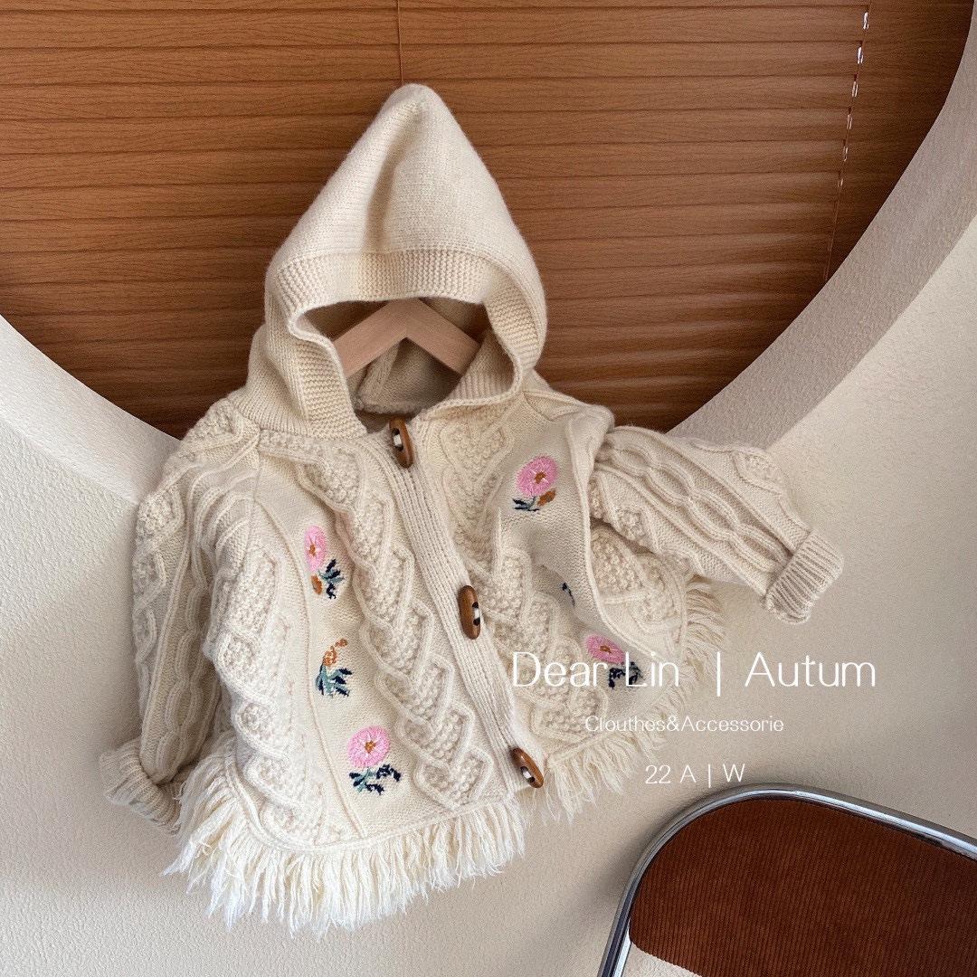 Ropa de Otoño para Niñas: Cárdigan de Punto Bordado, Suéter Capa para Bebé, Estilo Trendy