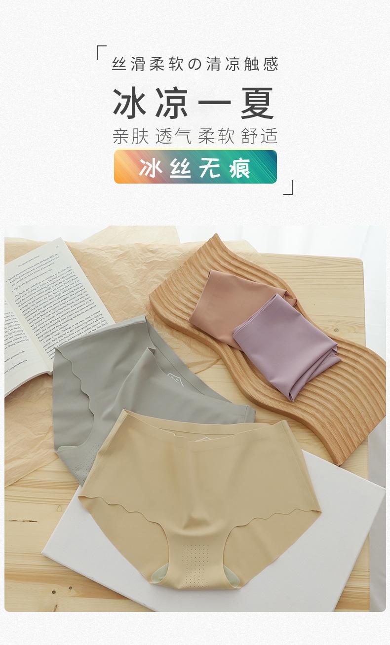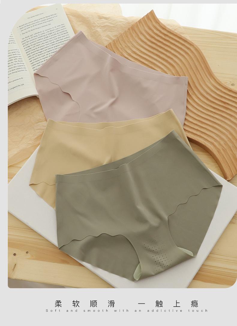 Color sólido Seda de Hielo sin costuras parche cómodo de una pieza transpirable agujero encaje Ajenjo fondo entrepierna cintura media calzones para mujer