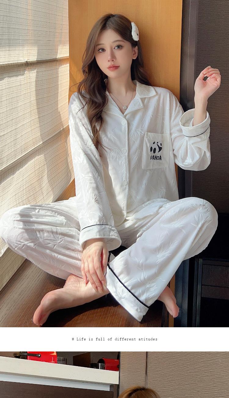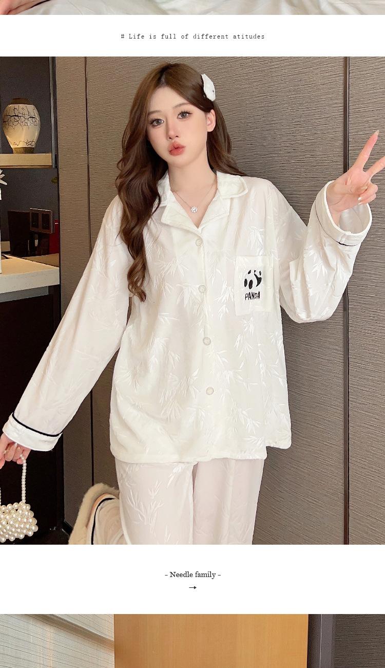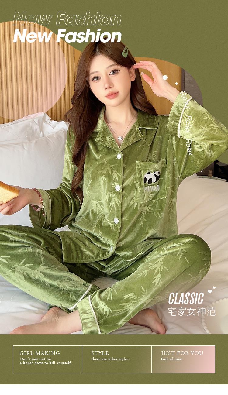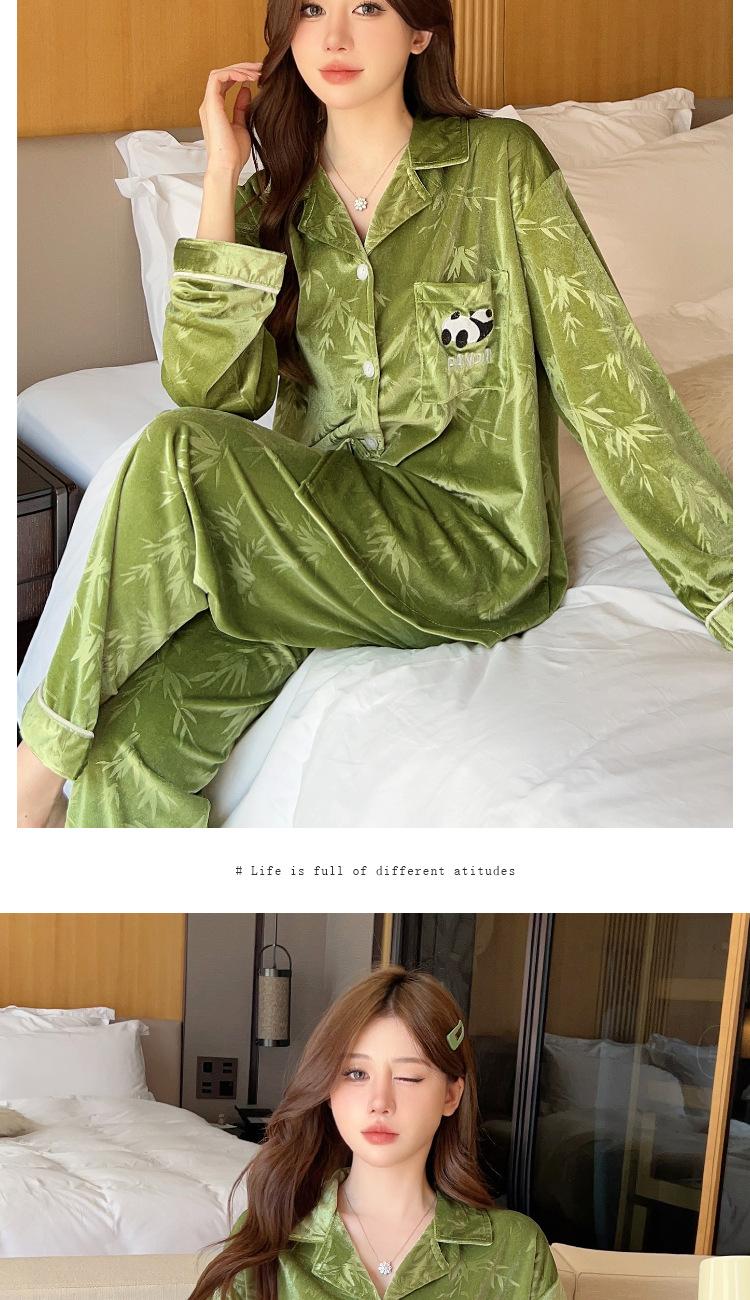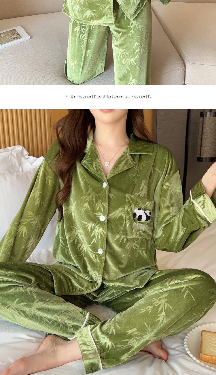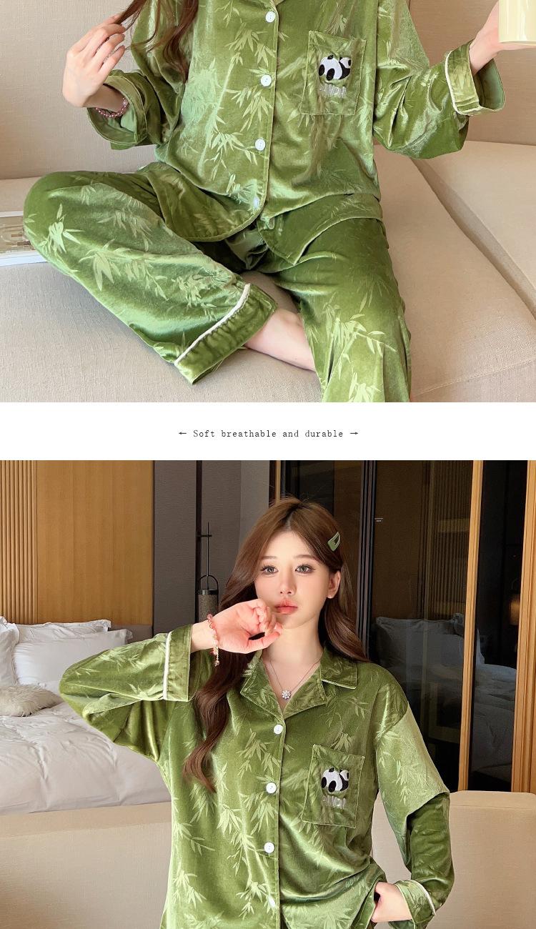 Pijama Panda Bambú Verde Lindo para Mujer Otoño e Invierno Manga Larga Nuevo Dibujo Animado Dulce Ropa para el Hogar traje Tiro Venta al por Mayor