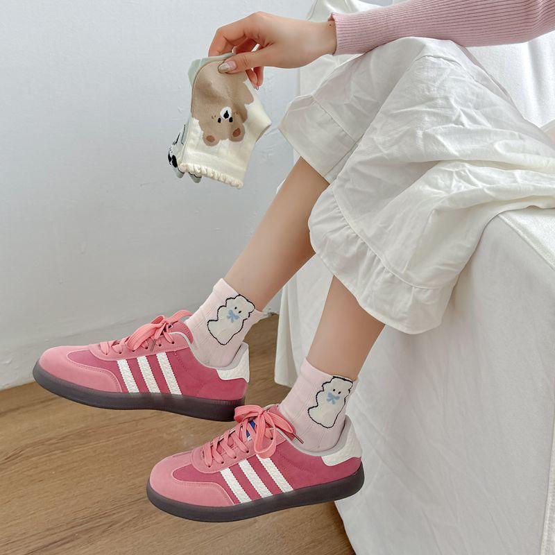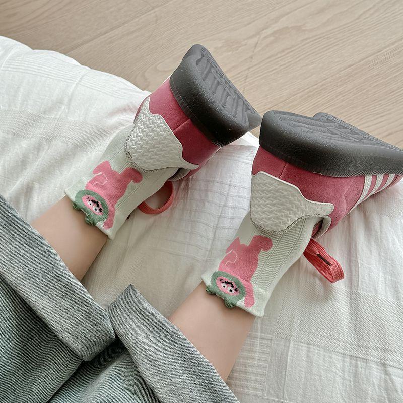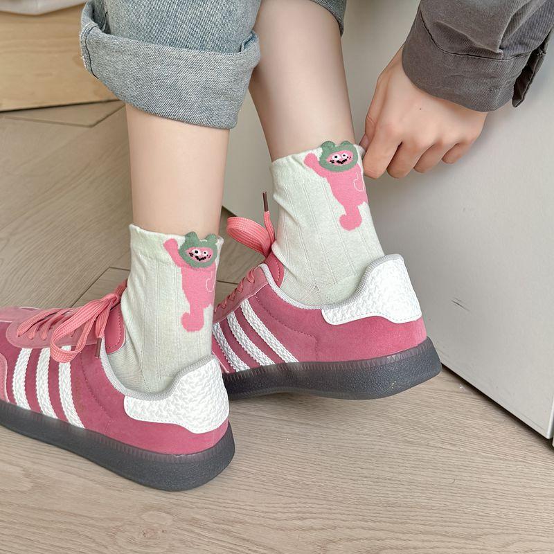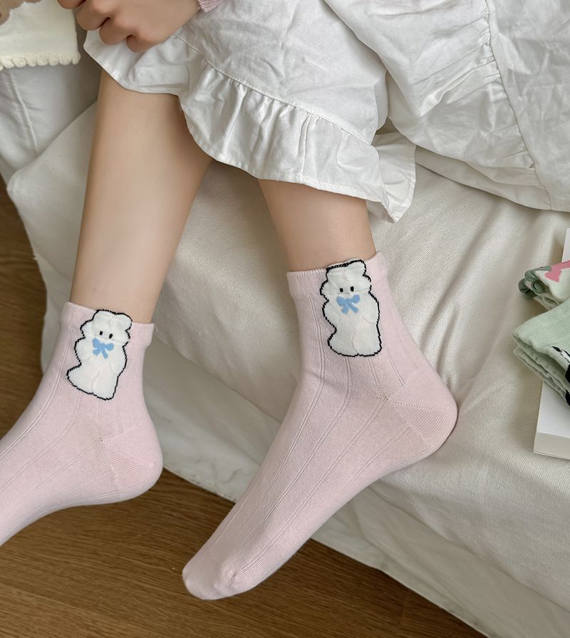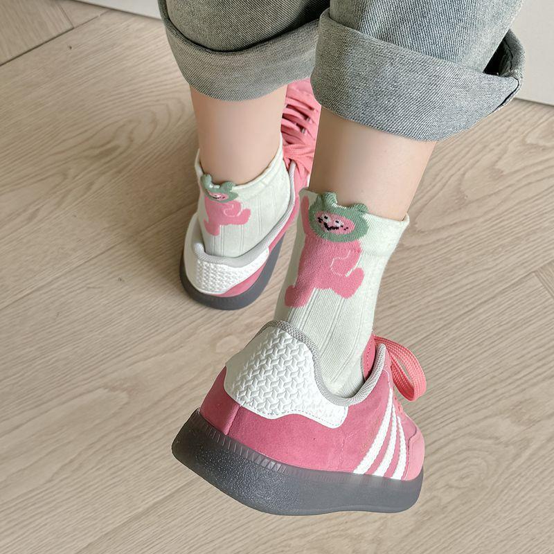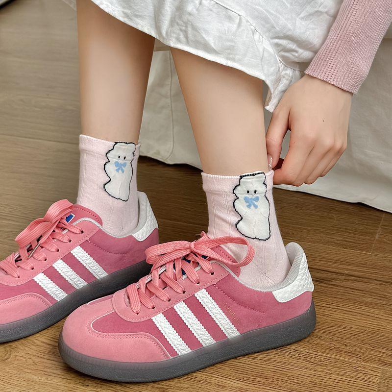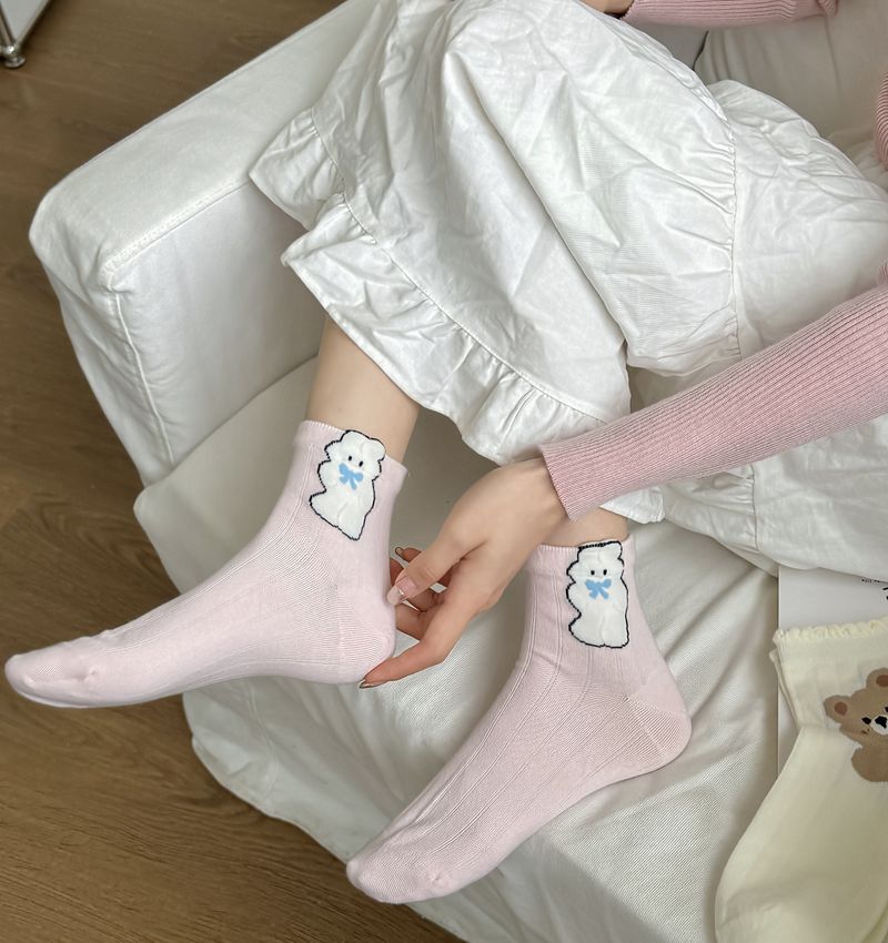 Primavera y Verano Nuevos Calcetines Cortos de Algodón con Oso de Dibujos Animados Estilo Coreano para Mujer Combinan con Todo Preppy Girl Calcetines de Encaje al Por Mayor