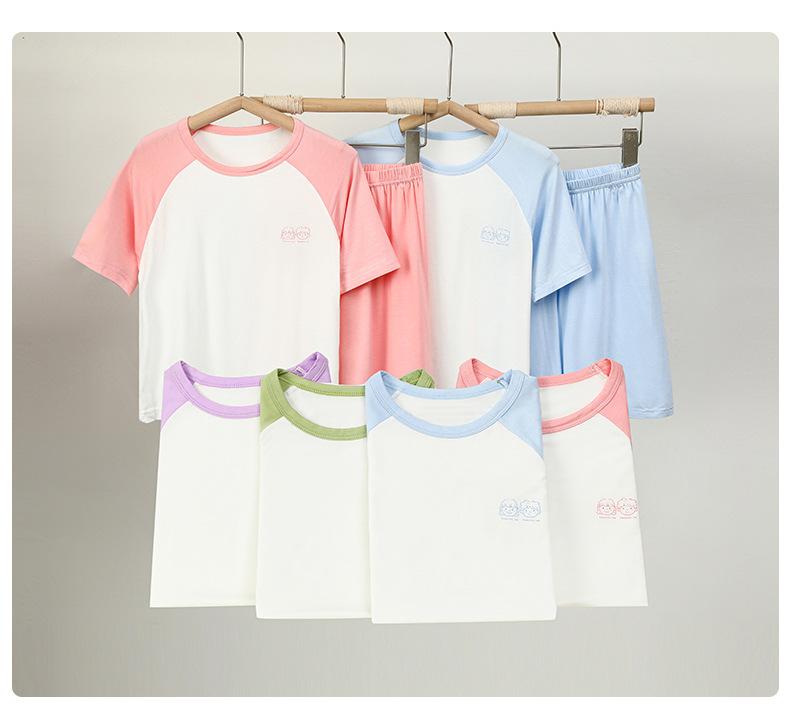 Pijama Modal para Niños Traje de Manga Corta para Niños Ropa para el Hogar para Niñas Seda de Hielo Verano Ropa para Aire Acondicionado para Niños Grandes y Niños