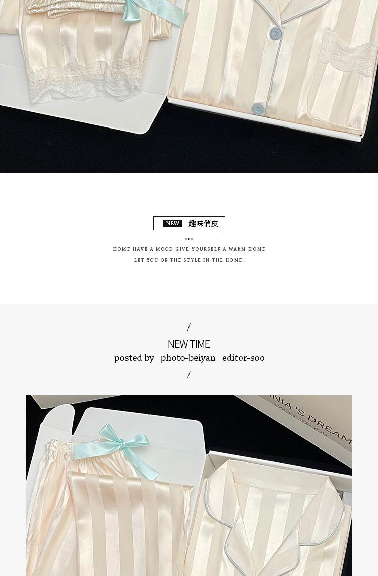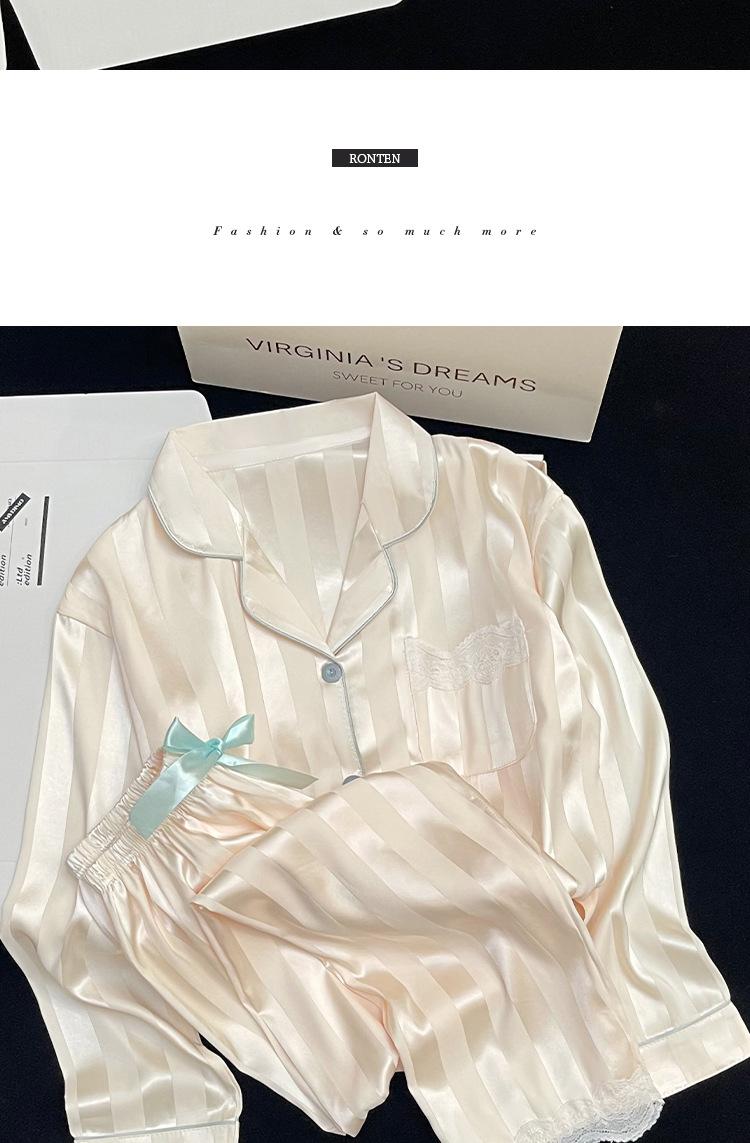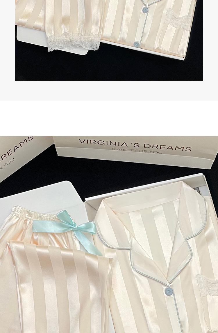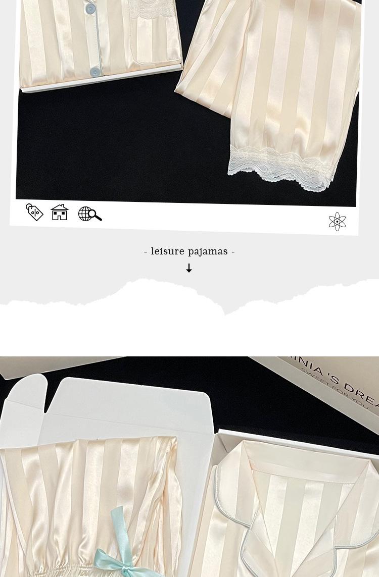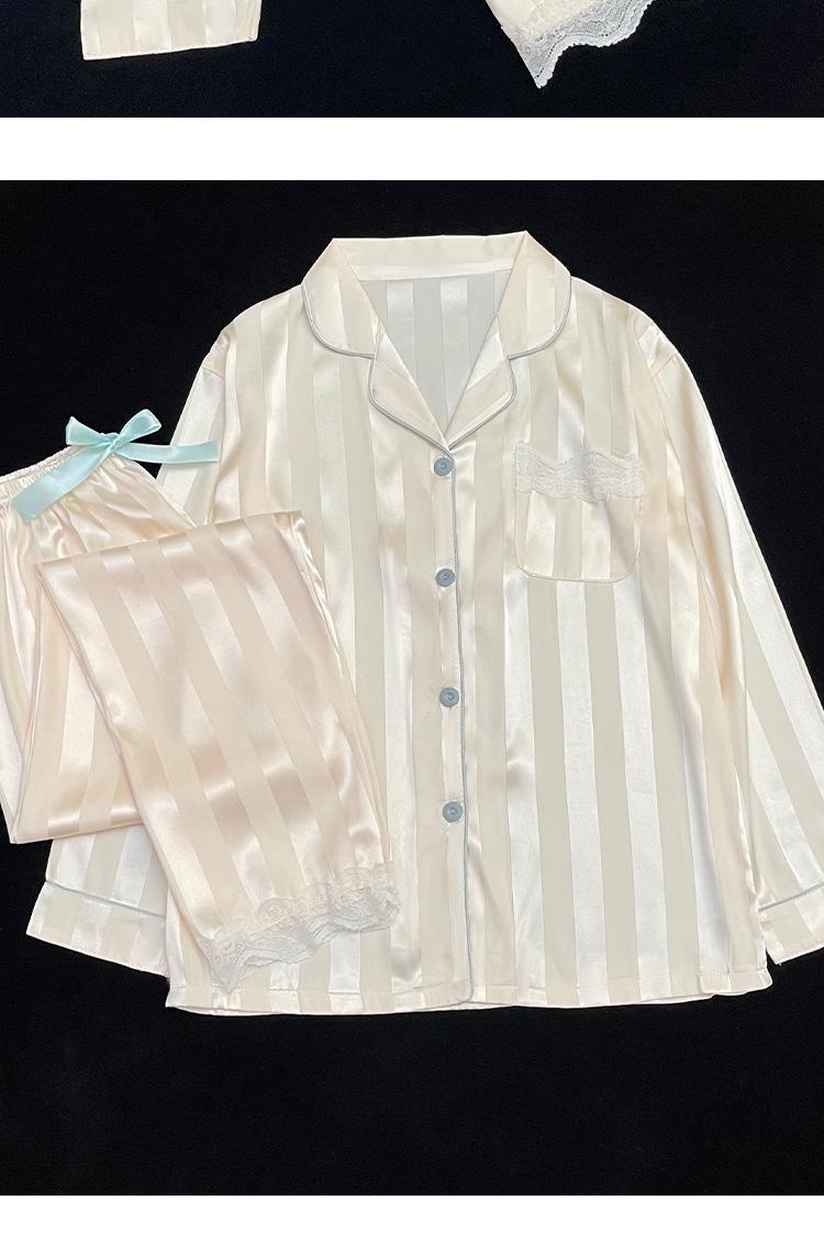Pijamas sencillos e informales a rayas de Internet, populares en otoño, de seda helada, de manga larga, de encaje para mujer, ropa para el hogar, venta al por mayor
