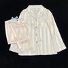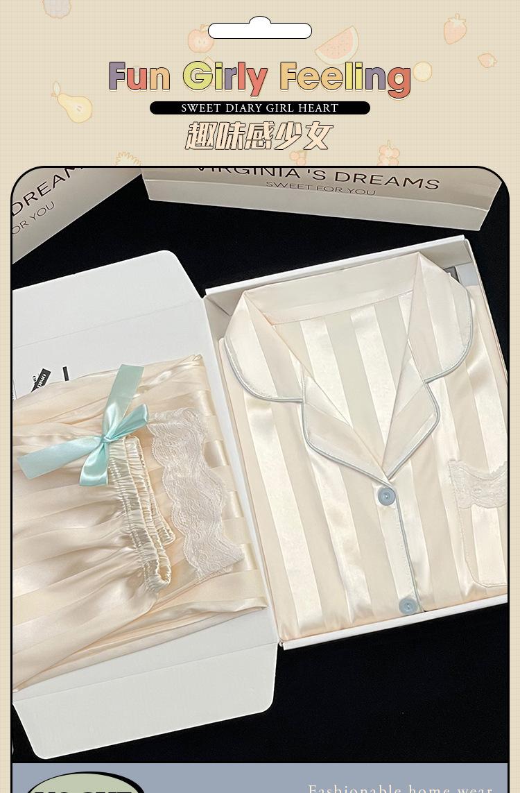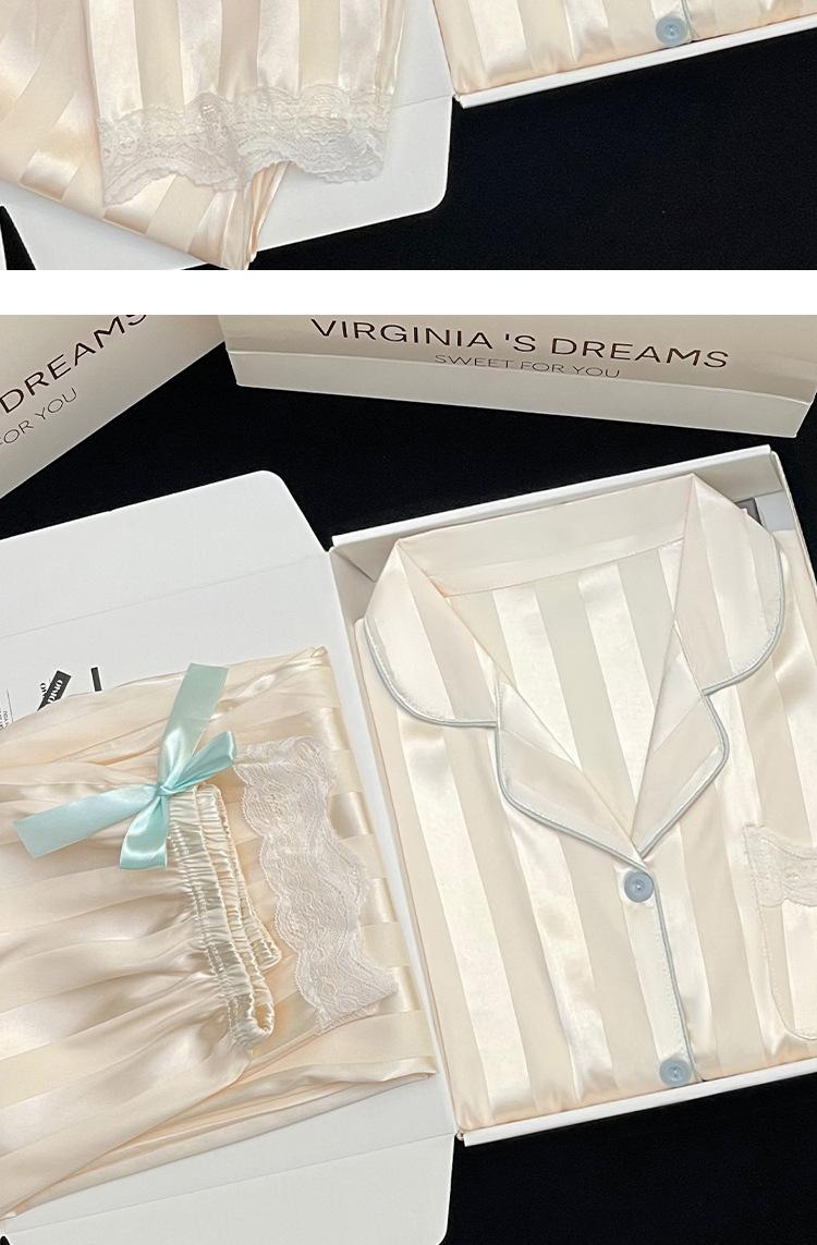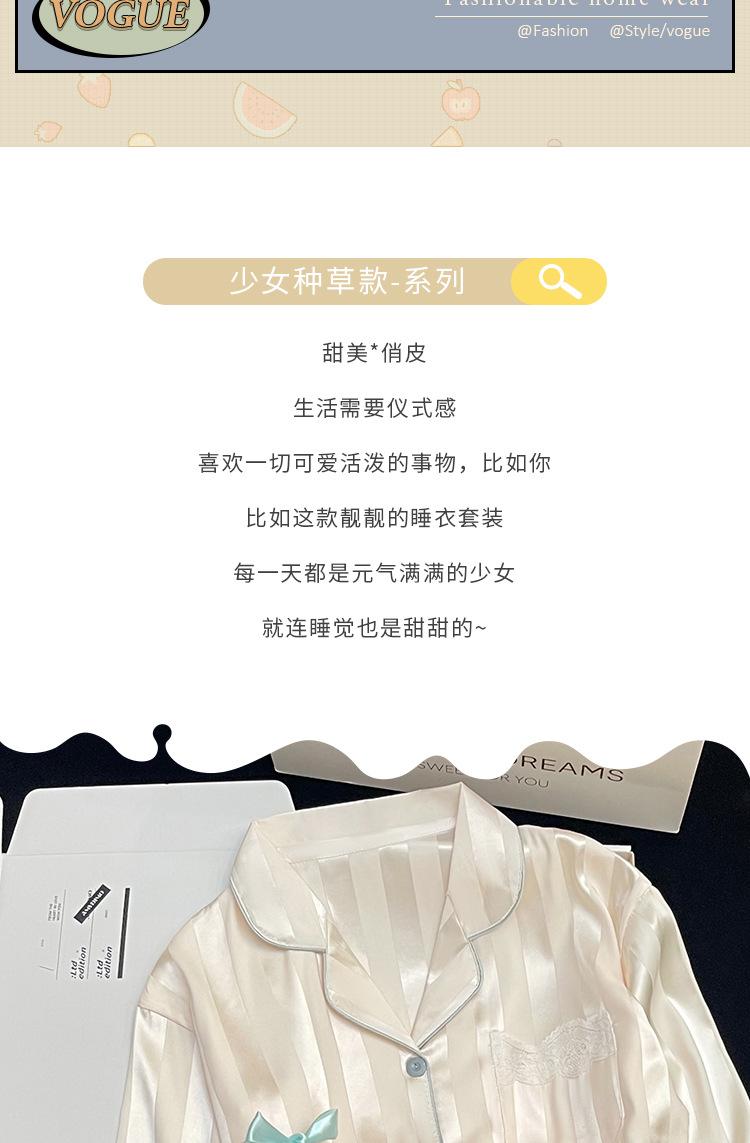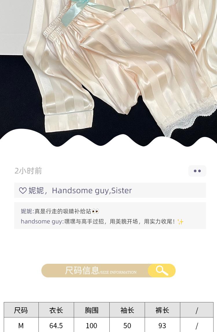 Pijamas sencillos e informales a rayas de Internet, populares en otoño, de seda helada, de manga larga, de encaje para mujer, ropa para el hogar, venta al por mayor