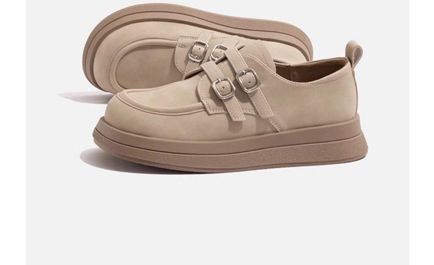 Mocasines de suela gruesa para mujer, primavera 2024, nuevos zapatos de cuero estilo preppy británico, zapatos retro sin cordones de cuero genuino