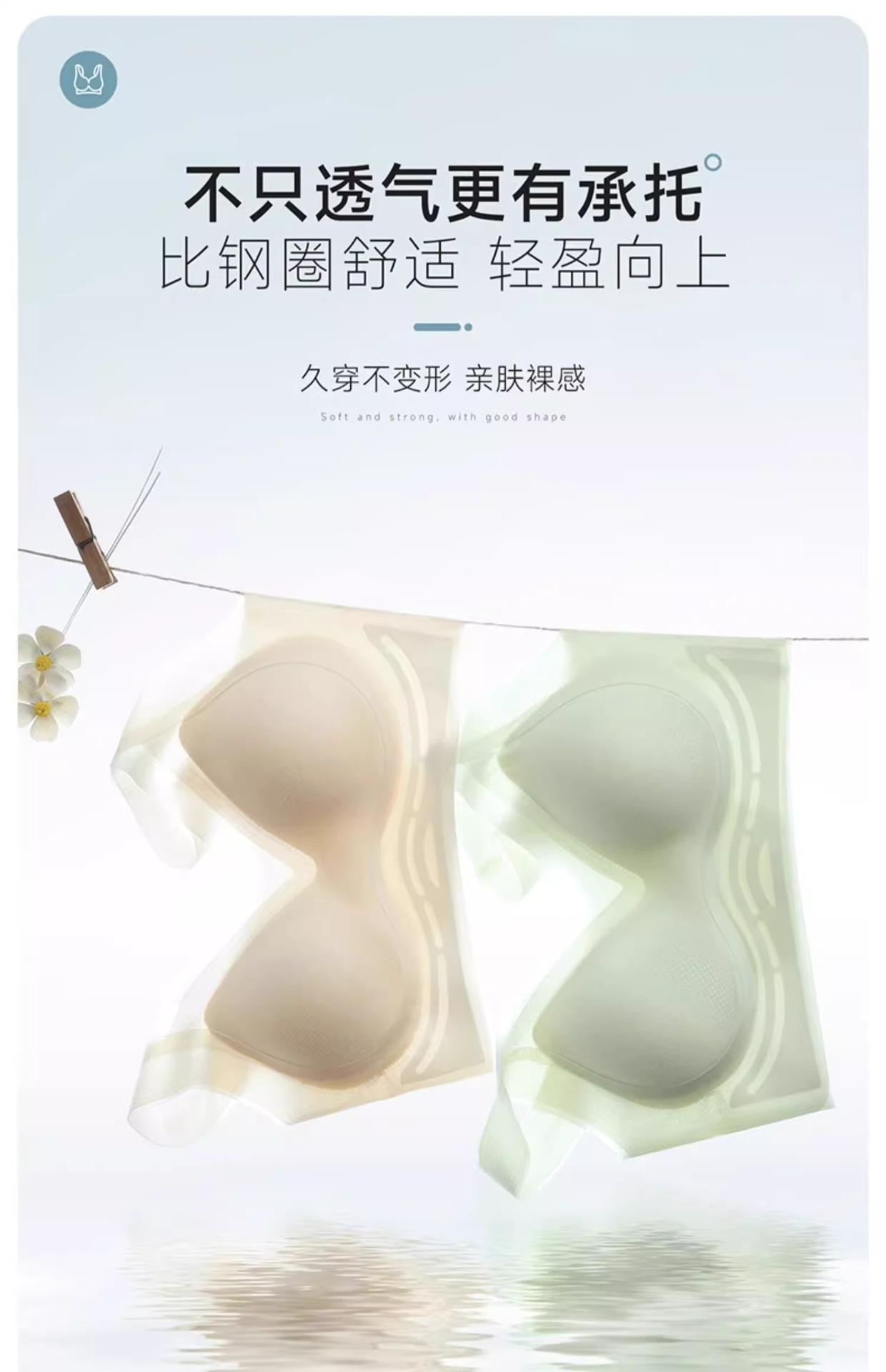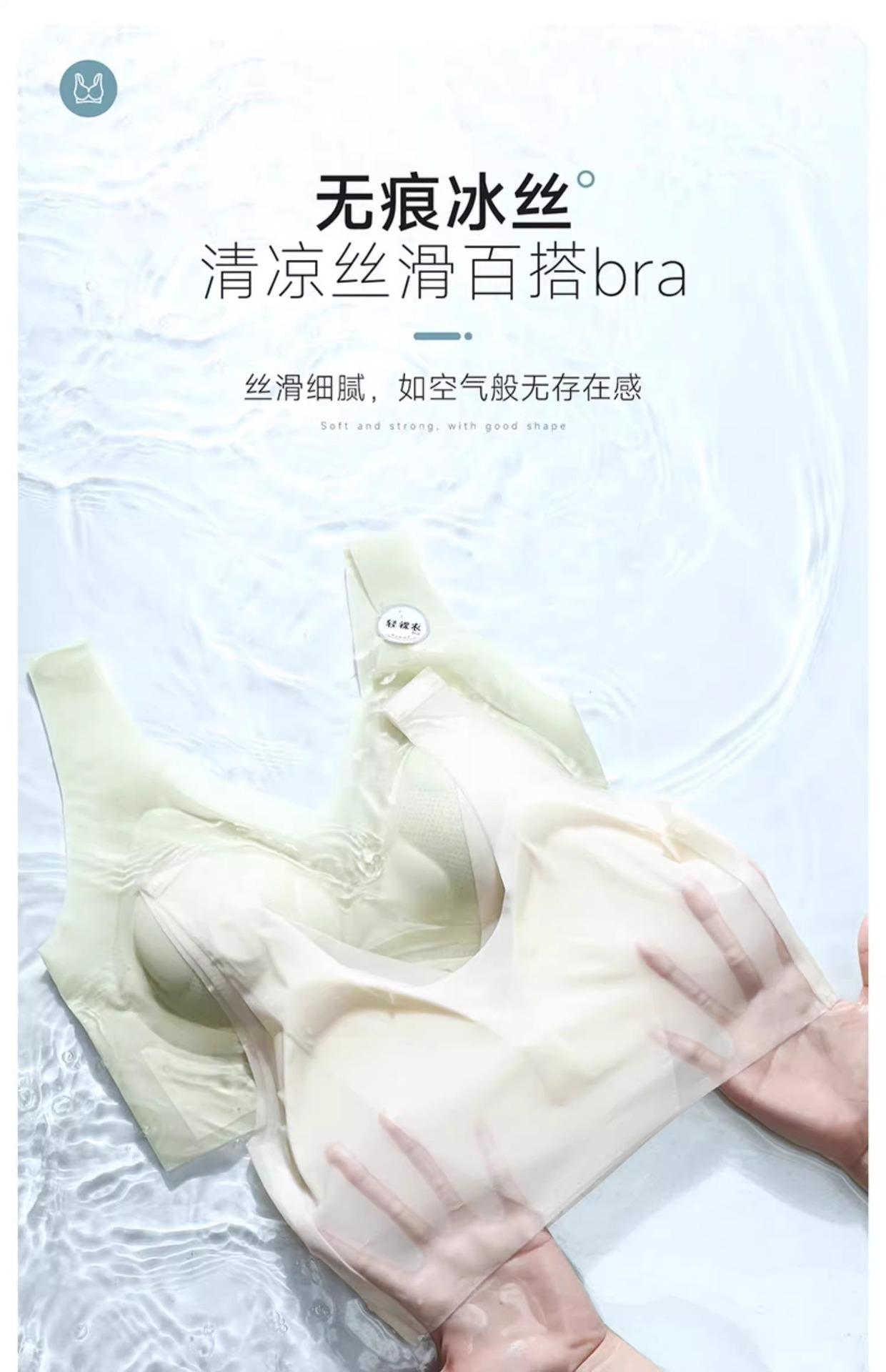 Ropa interior de seda de hielo ultrafina sin costuras con espalda hermosa para mujer, sin montura, con tirantes anchos, fruncida, cómoda, transpirable, de seda de hielo, sensación fresca, envoltura para el pecho para mujer