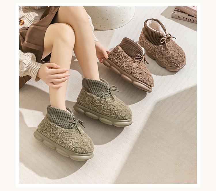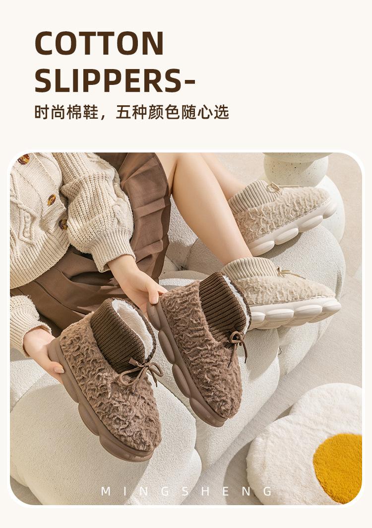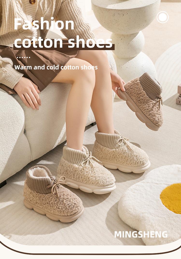 Pantuflas de algodón para mujer otoño e invierno celebridad de internet ins moda combinable cálidas forradas de vellón ropa exterior suela gruesa de EVA punta cerrada pantuflas de lana al por mayor