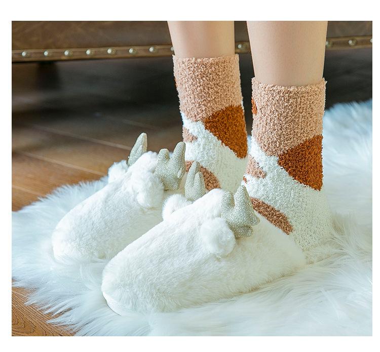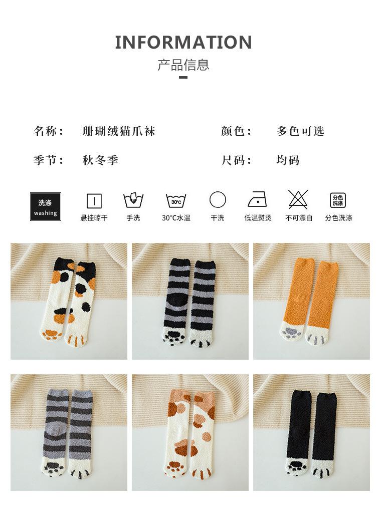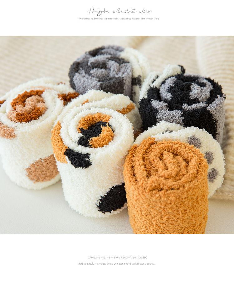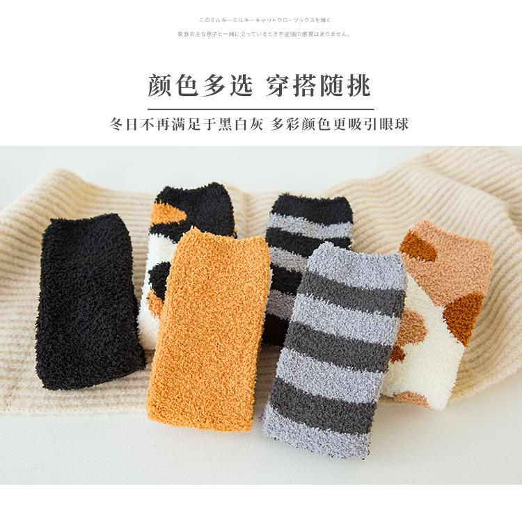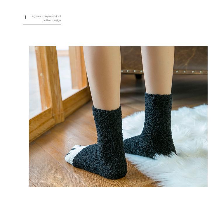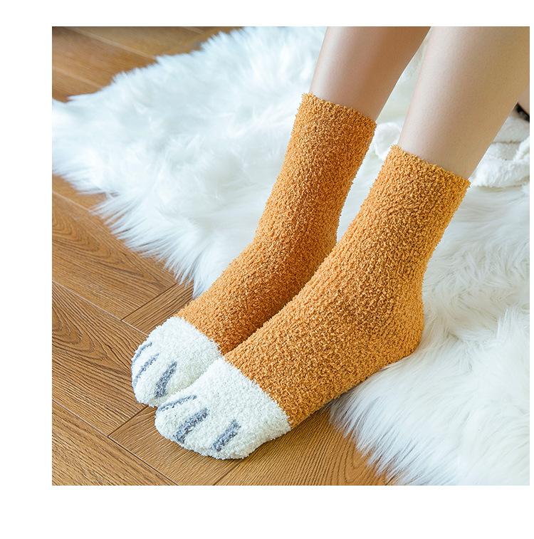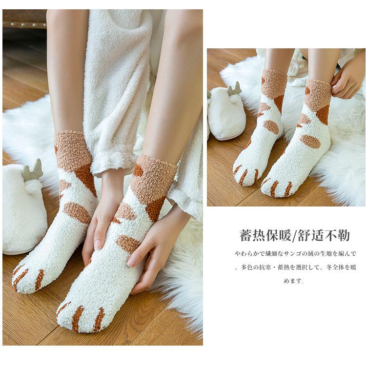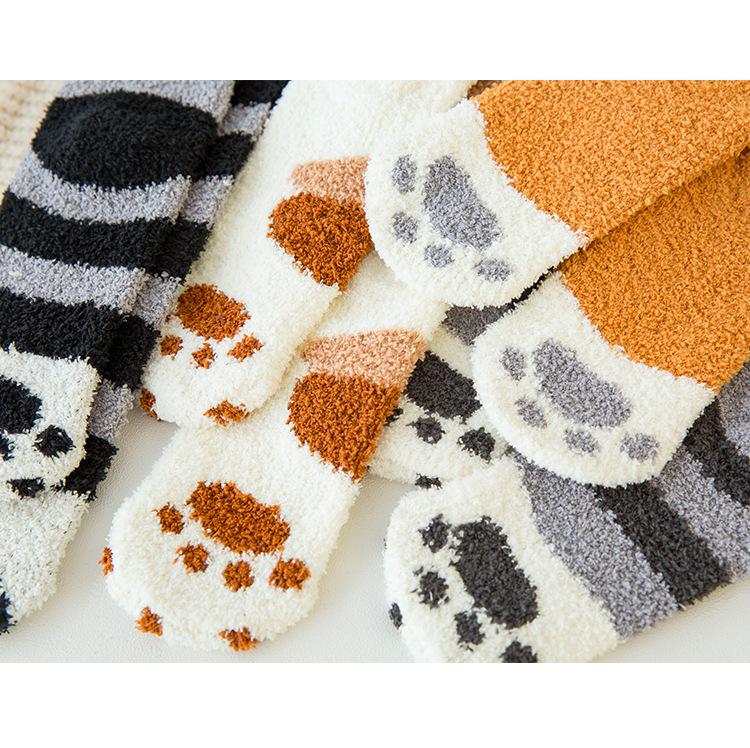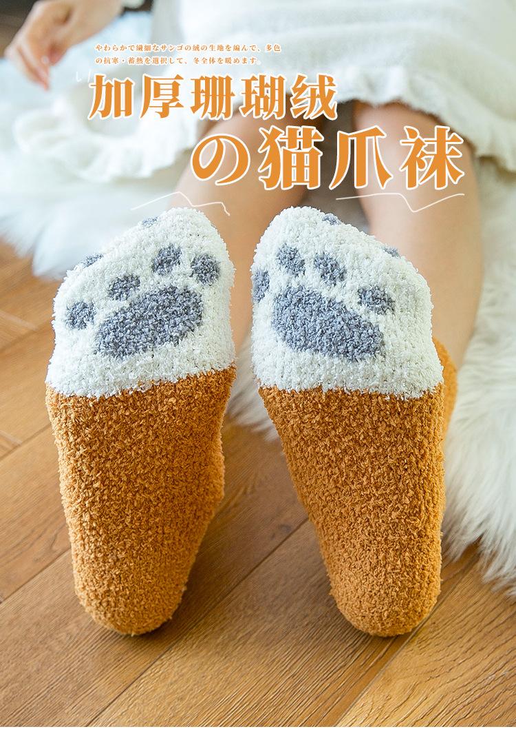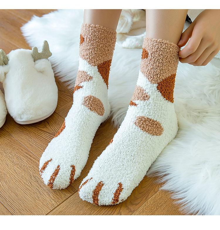 Calcetines de invierno nuevos de felpa de coral con dibujos de garra de gato, cálidos y gruesos, para dormir para adultos.