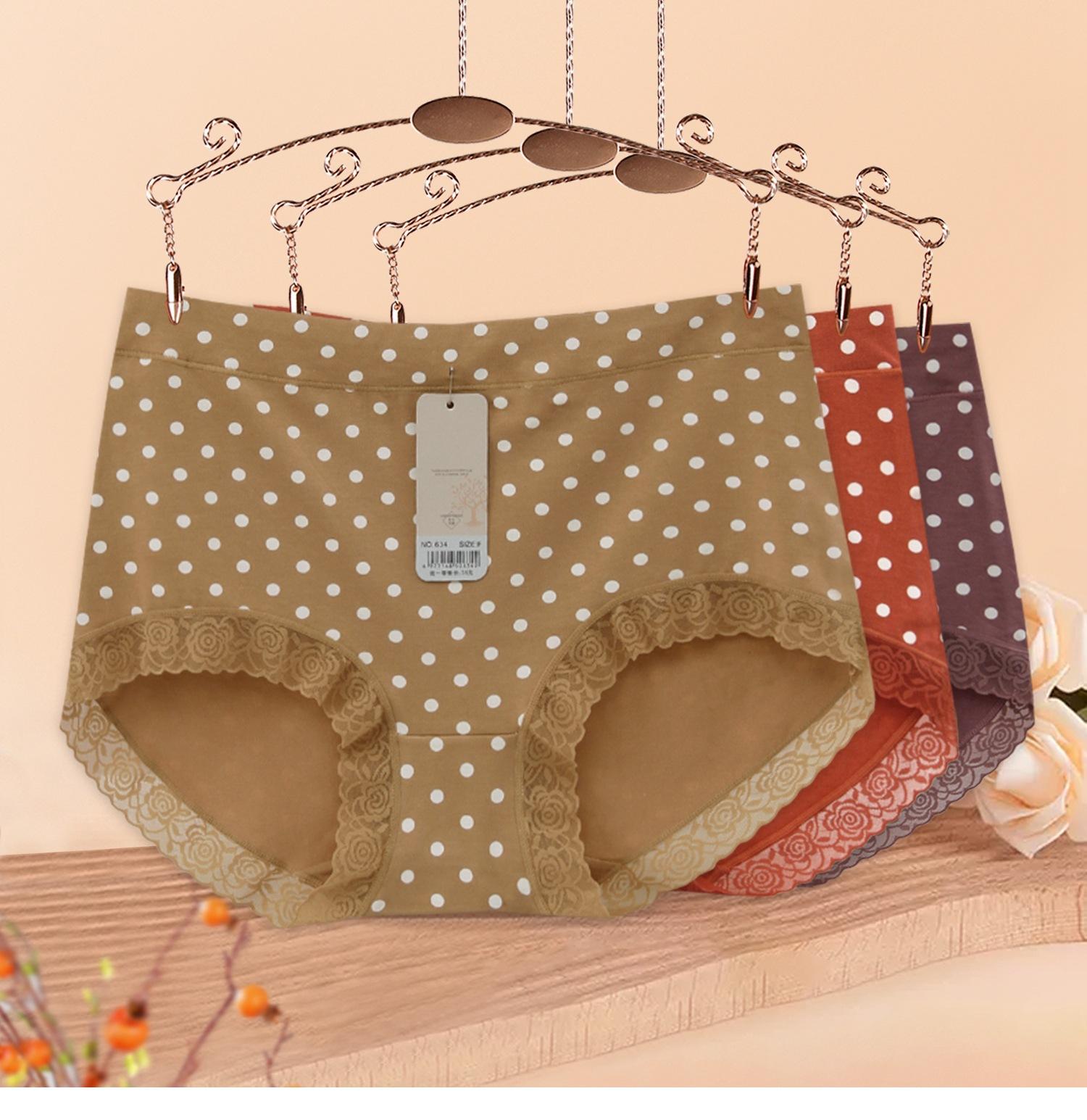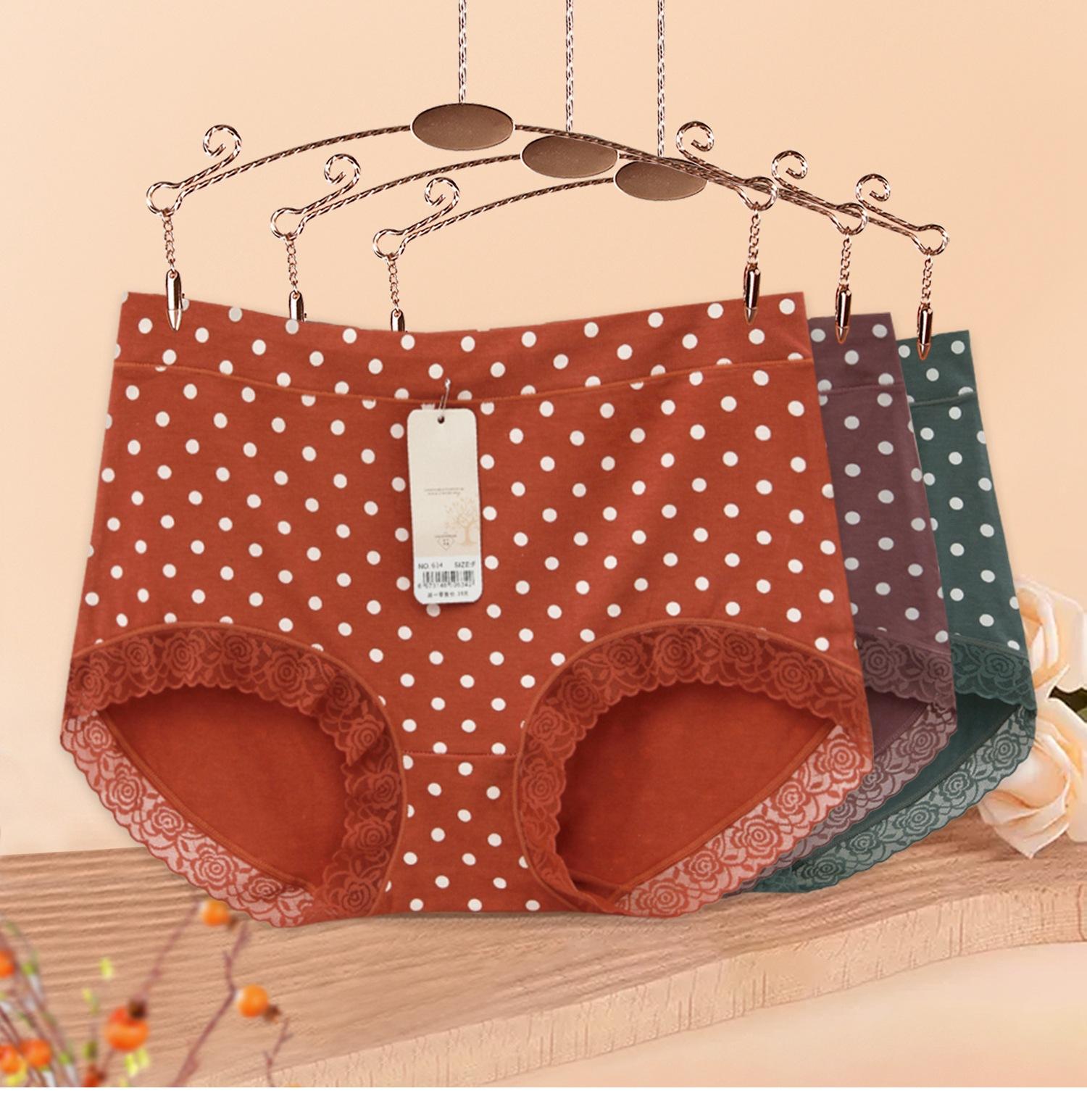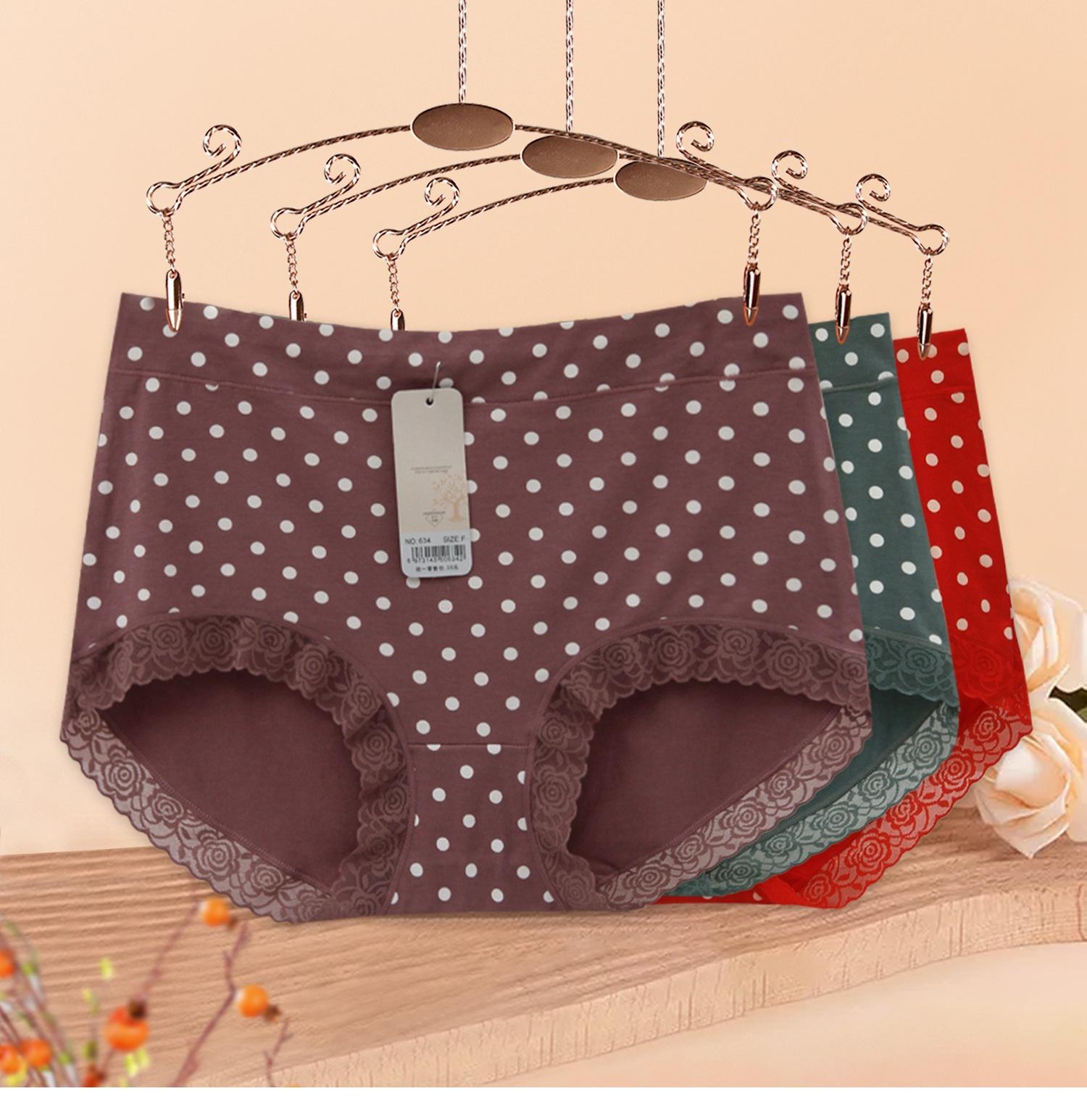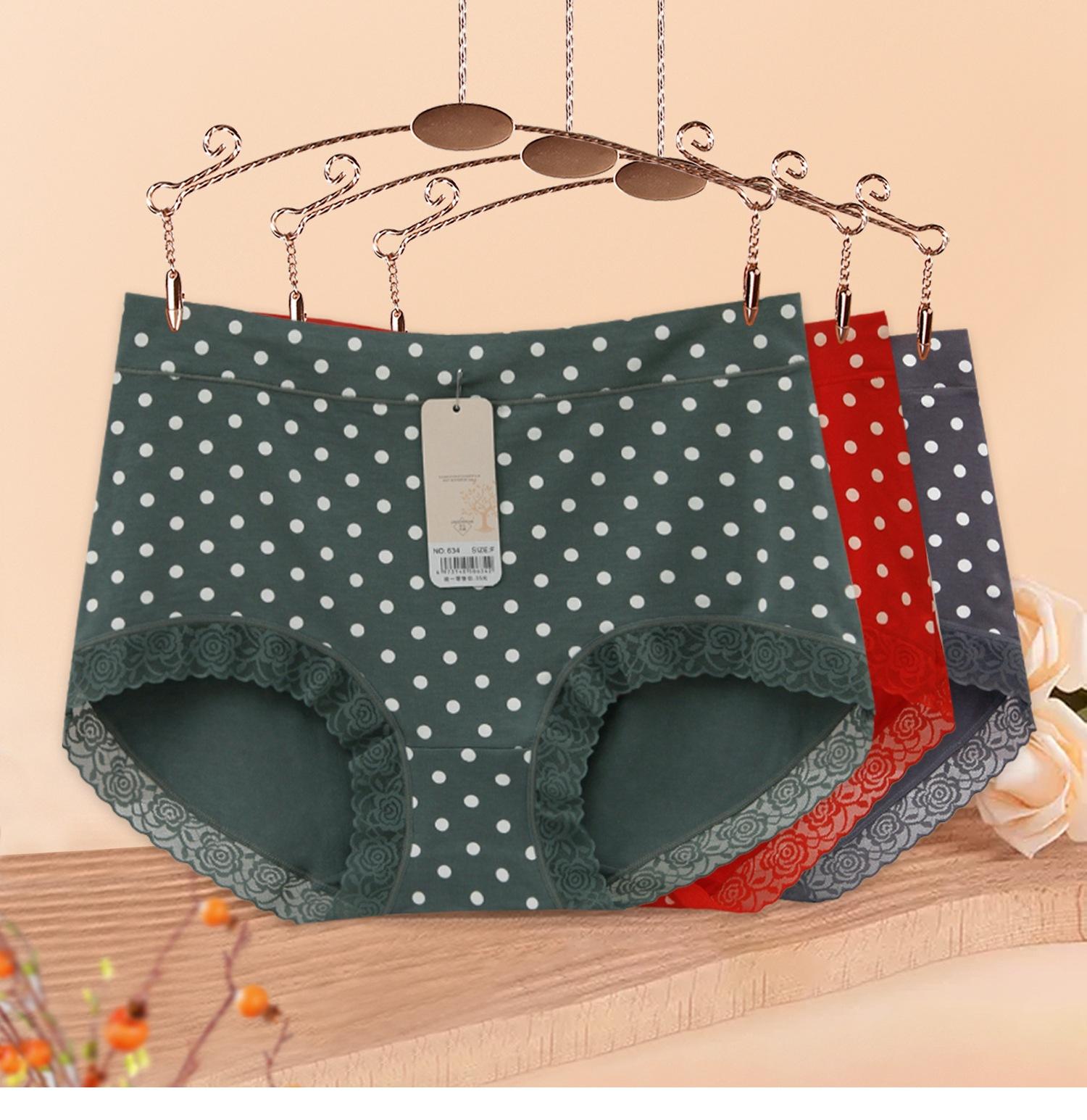 Ropa interior de algodón para mujer estilo pastoral, calzoncillos de tiro medio con estampado de lunares frescos, cómodos calzoncillos triangulares para niñas gorditas