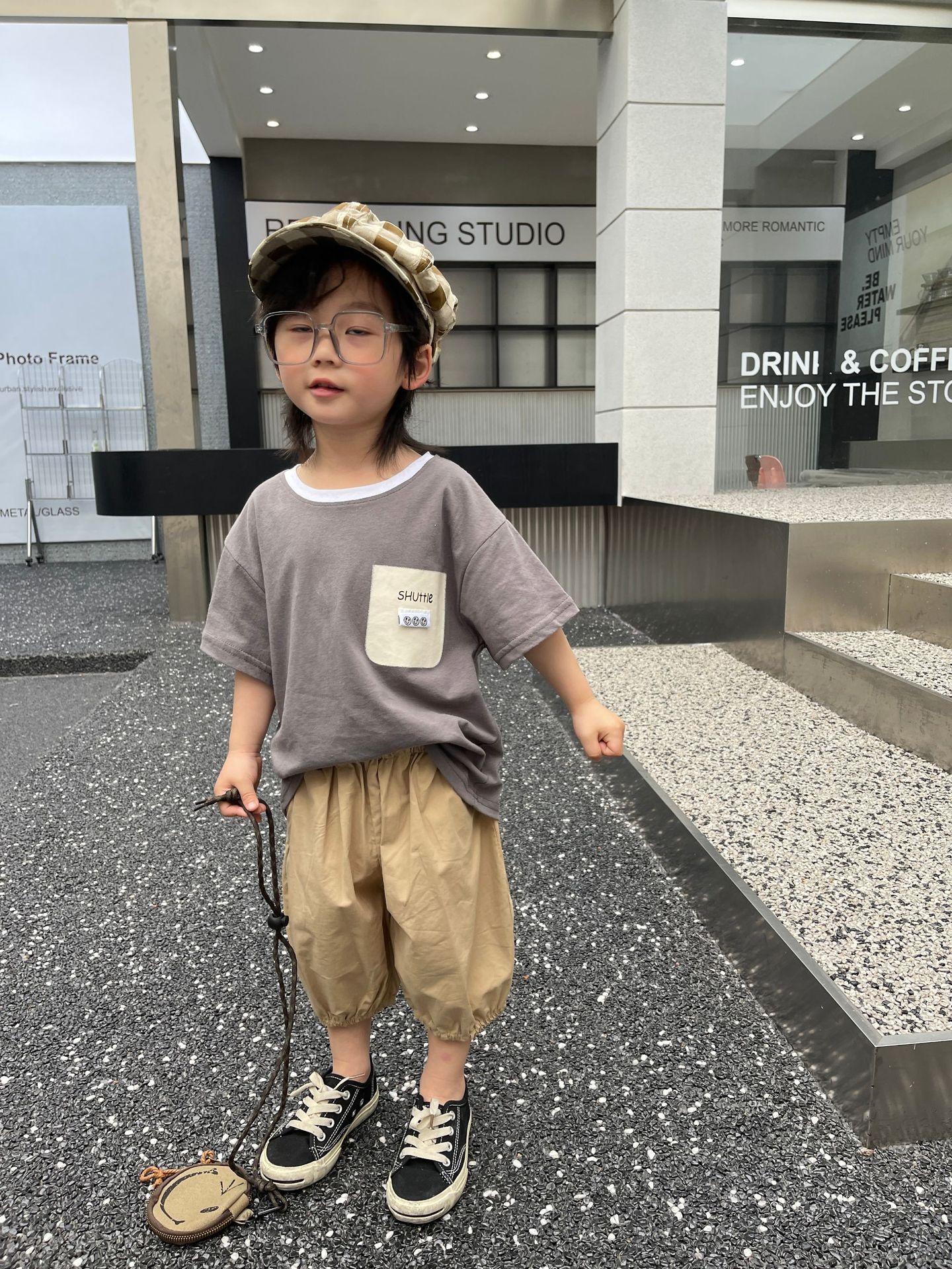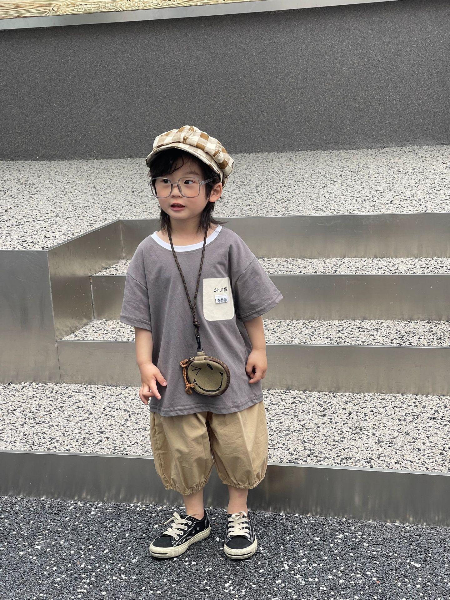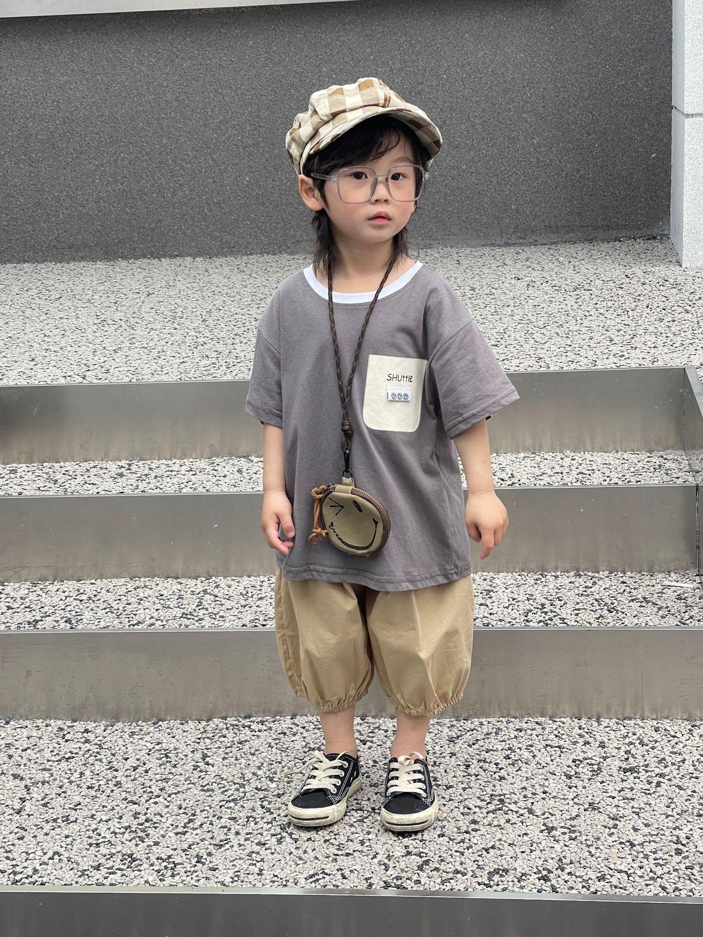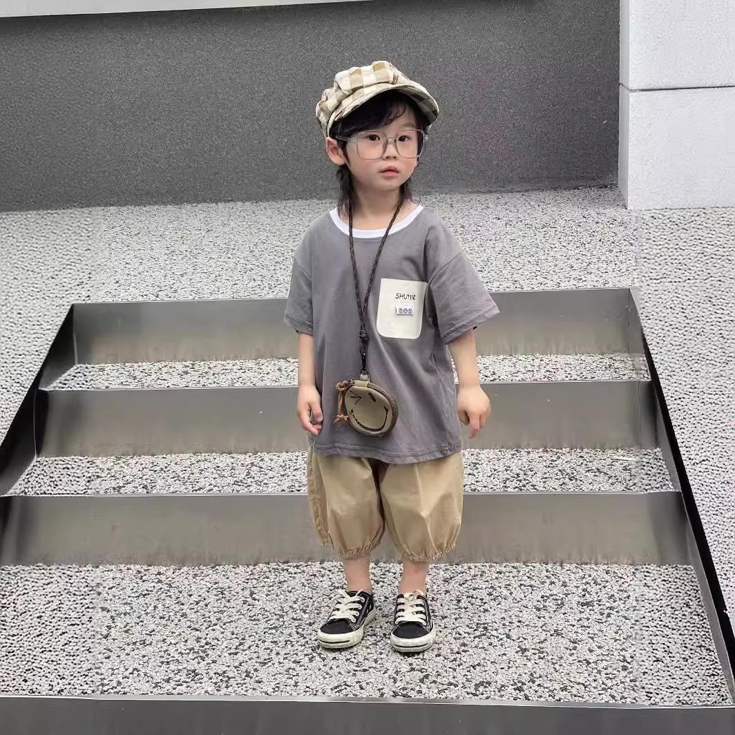 Camiseta de Verano para Niños Nuevo Estilo Coreano Niños y Niñas Algodón Pegatina Manga Corta Traje de Camiseta Ropa Infantil Occidental Holgada