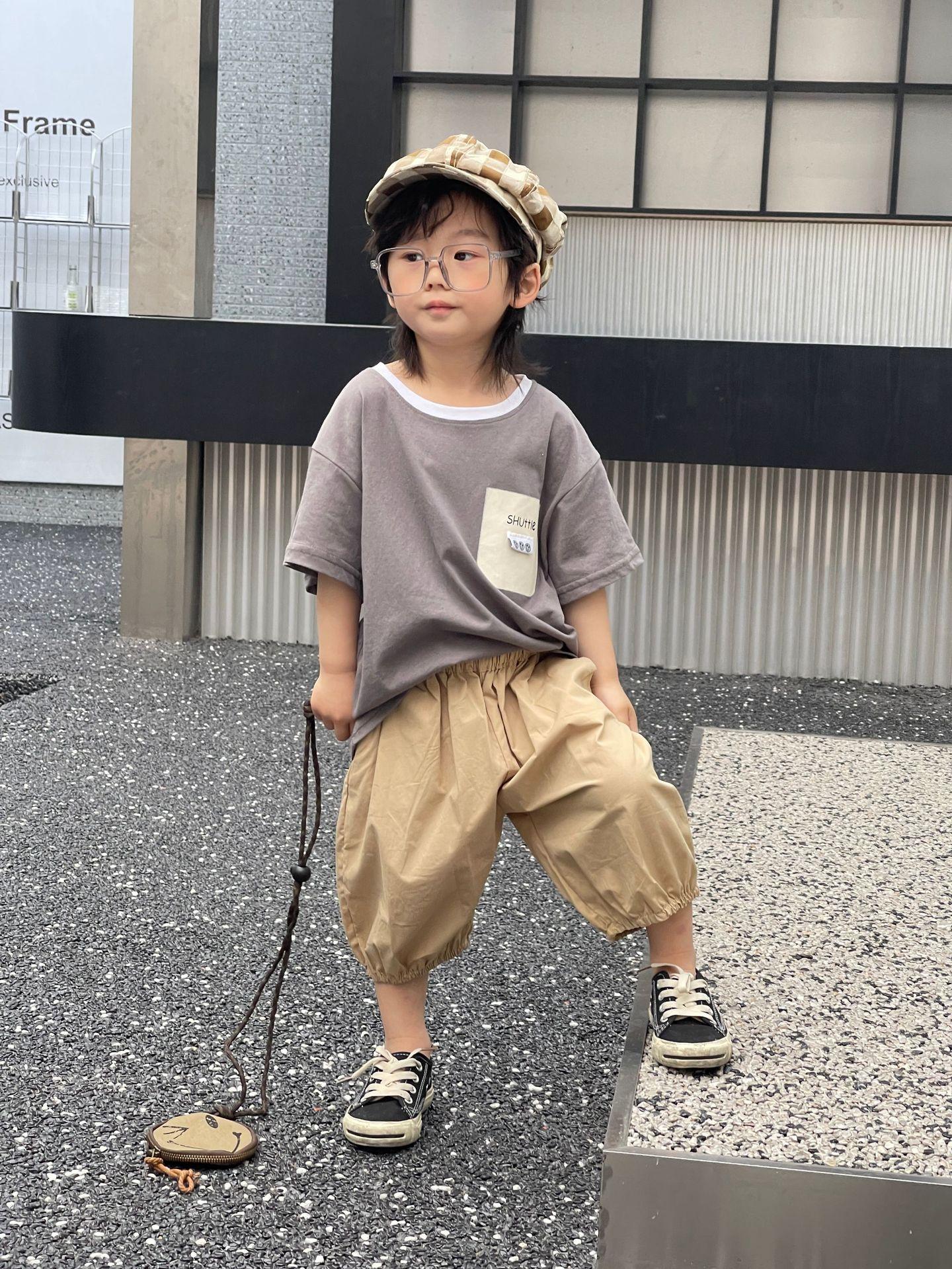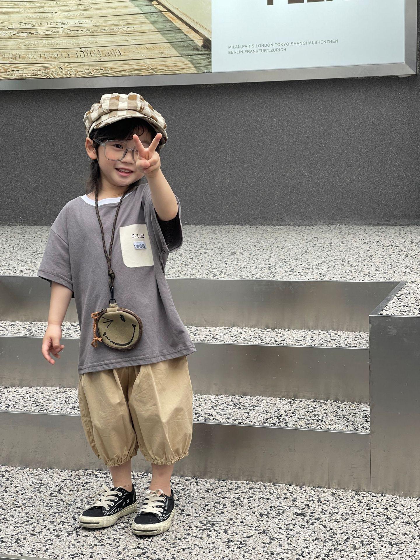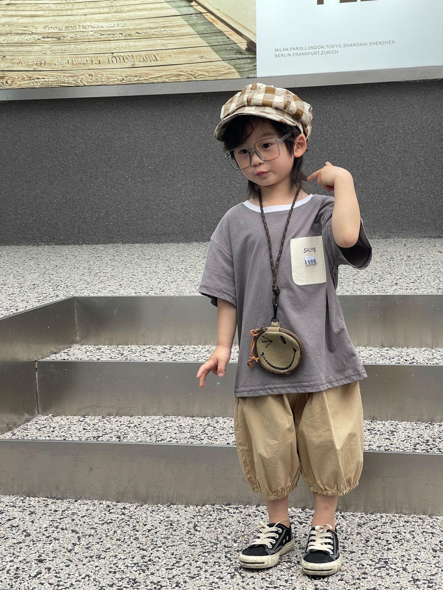 Camiseta de Verano para Niños Nuevo Estilo Coreano Niños y Niñas Algodón Pegatina Manga Corta Traje de Camiseta Ropa Infantil Occidental Holgada