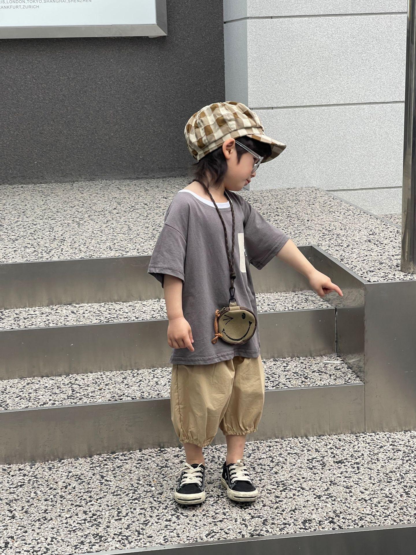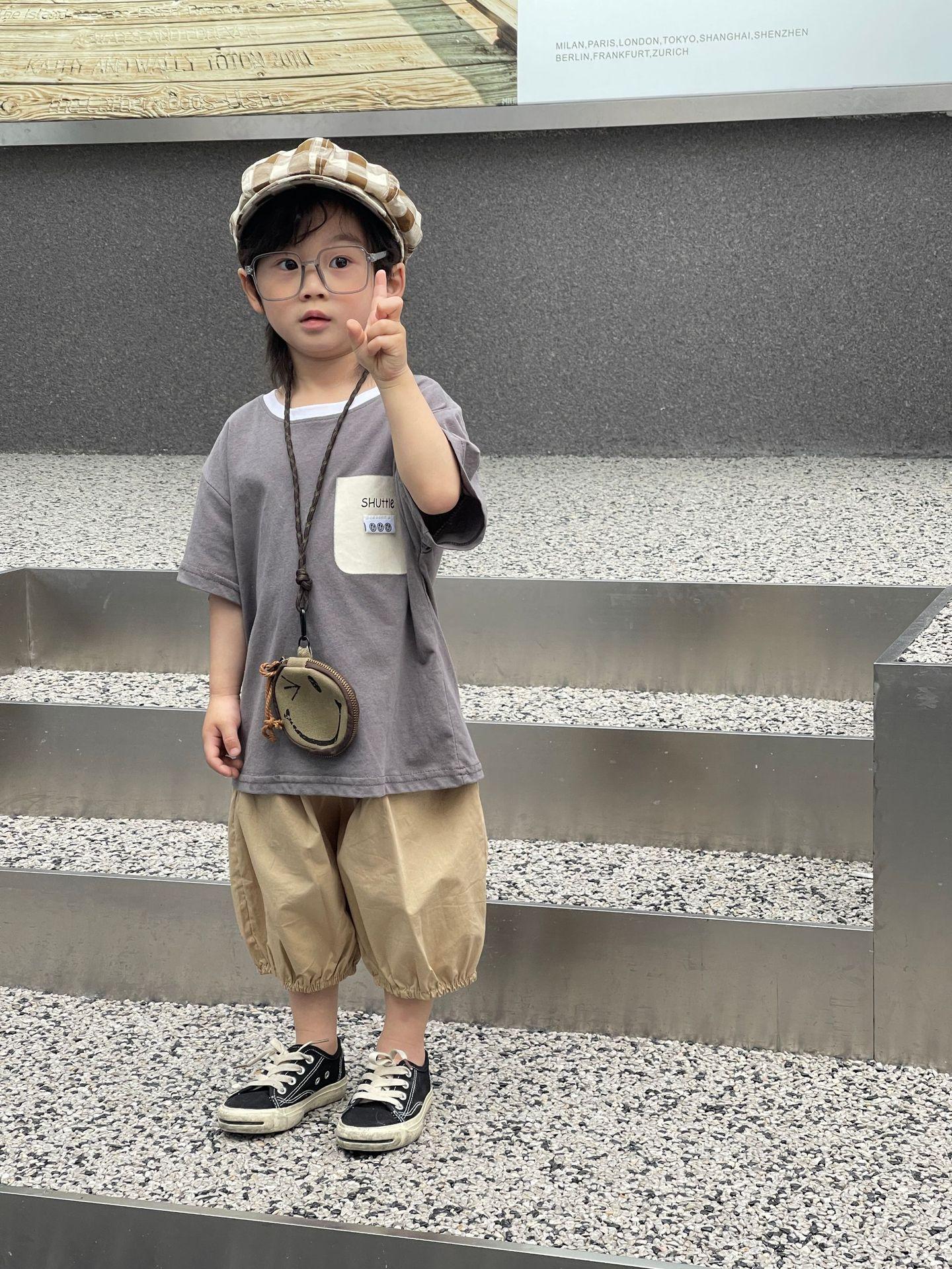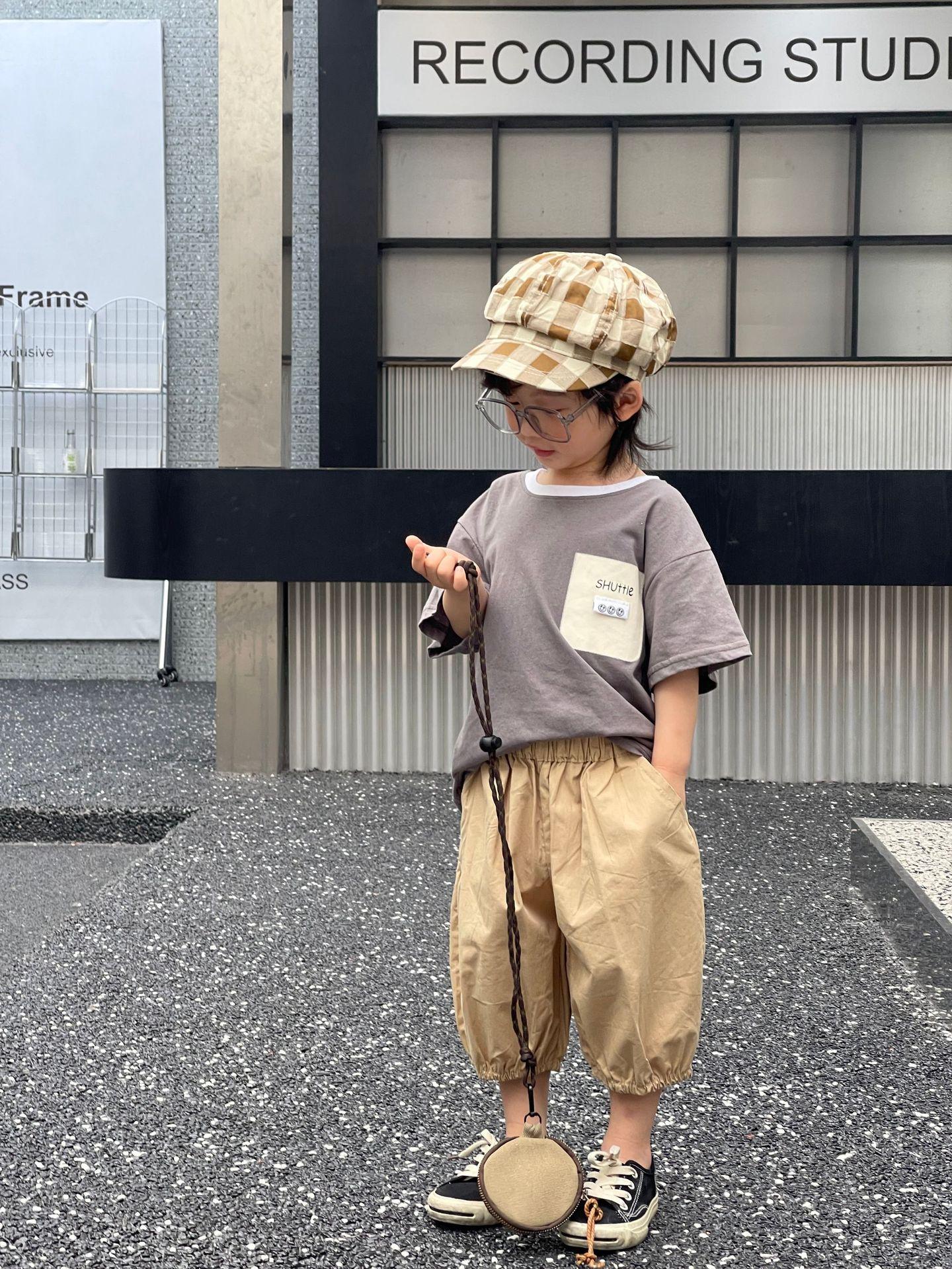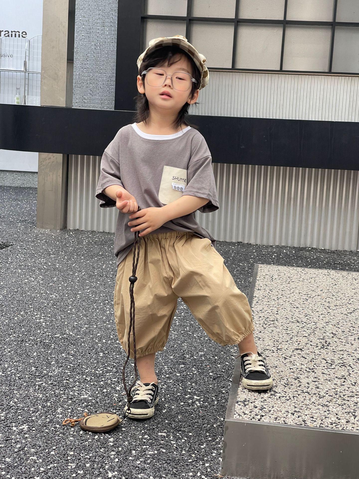 Camiseta de Verano para Niños Nuevo Estilo Coreano Niños y Niñas Algodón Pegatina Manga Corta Traje de Camiseta Ropa Infantil Occidental Holgada