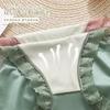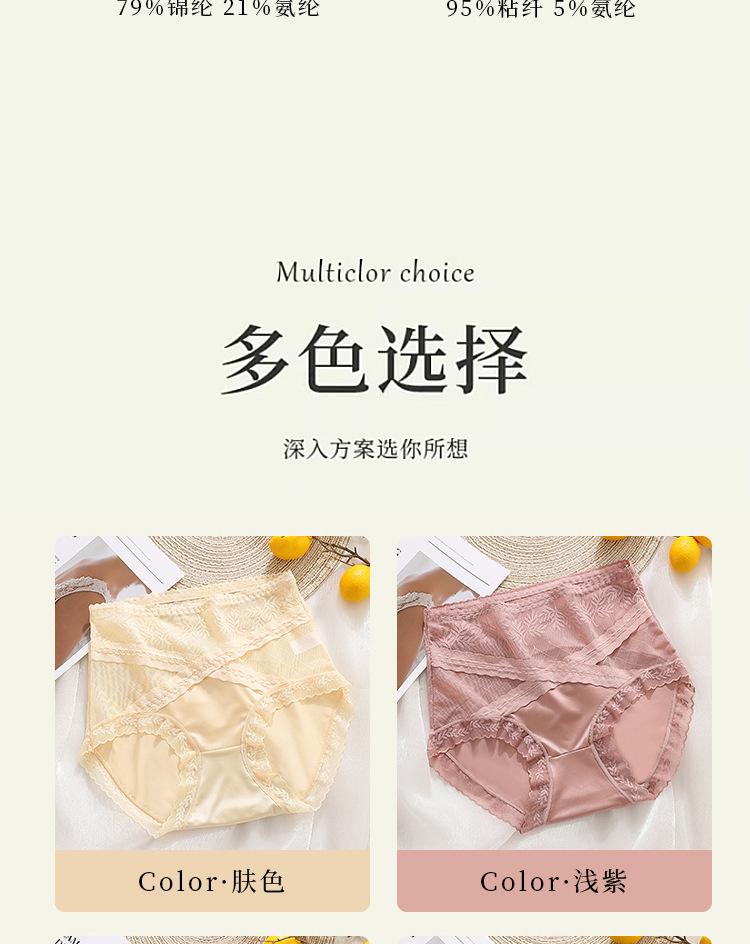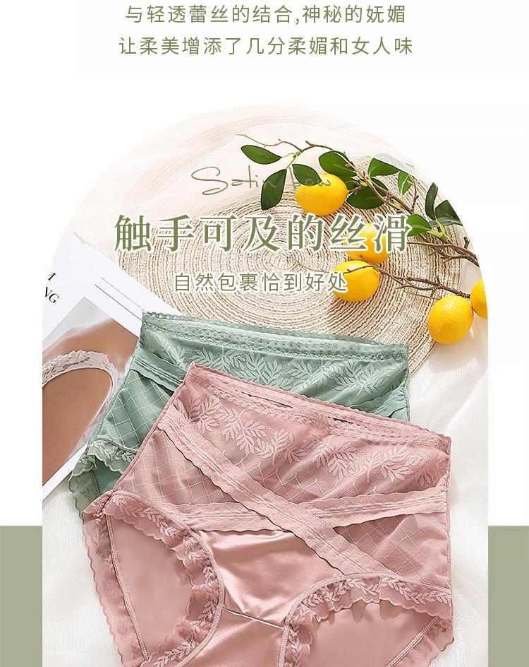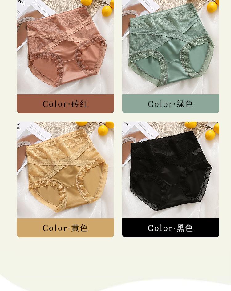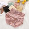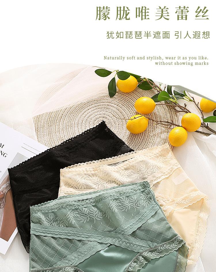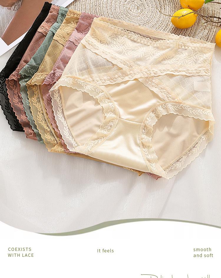 Braguitas triangulares de algodón transpirables con costuras de encaje y cintura alta para mujer, talla grande, que realzan la cadera, sin dejar marcas.