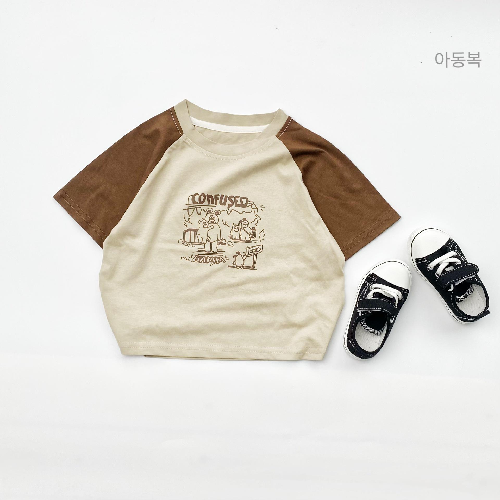 Ropa de Niños Verano Camiseta Estampada de Manga Corta 2024 Nueva Camiseta de Algodón Puro Estilo Occidental para Niños y Niñas Top de Manga Corta con Dibujos Animados