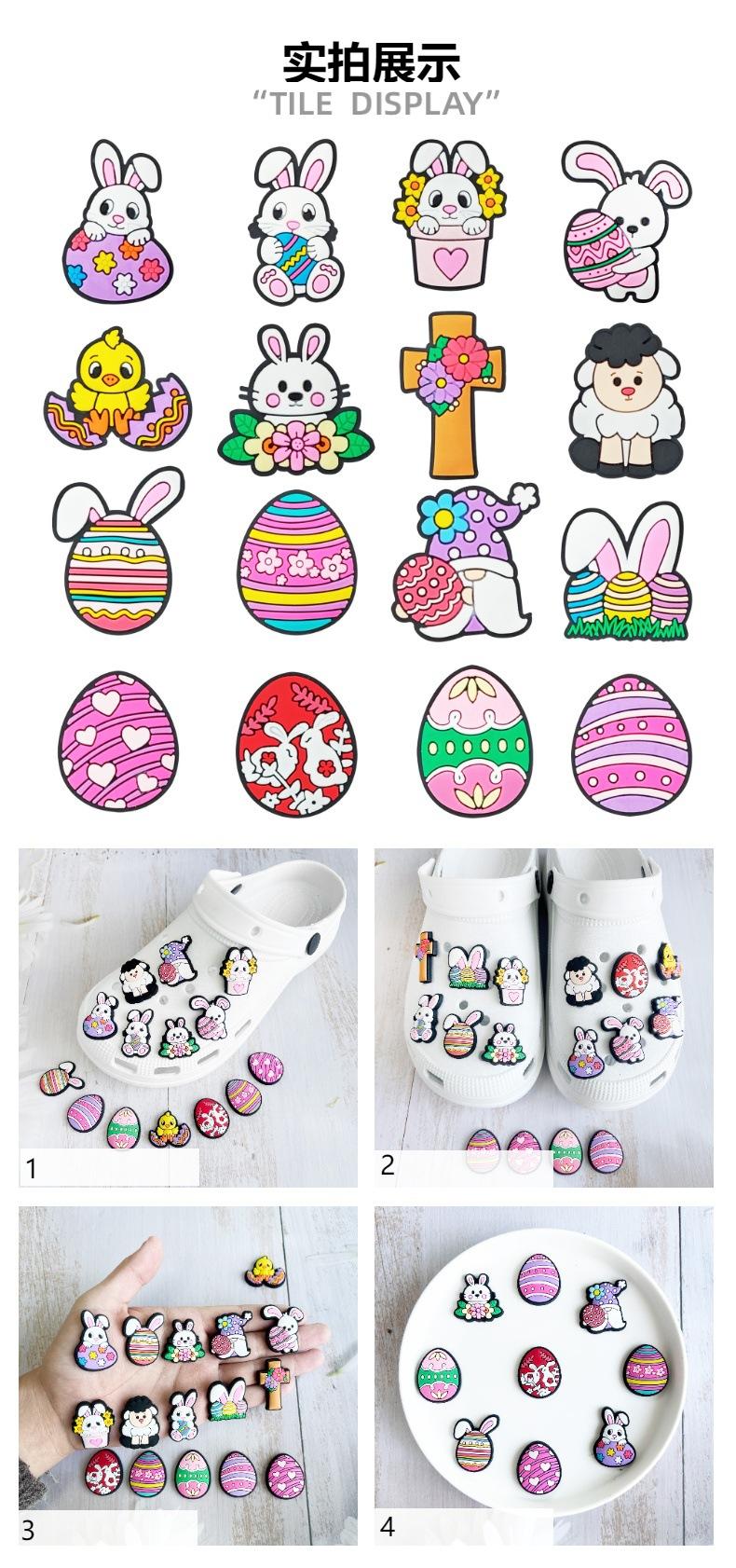 Zapatos de Pascua con agujeros de flores, accesorios de bricolaje, hebilla de zapato Jibbitz extraíble, zapatos con agujeros, zapatos con agujeros de flores, hebilla de zapato