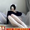 Medias de seda negras ultrafinas, elegantes, sin entrepierna, sexys, de encaje abierto, totalmente transparentes, elegantes, para mujer