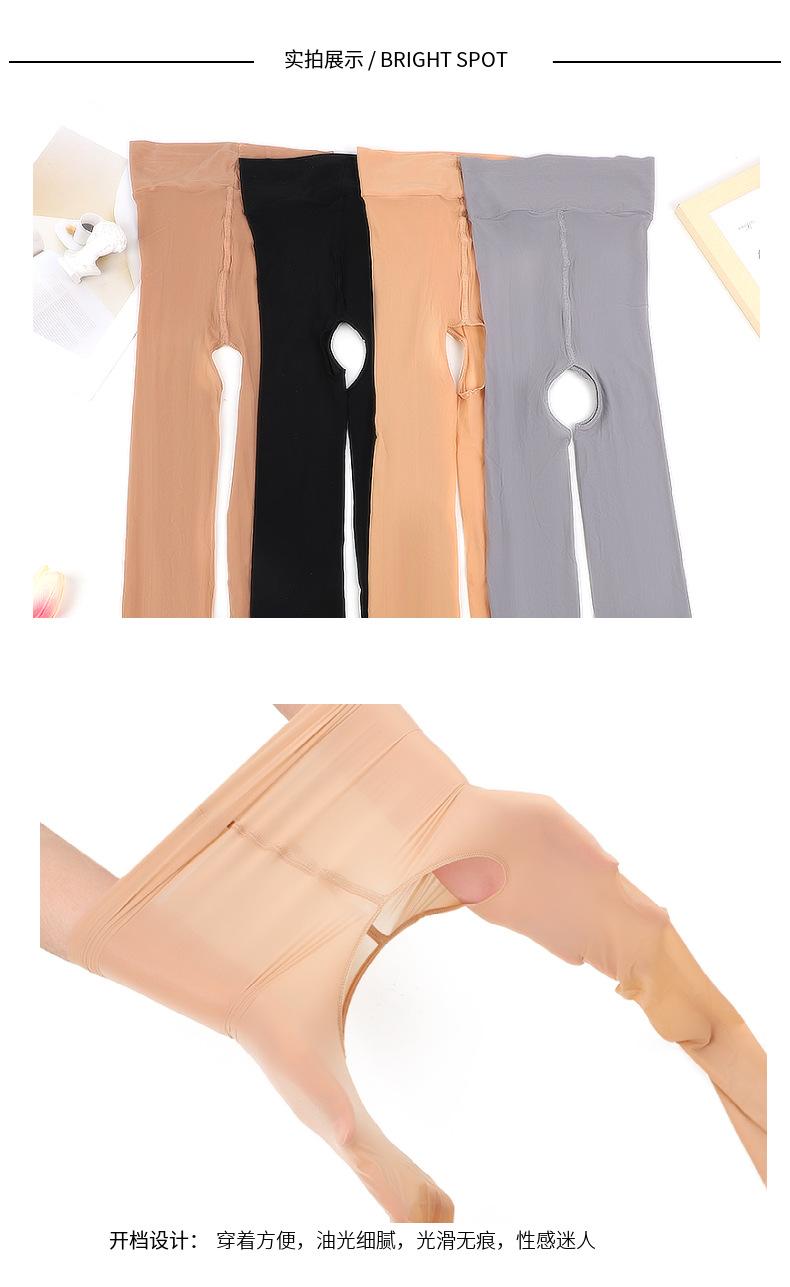 Calcetines sexys de aceite de caballo con entrepierna abierta, ajustados, sedosos, ultrafinos, de seda negra, sin tentación, para piernas.